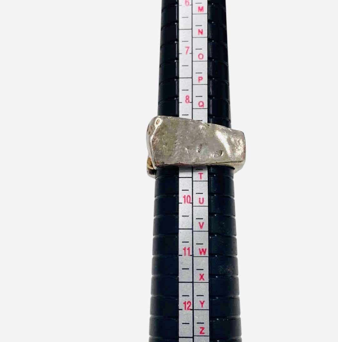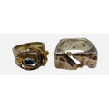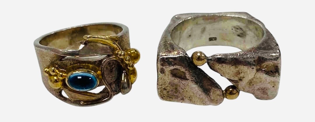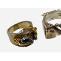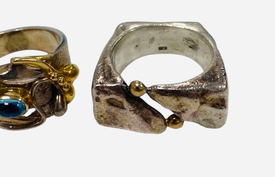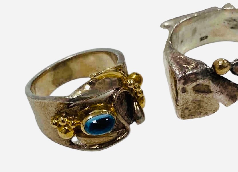 Two statement piece Silver Rings, one with gold trim and blue gemstone