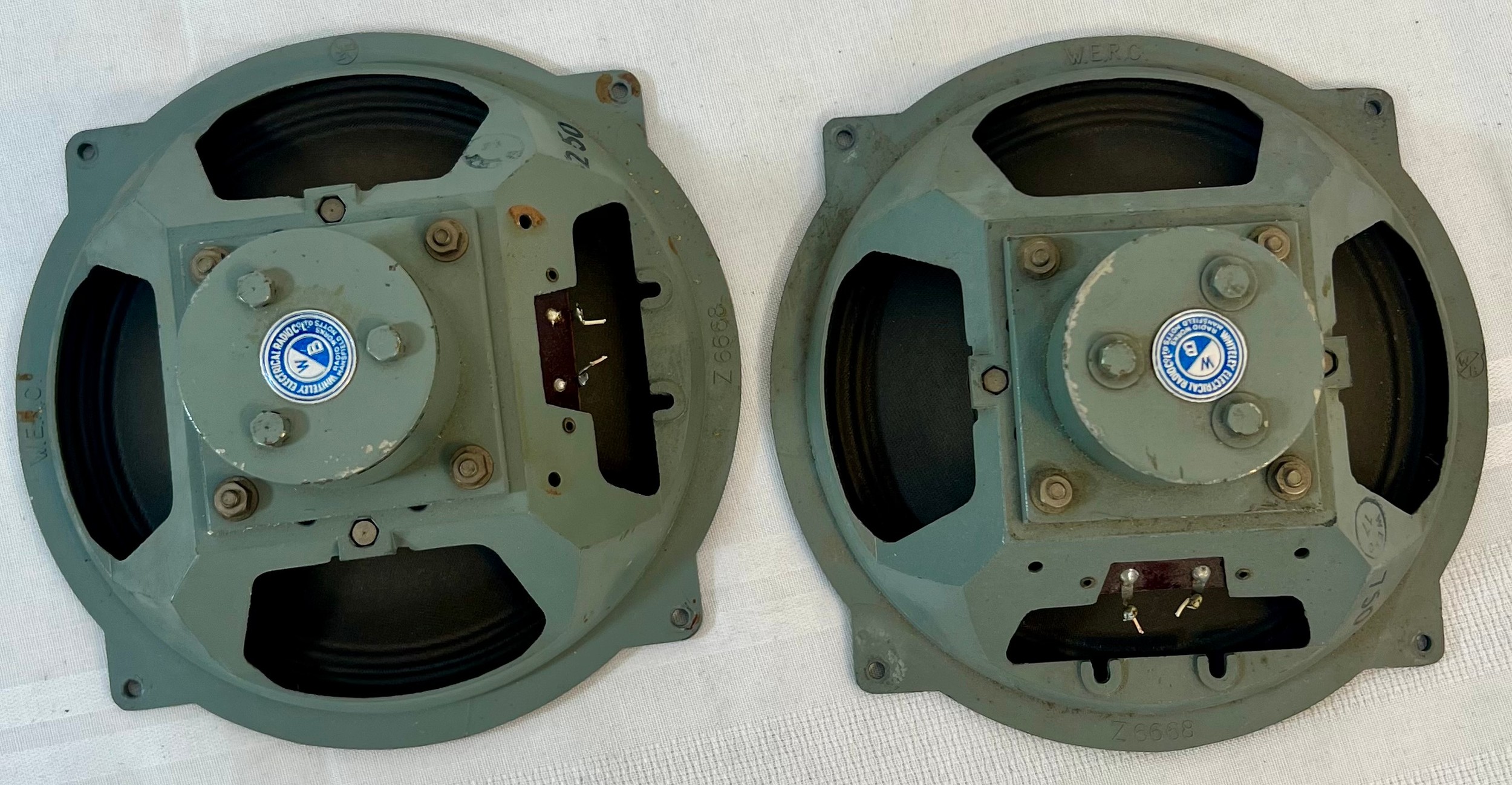 Pair of Vintage Whiteley Electrical Radio Company Speakers Z6668 For Restoration