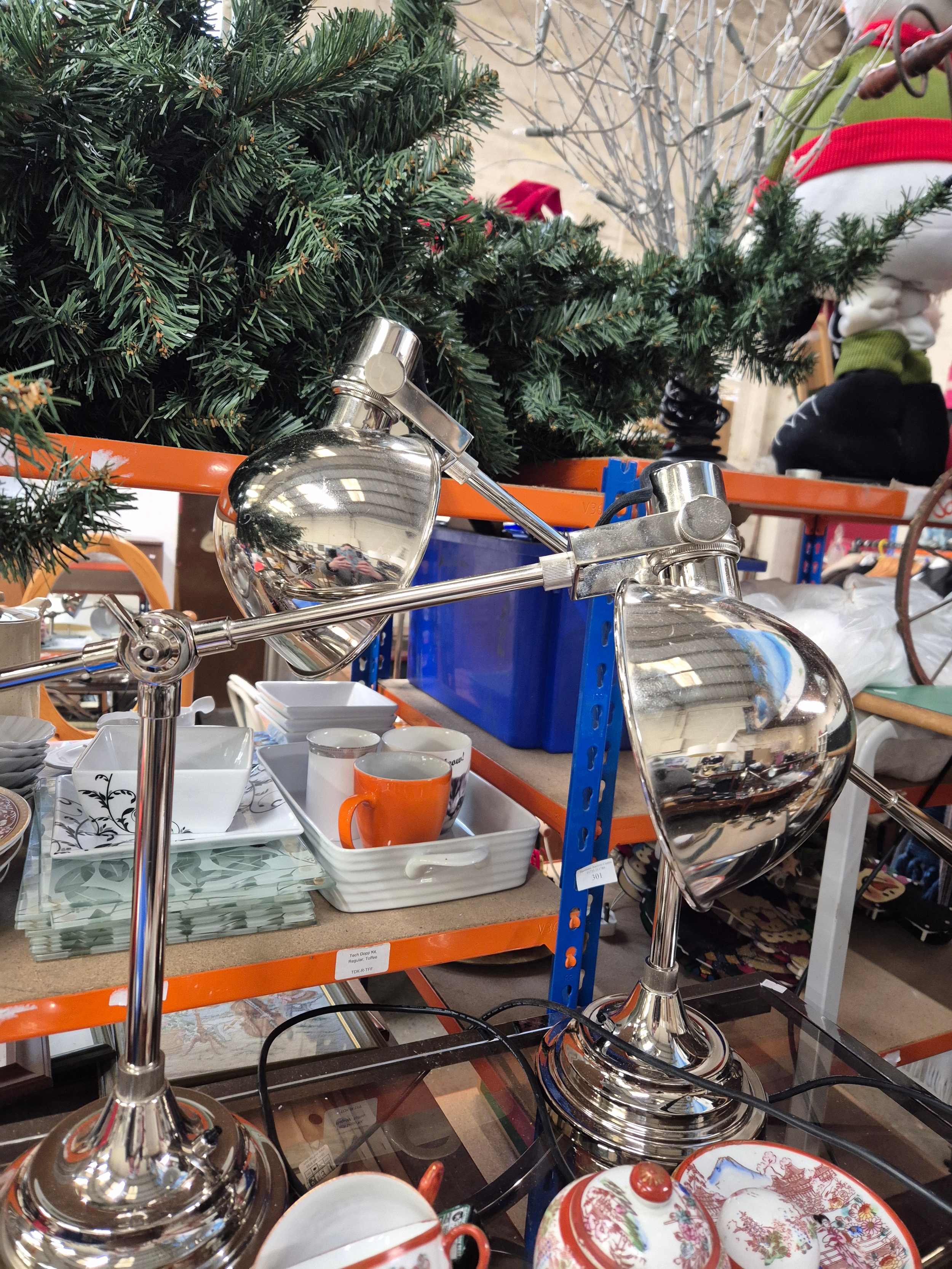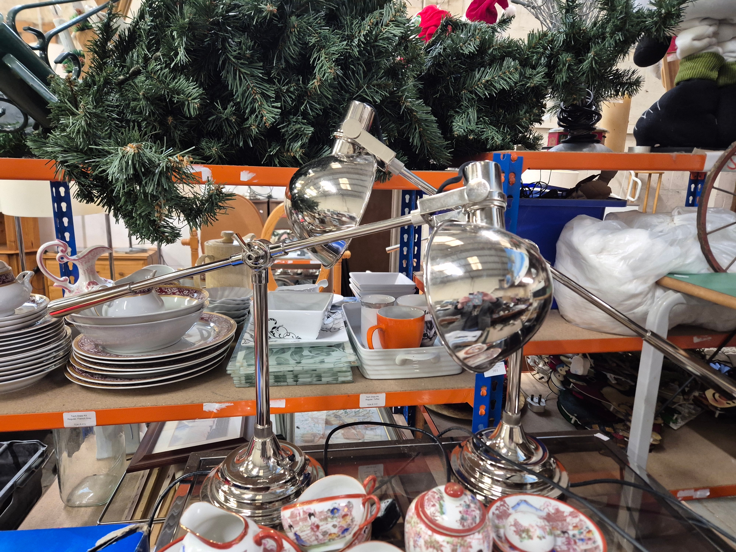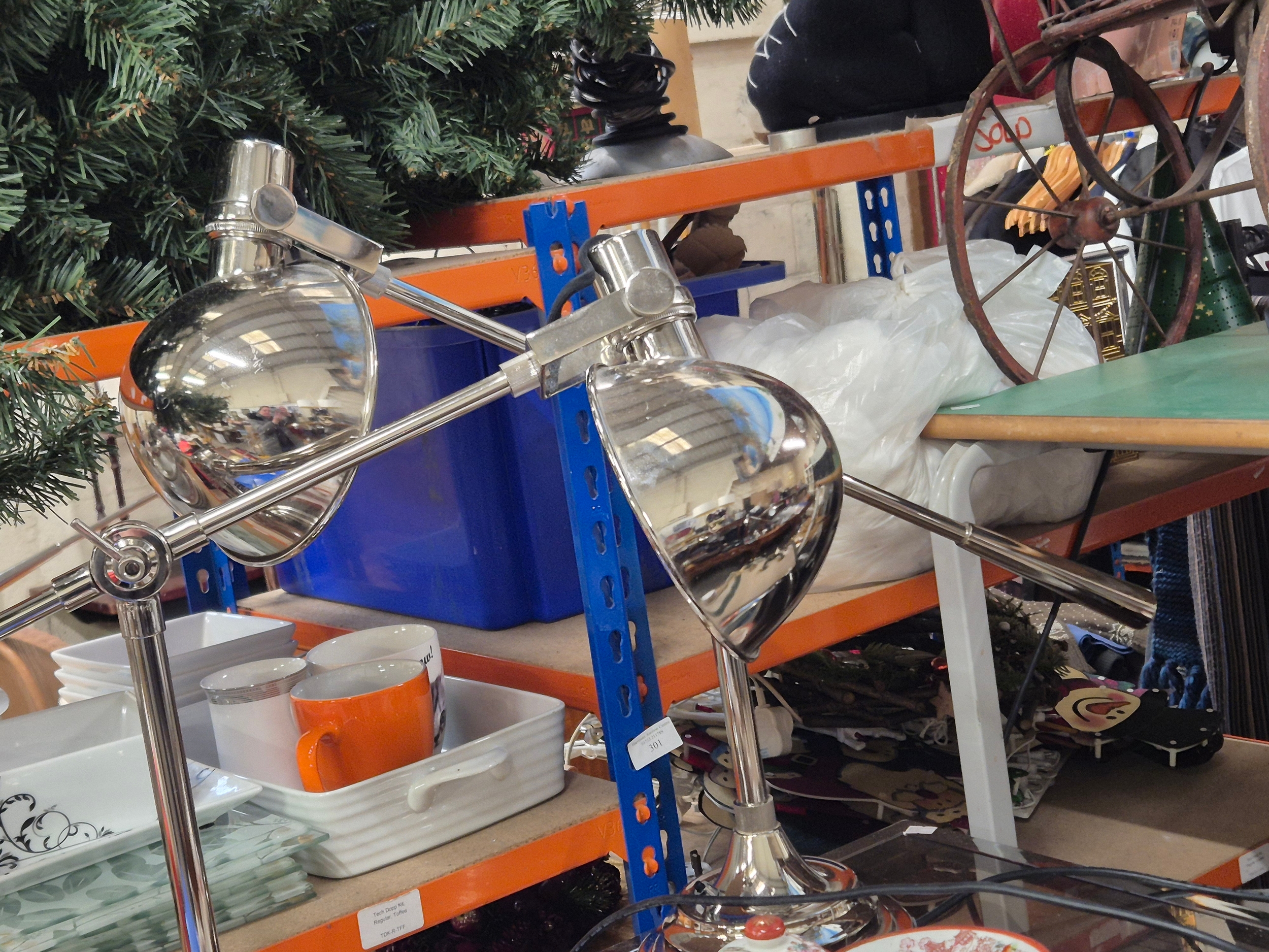 Pair of chrome angled desk lamps