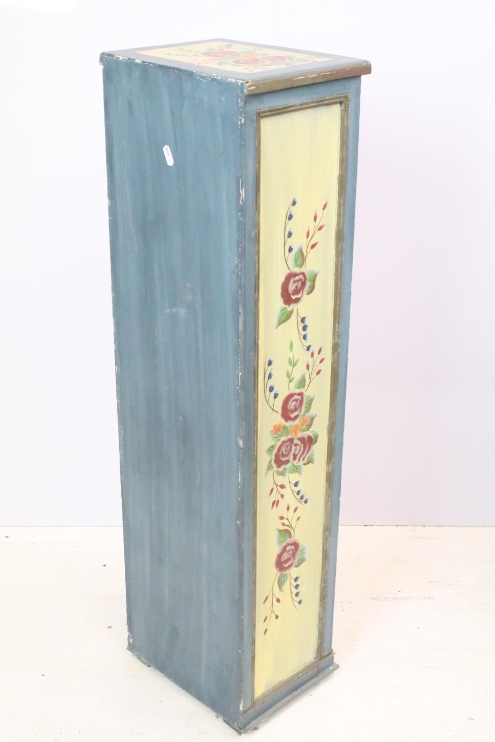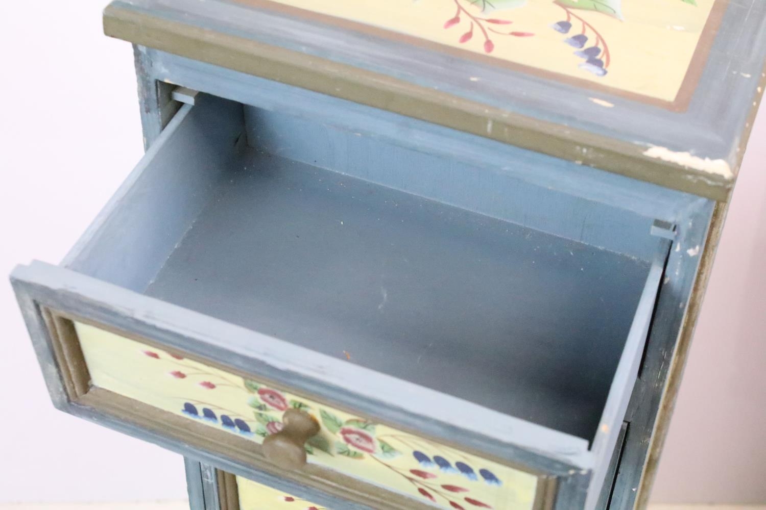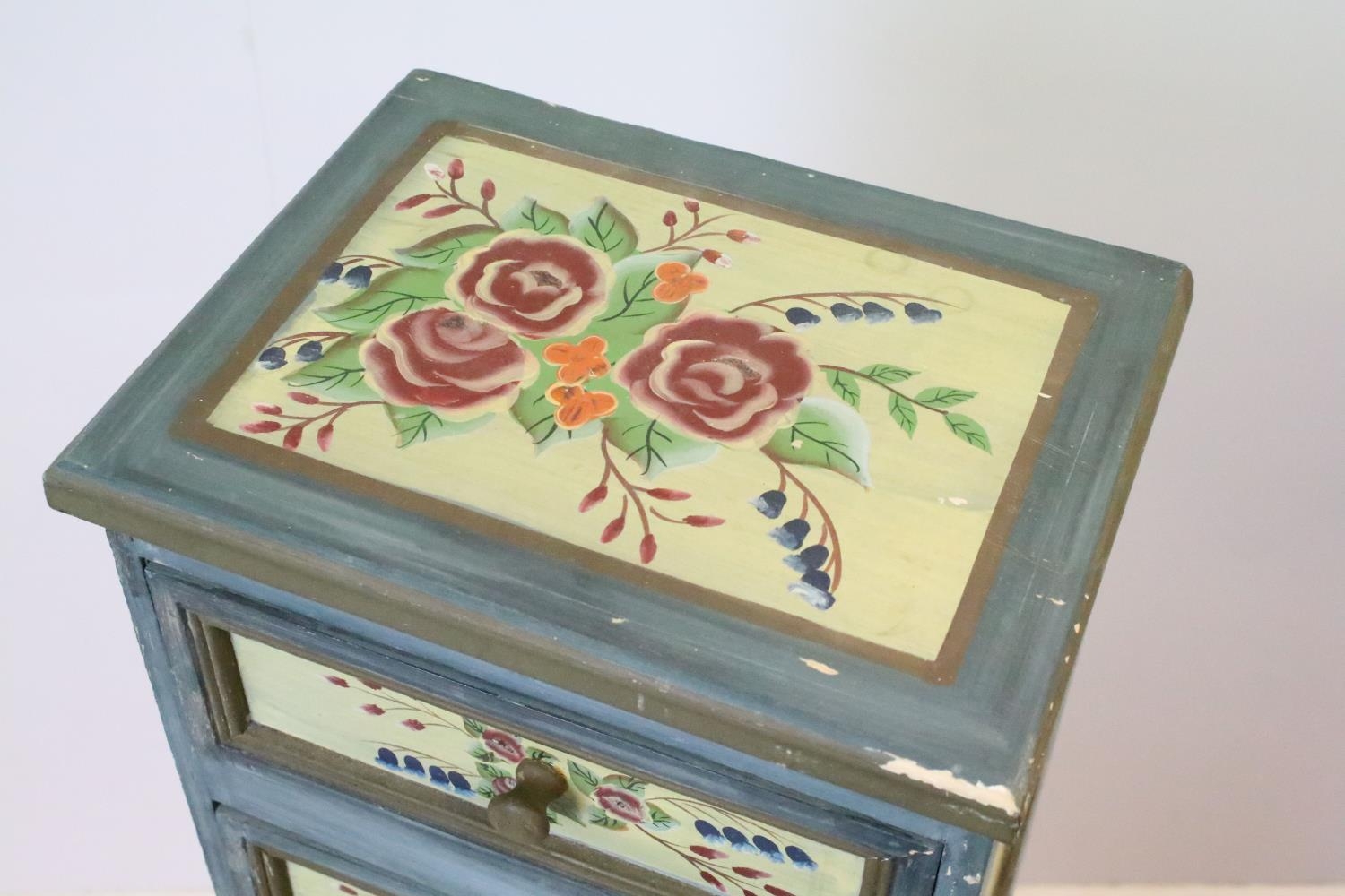 Chest of seven drawers, painted with floral sprays, 96cm high x 27.5cm wide x 21cm deep