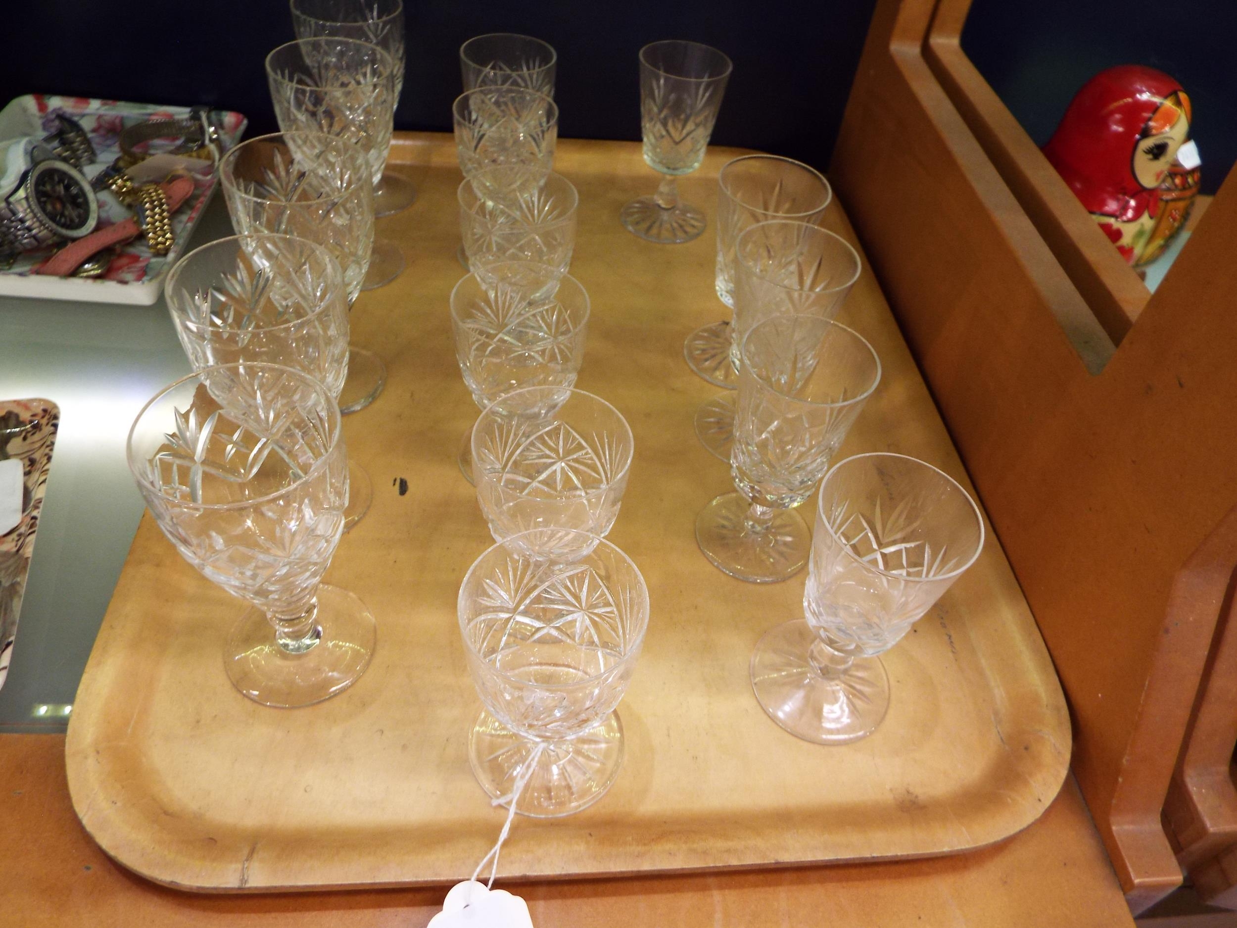 A set of six crystal glasses and two sets of five crystal glasses