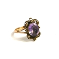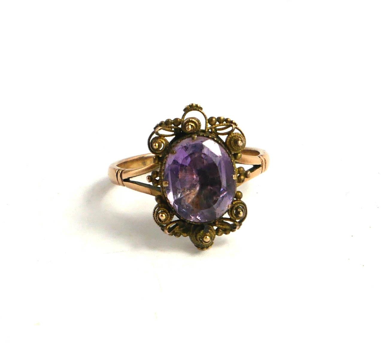 AN EARLY 20TH CENTURY YELLOW METAL AND AMETHYST RING