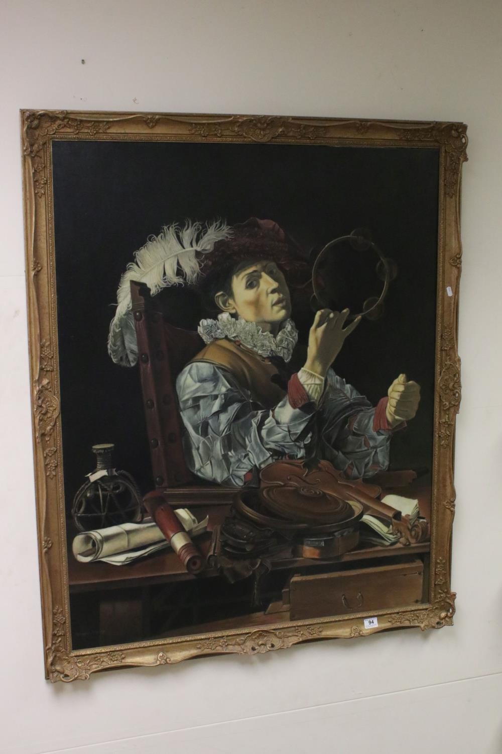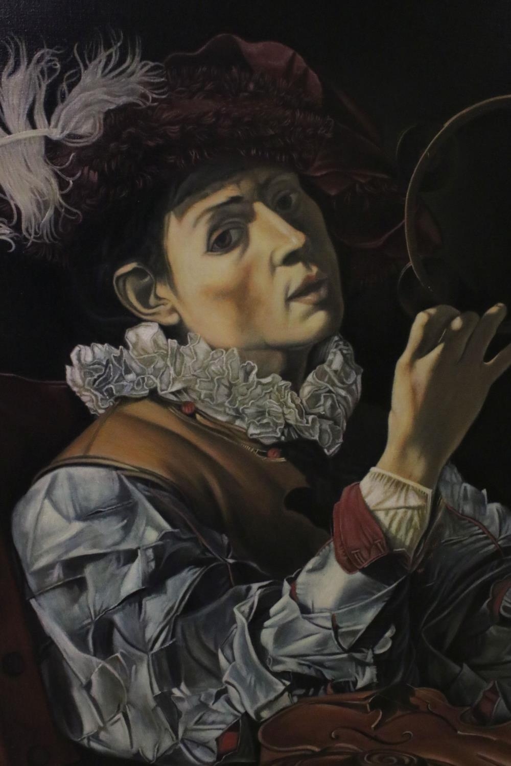 Barrington Bramley (b.1950), After Caravaggio, Large Oil Painting on Canvas of The Musician conjure, 97cms x 121cms, gilt framed