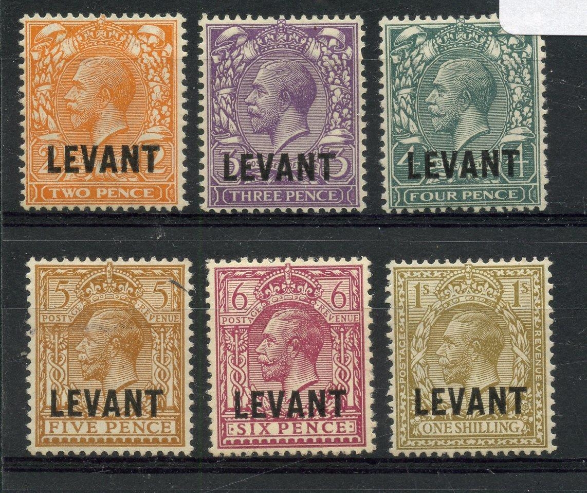 BRITISH LEVANT 1921 2d to 1/- opt Levant mint. SG L18 - 23. Cat £72.
