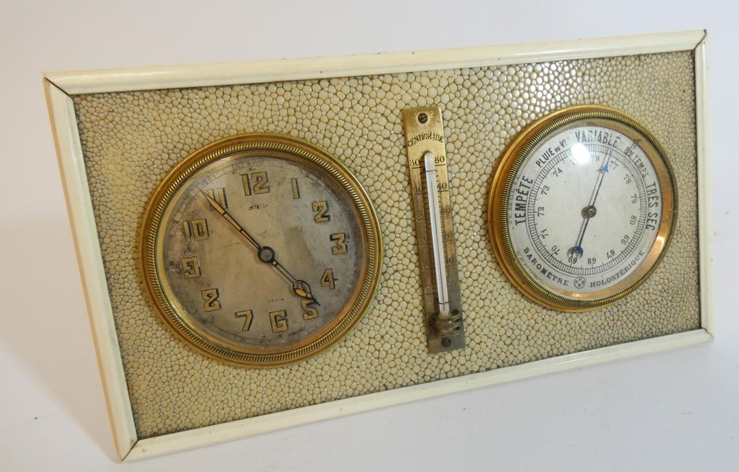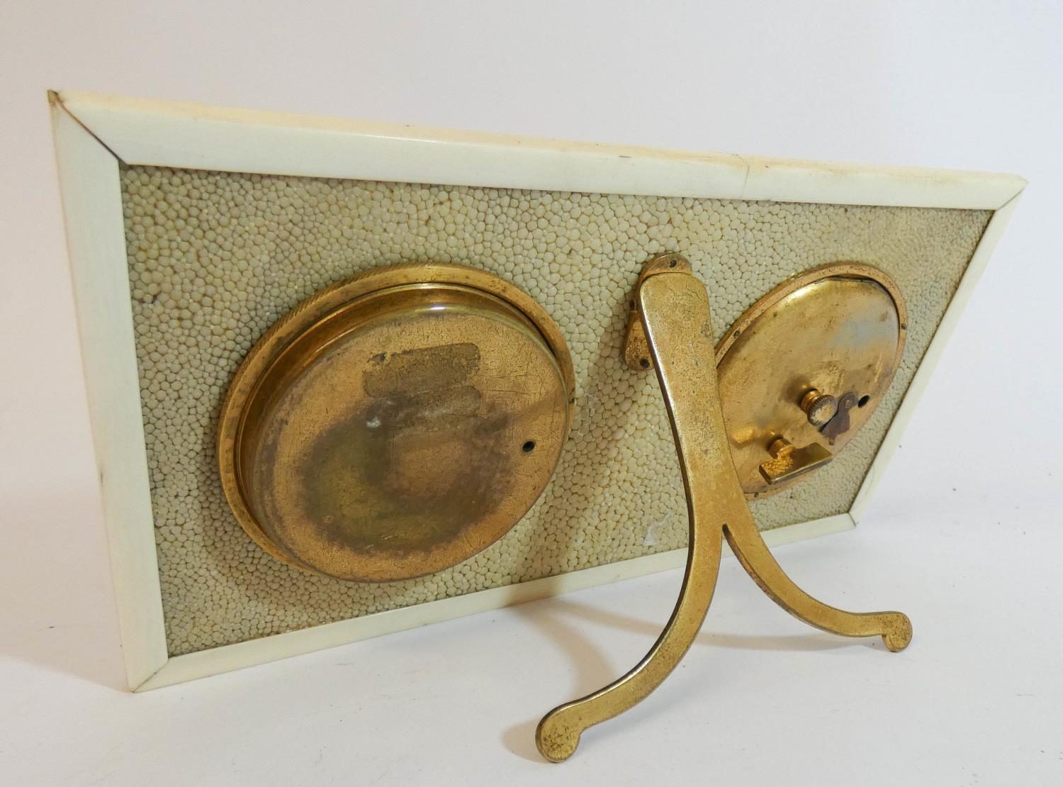 A 1920's shagreen and brass mounted Art Deco desk clock, thermometer and Anemometer, 19cm across