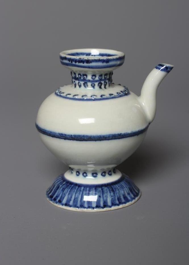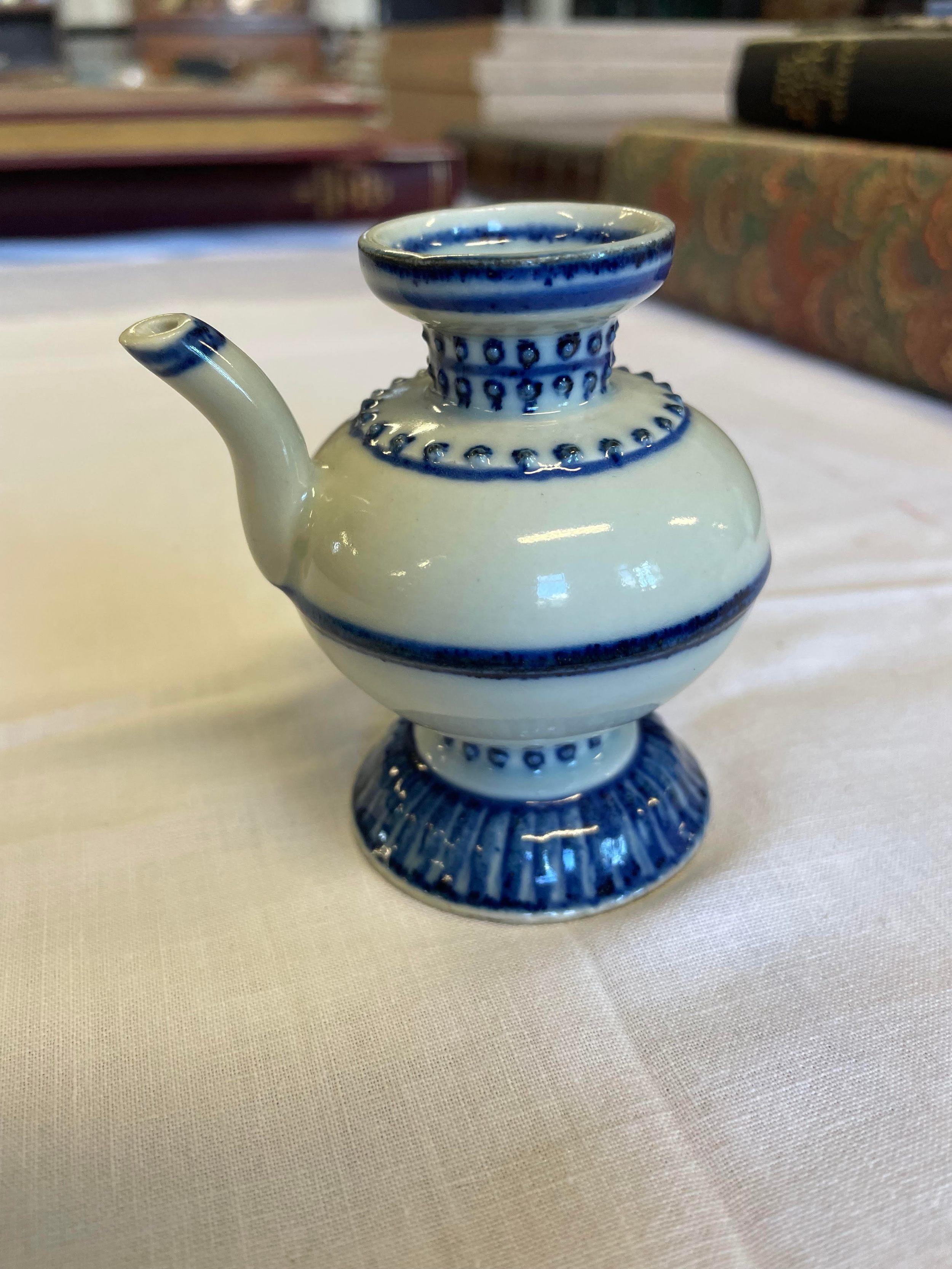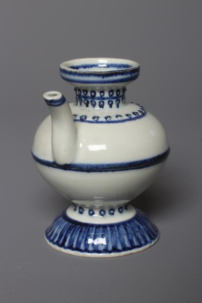 A CHINESE PORCELAIN WATER DROPPER of rounded double conical form, the shoulders moulded with dots highlighted in underglaze blue, unmarked, 3" high (Est. plus 24% premium inc. VAT)