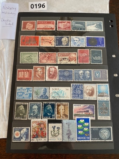 NORWAY used stamp selection on 2 sides of Hanger page. Norge stamps assortment
