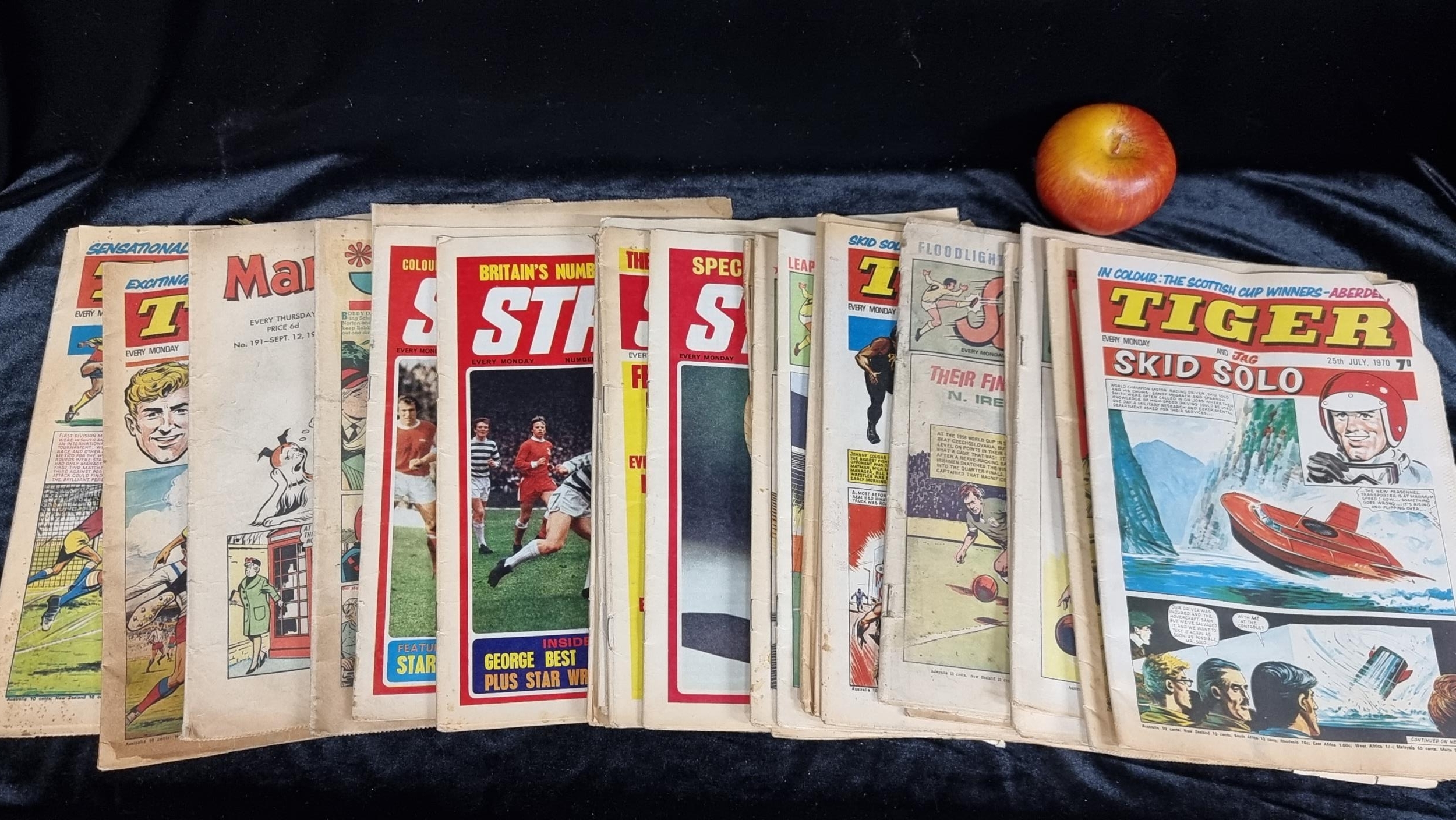 A good selection of 1970s vintage comic books including Bunty, Striker, Judy, Mandy, Tiger, Scorcher. With a copy of ''Warlord''