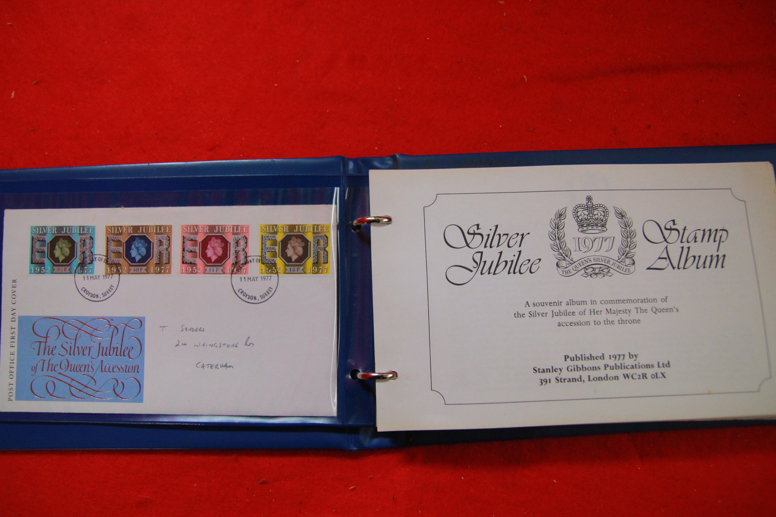 A selection of stamp albums including a 1977 Silver Jubilee Album and various others including one album of Channel Island Stamps, all in good order
