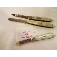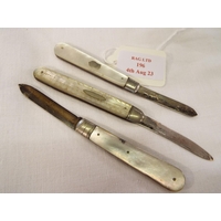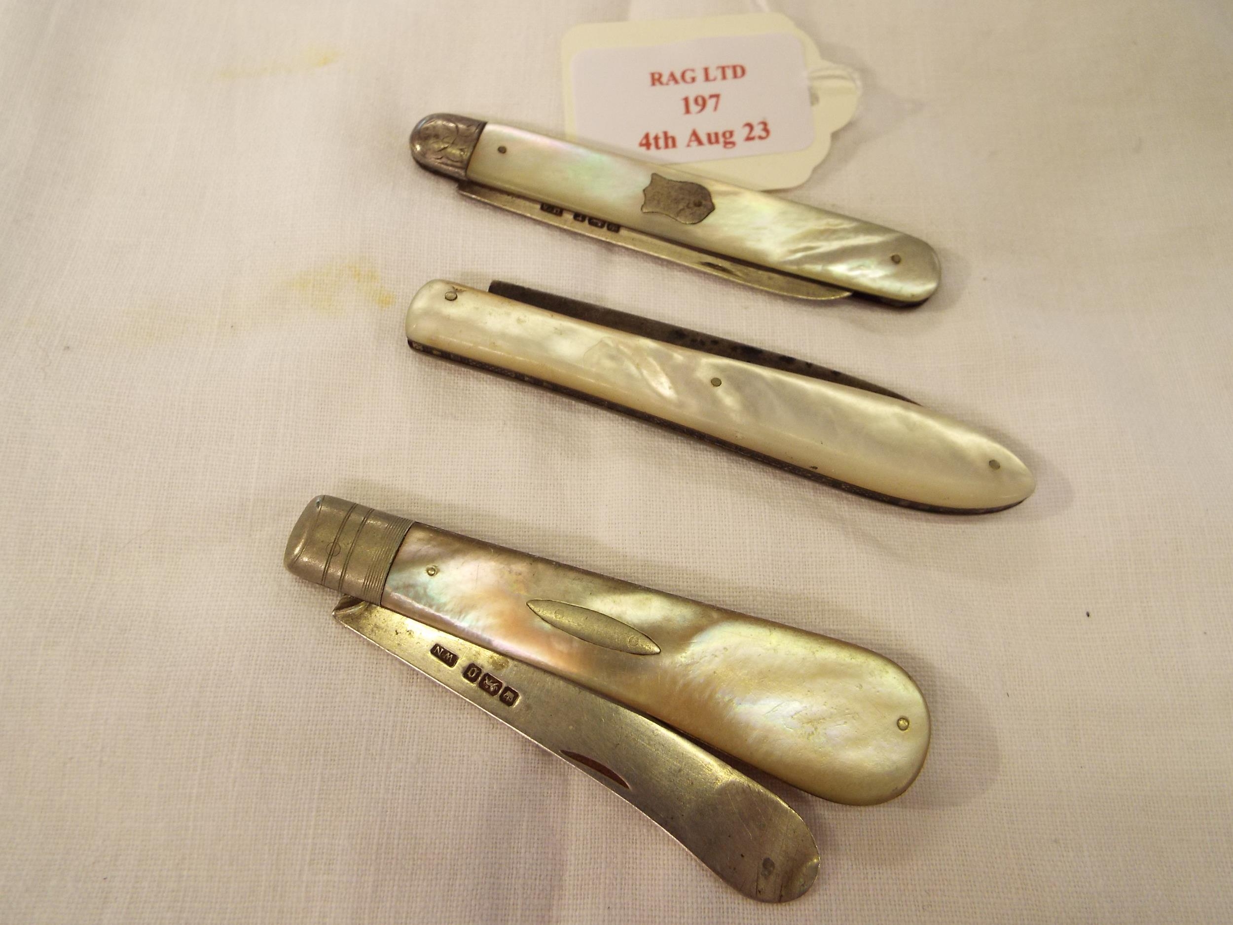 Three Sheffield silver and mother of pearl fruit knives