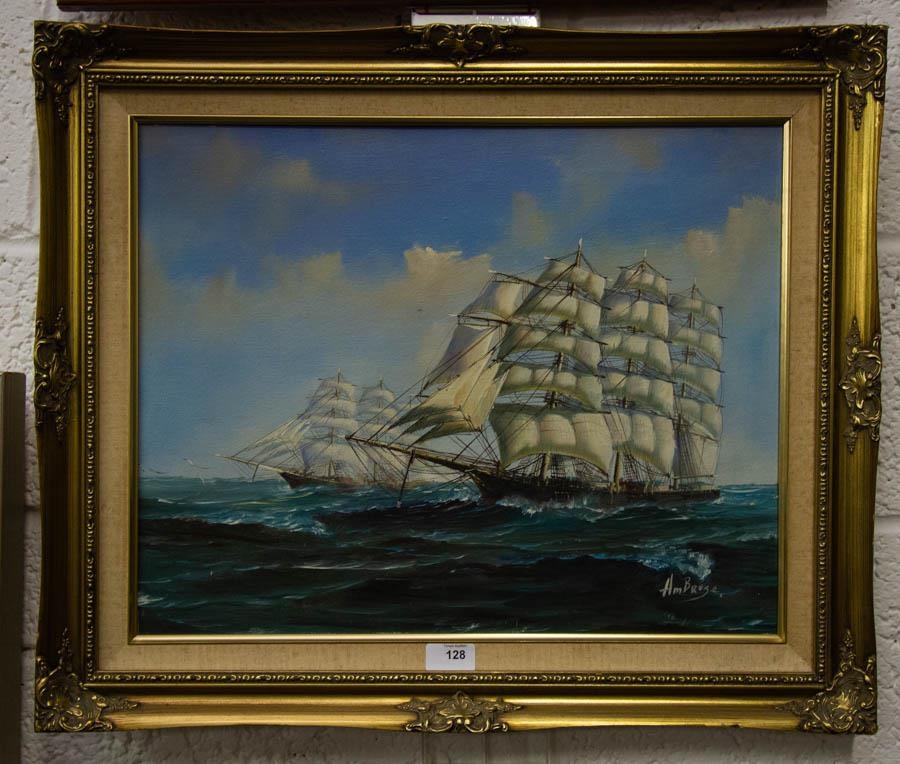 TALL SHIP IN ORNATE FRAME