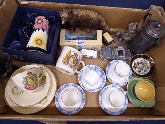 Chelsea Cromer coffee cans, Corgi Morris Minor, Tupton ware jug, pewter etc