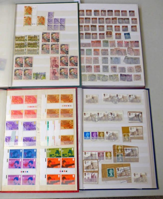 4 STOCKBOOKS OF MINT & USED GB STAMPS TO INCLUDE PENNY REDS, TUPPENNY BLUE, CHANNEL ISLANDS, HIGH VALUES, COMMENS ETC