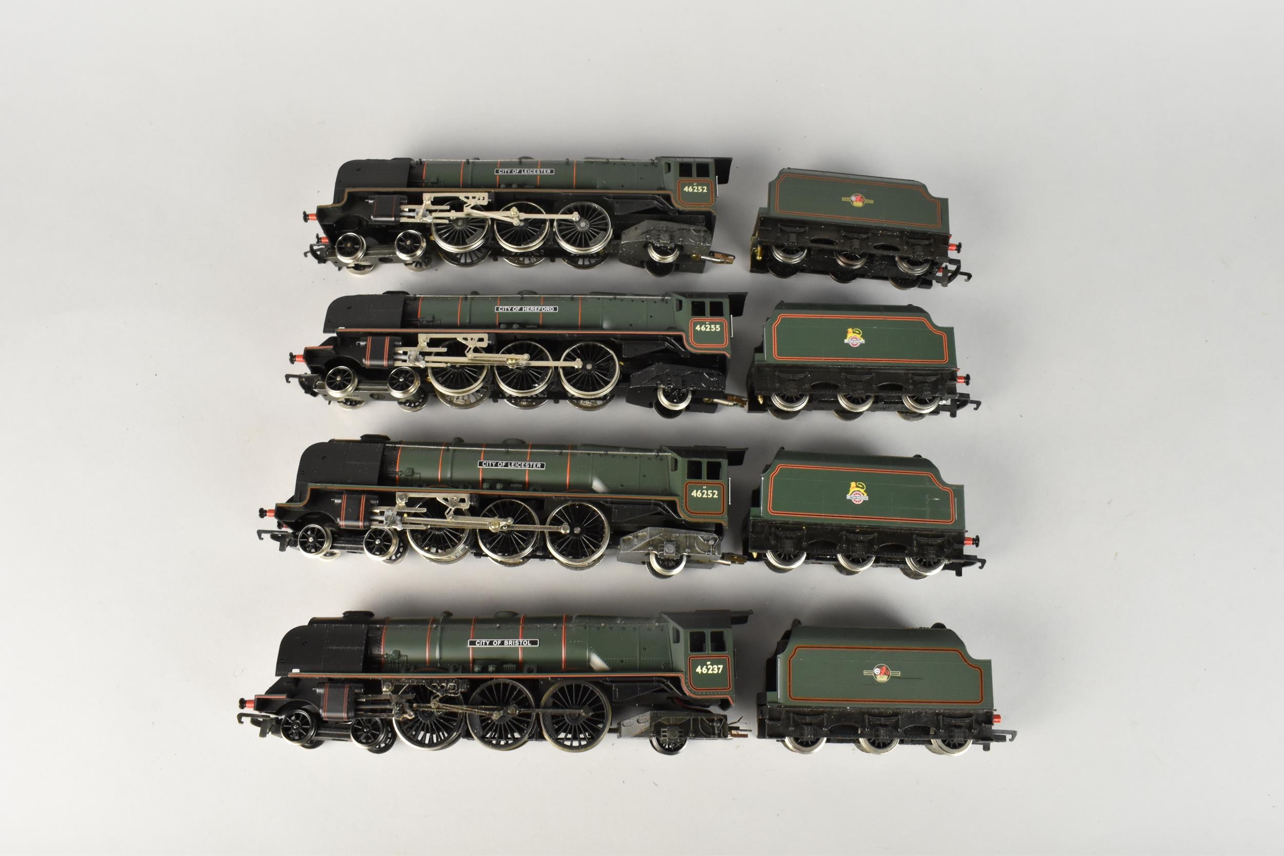 Hornby OO Gauge, A Collection of Four Unboxed Locomotives and Tenders, 'City of Bristol', 'City of Leicester' x2, 'City of Hereford'