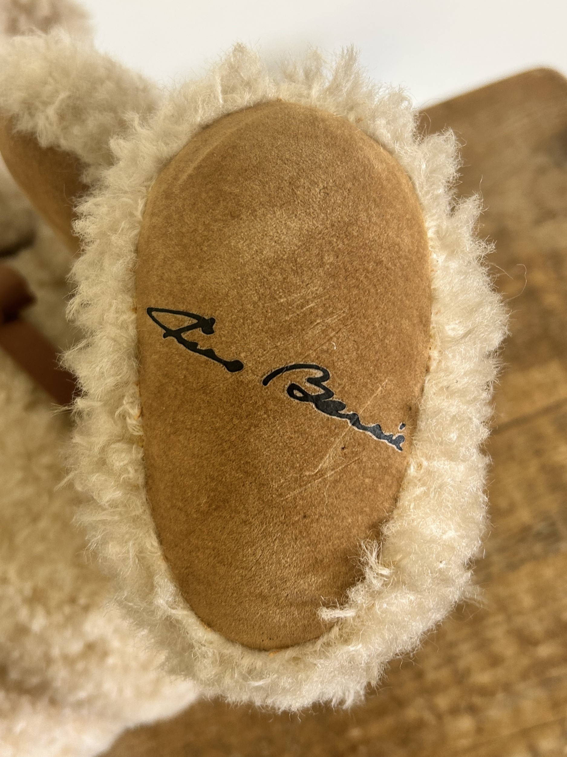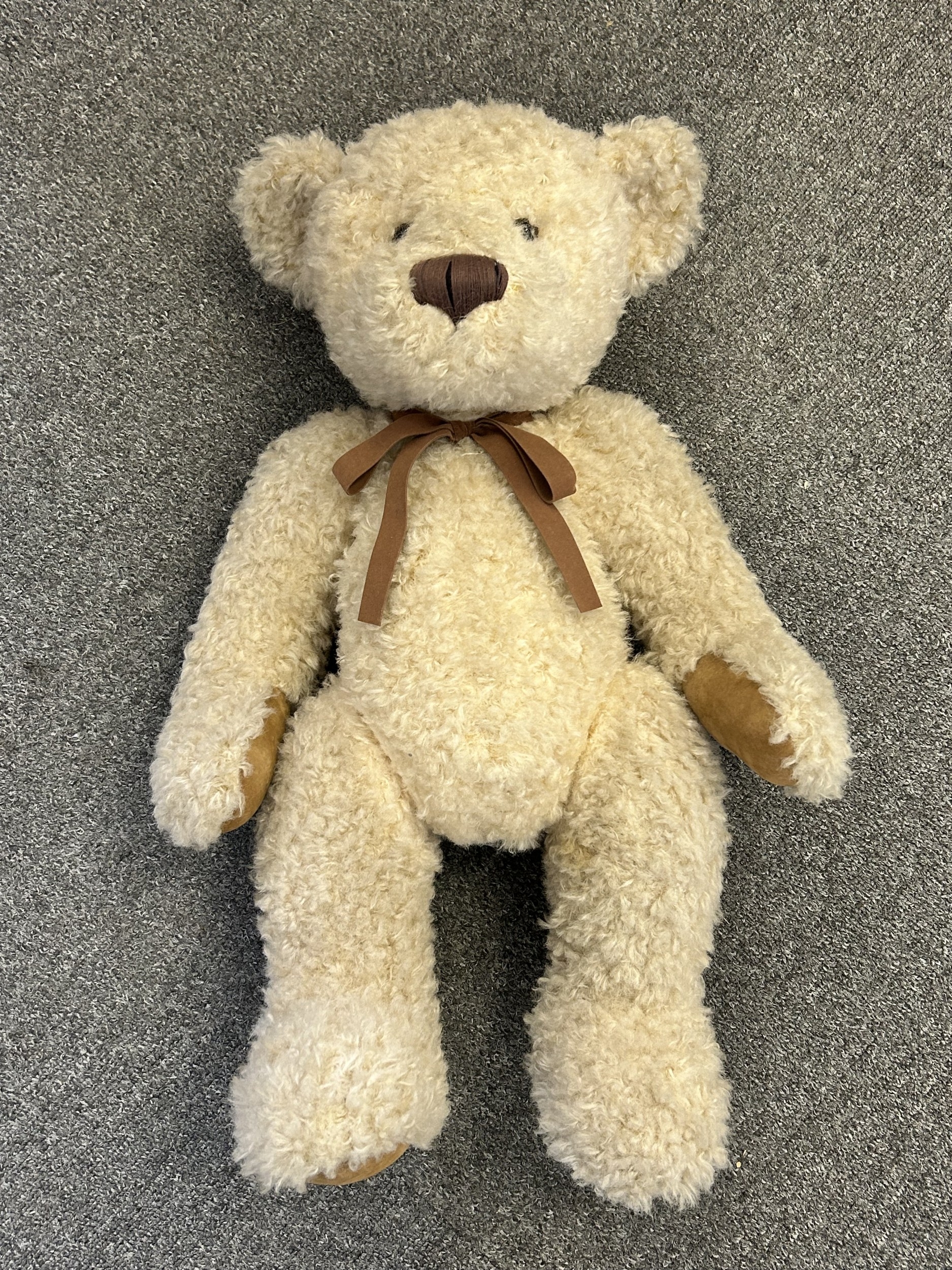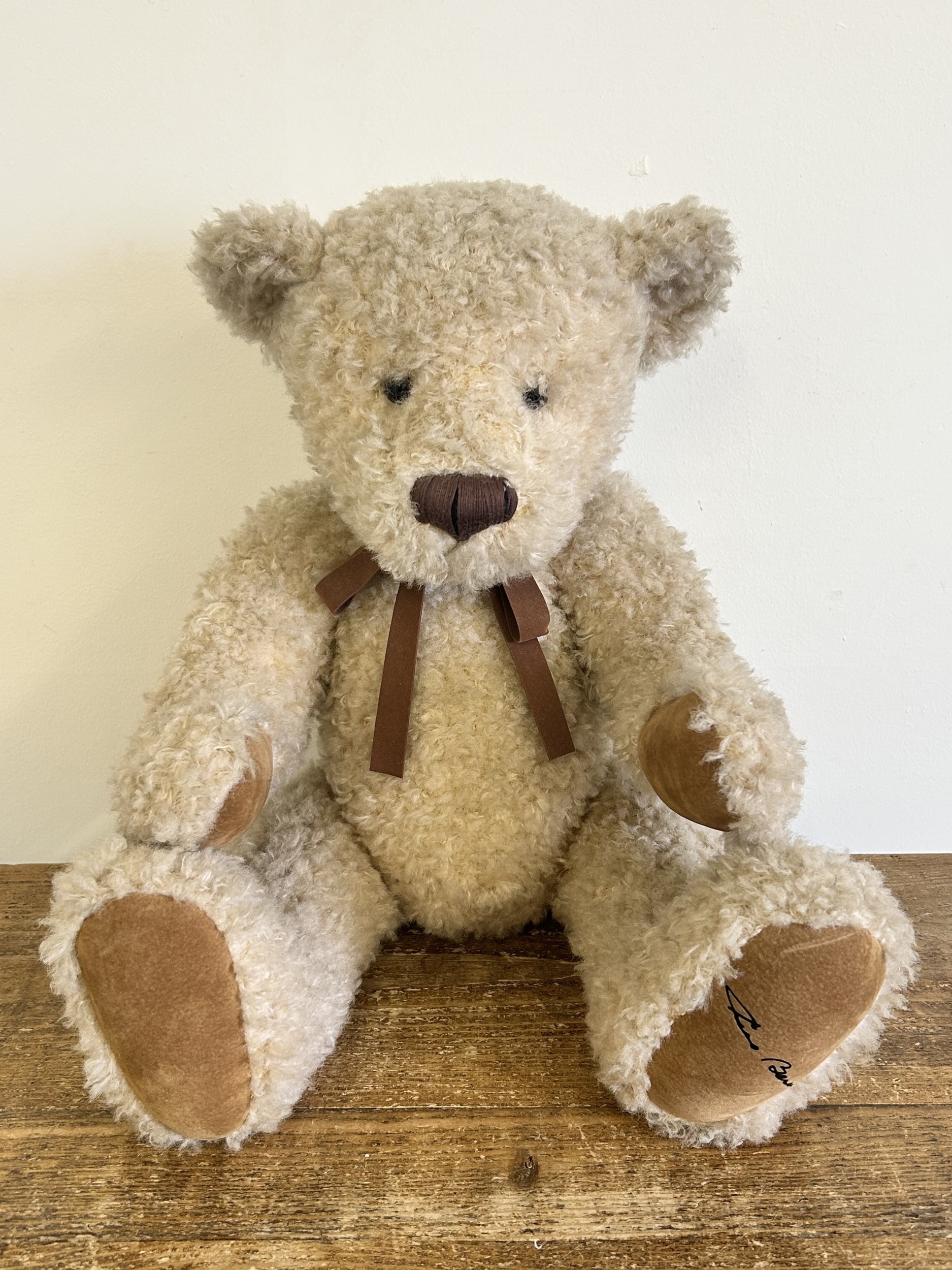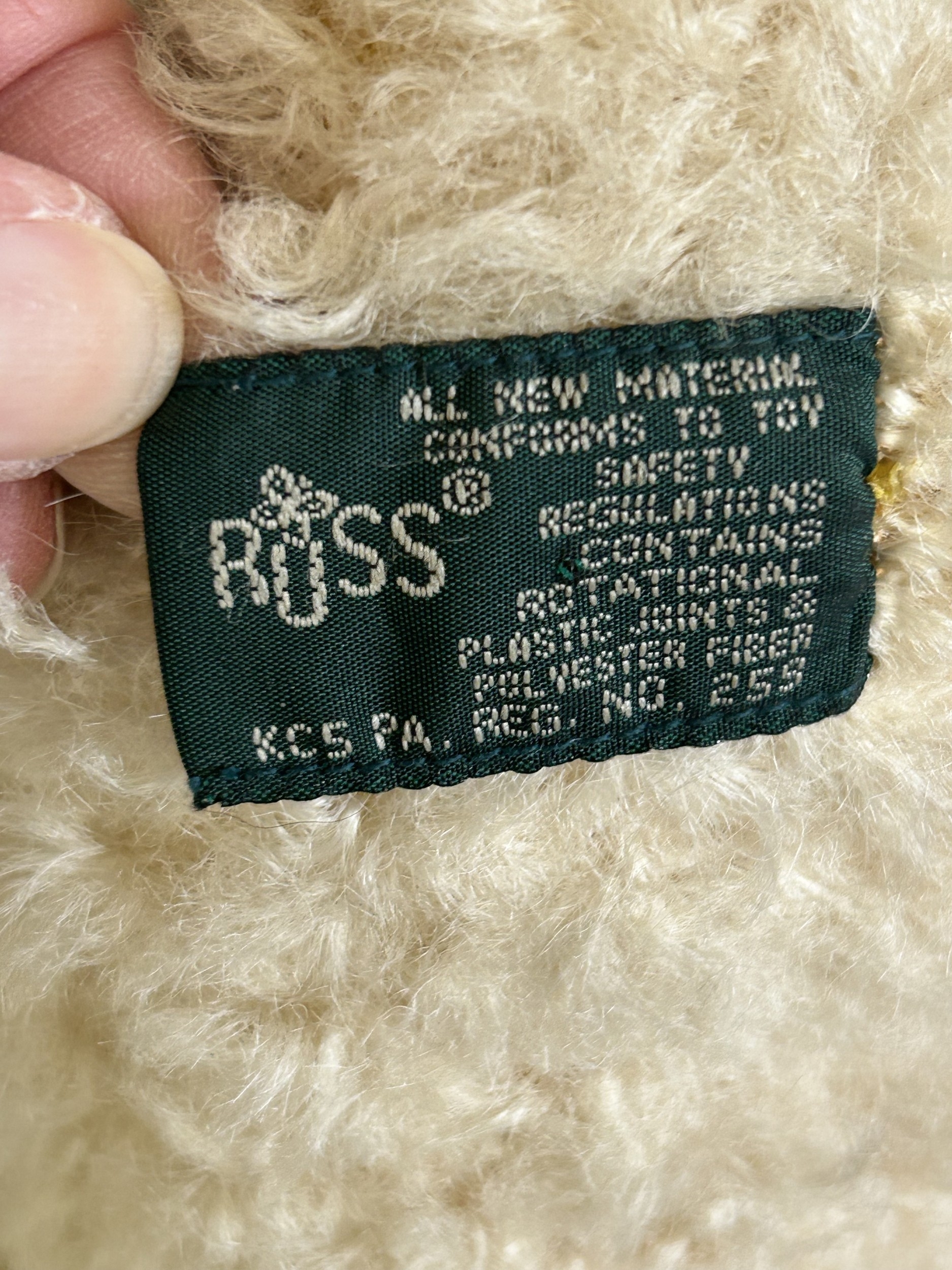 A vintage 'Farrington' Russ Berrie & Co teddy bear with jointed limbs and trademark signature to left foot, approx. 21" long