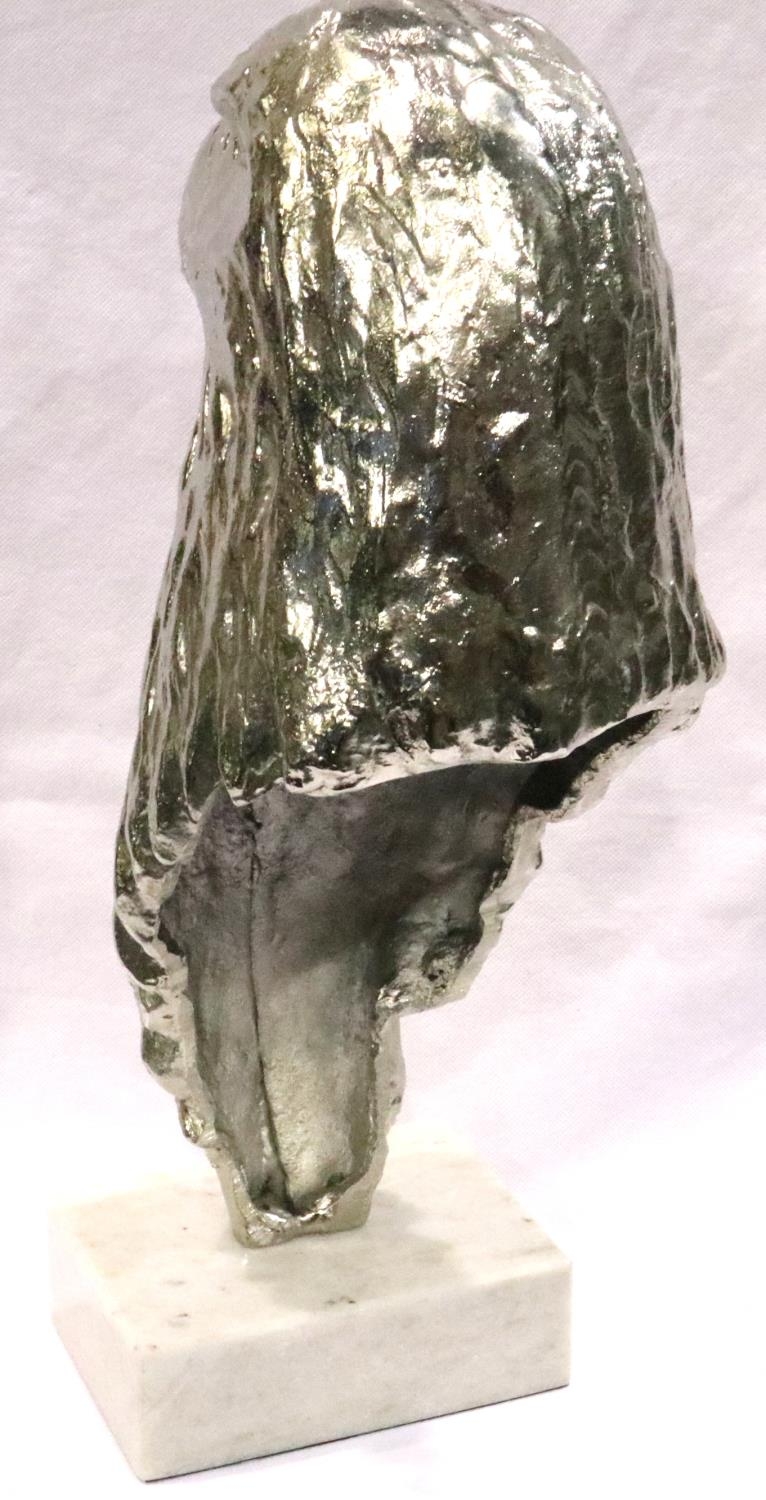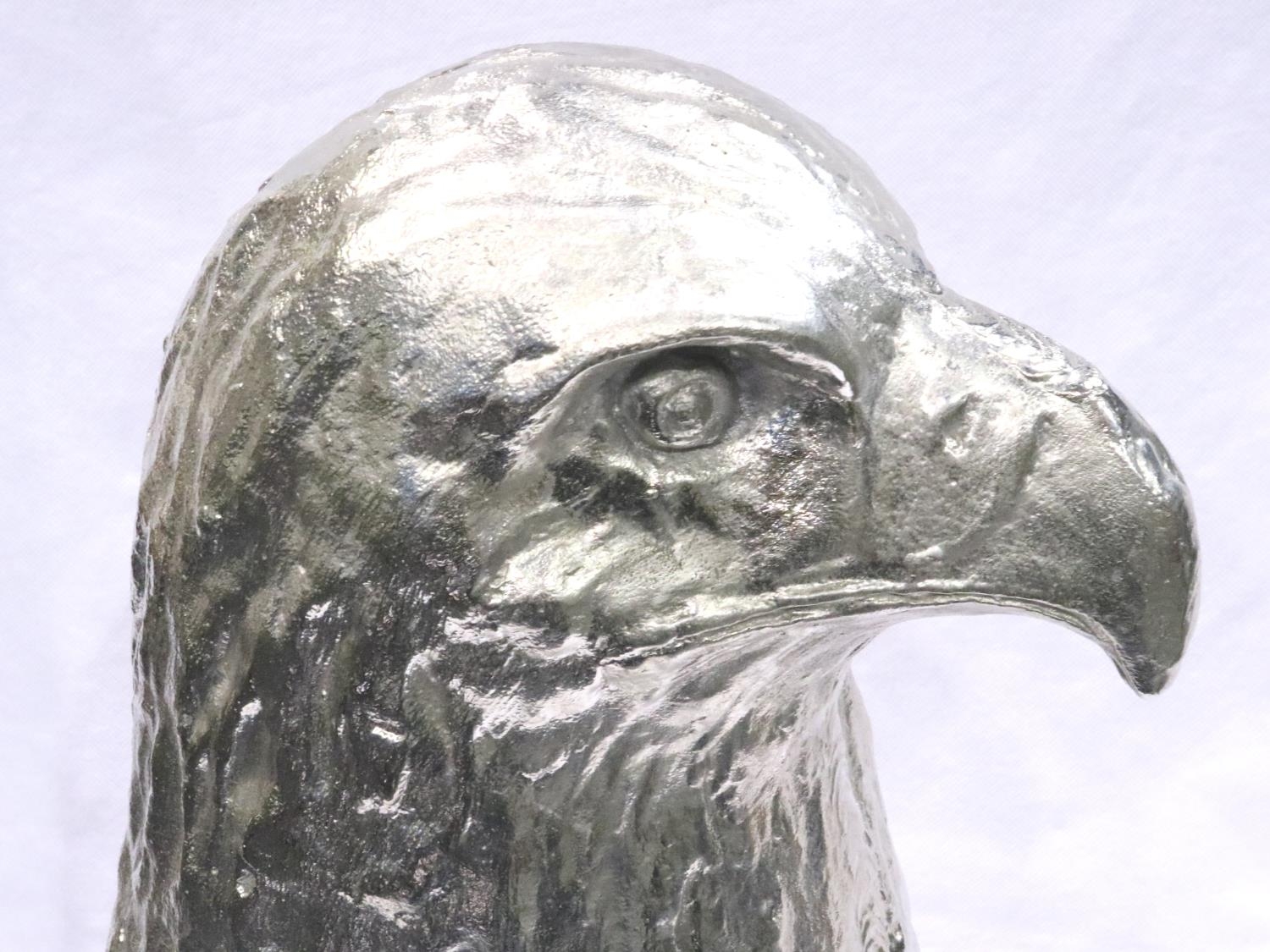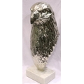 Chromed eagle head on marble base, H: 46 cm. P&P Group 3 (£25+VAT for the first lot and £5+VAT for subsequent lots)