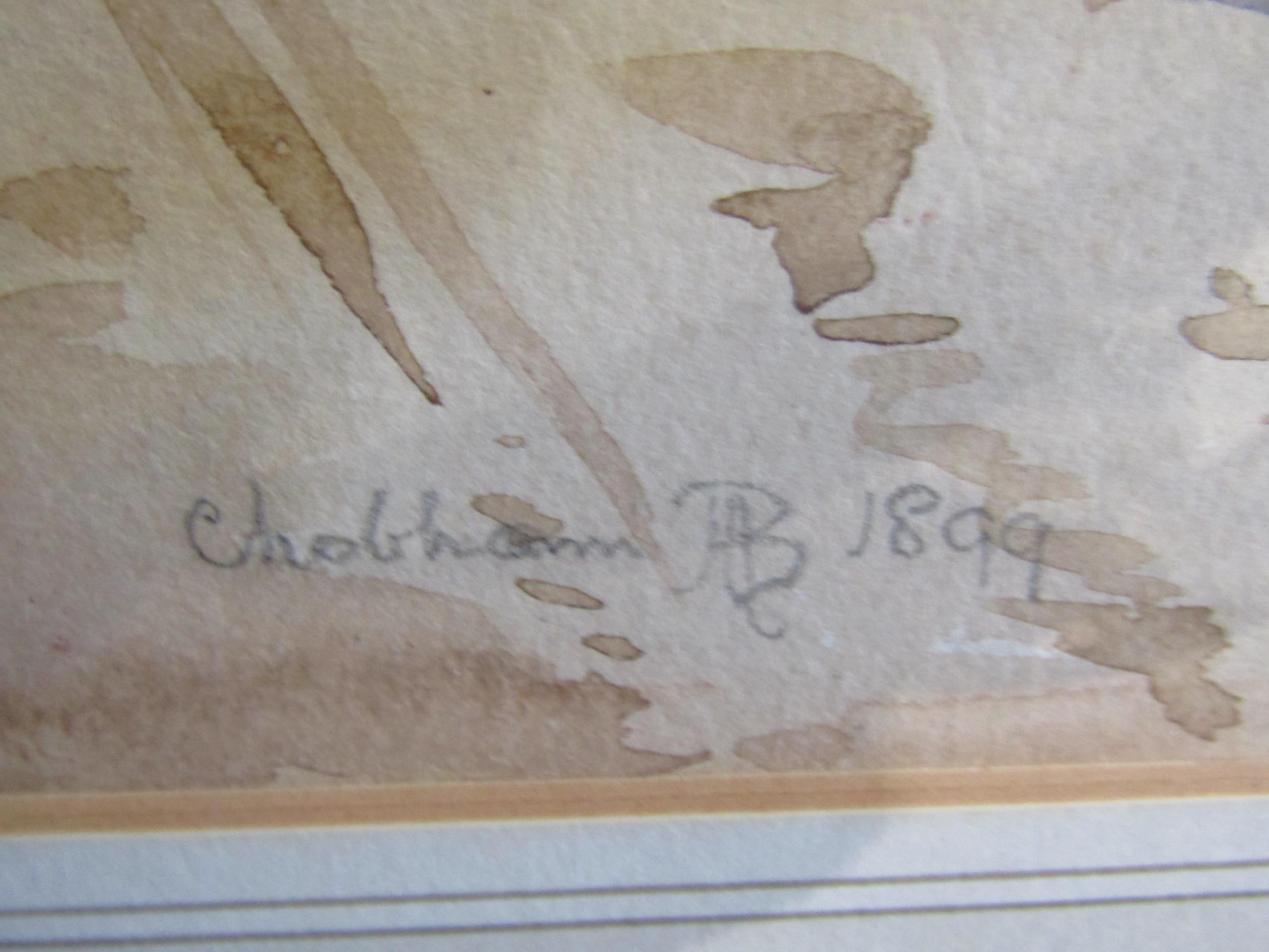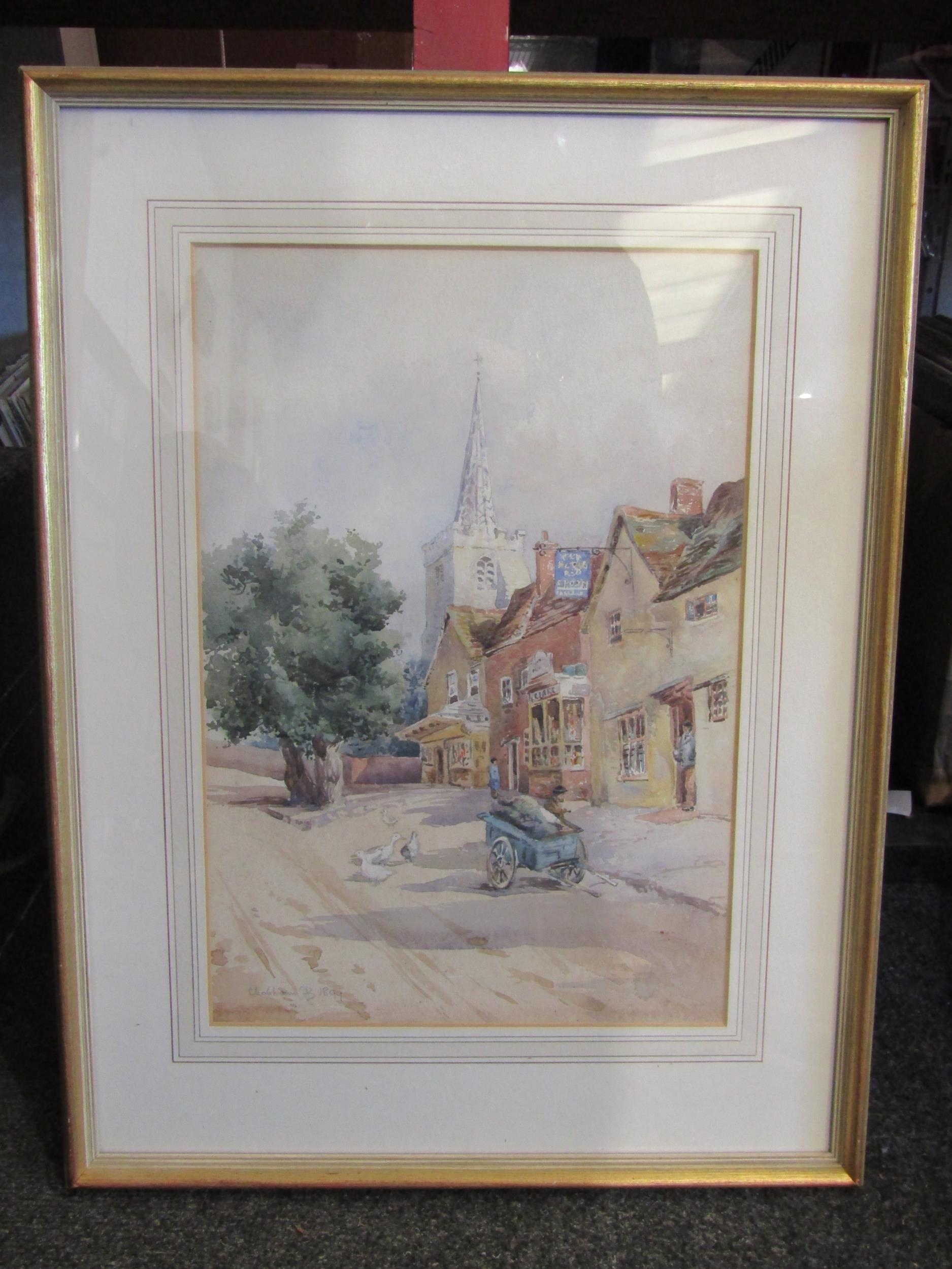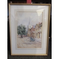 HERBERT JAMES FINN (1860-1942): A framed and glazed watercolour, Chobham Village scene, 1899, pencil monogram, label verso, image size 38cm x 26cm