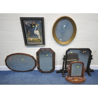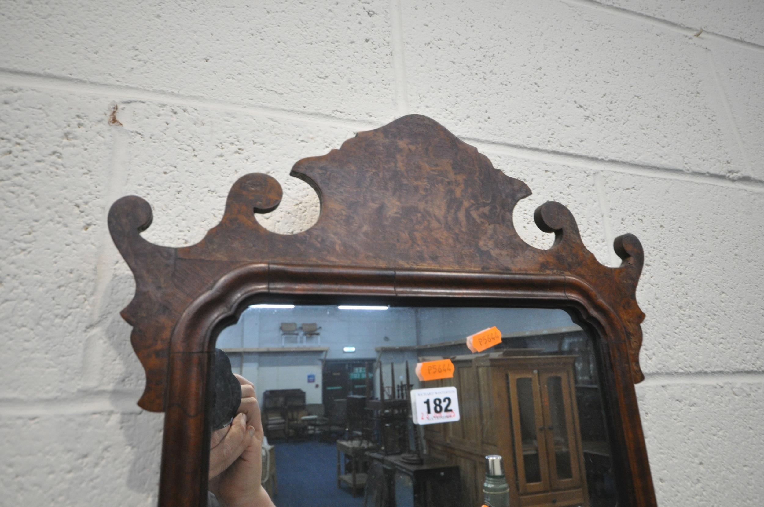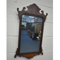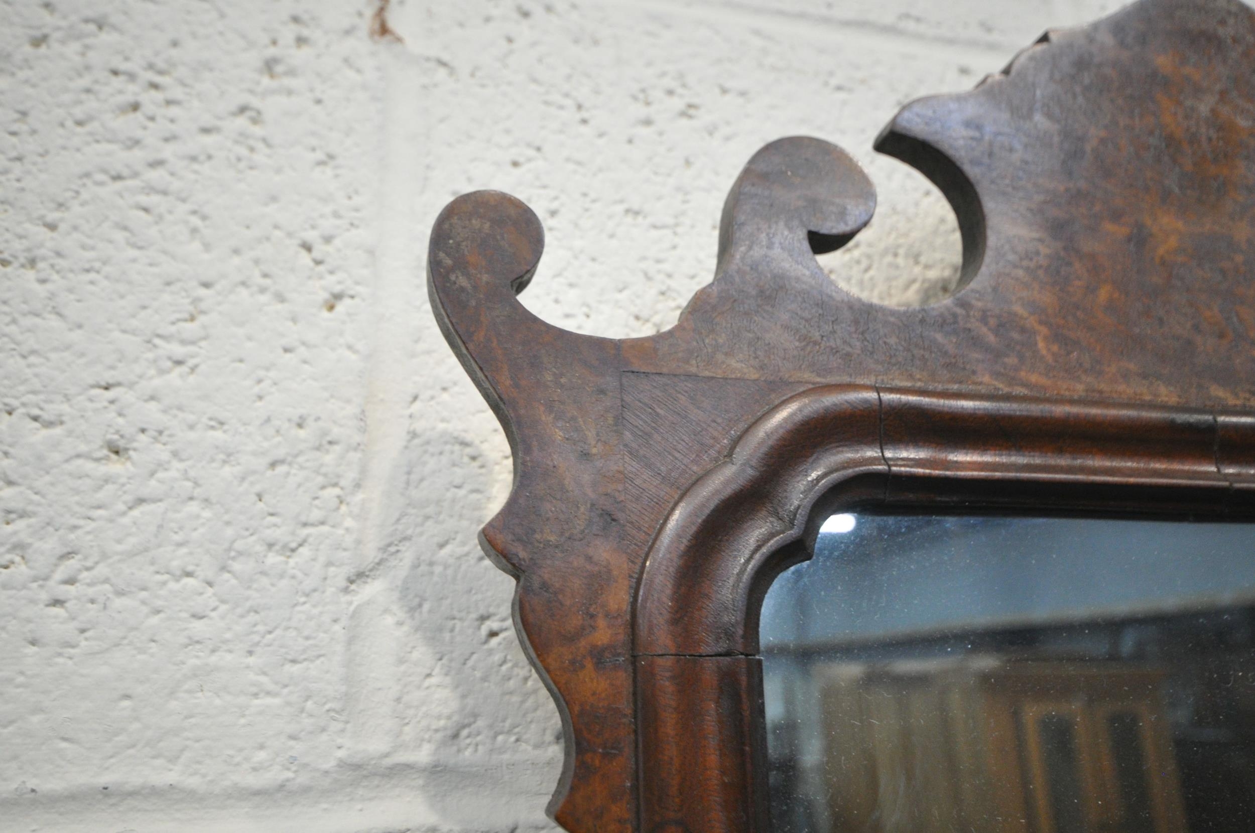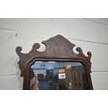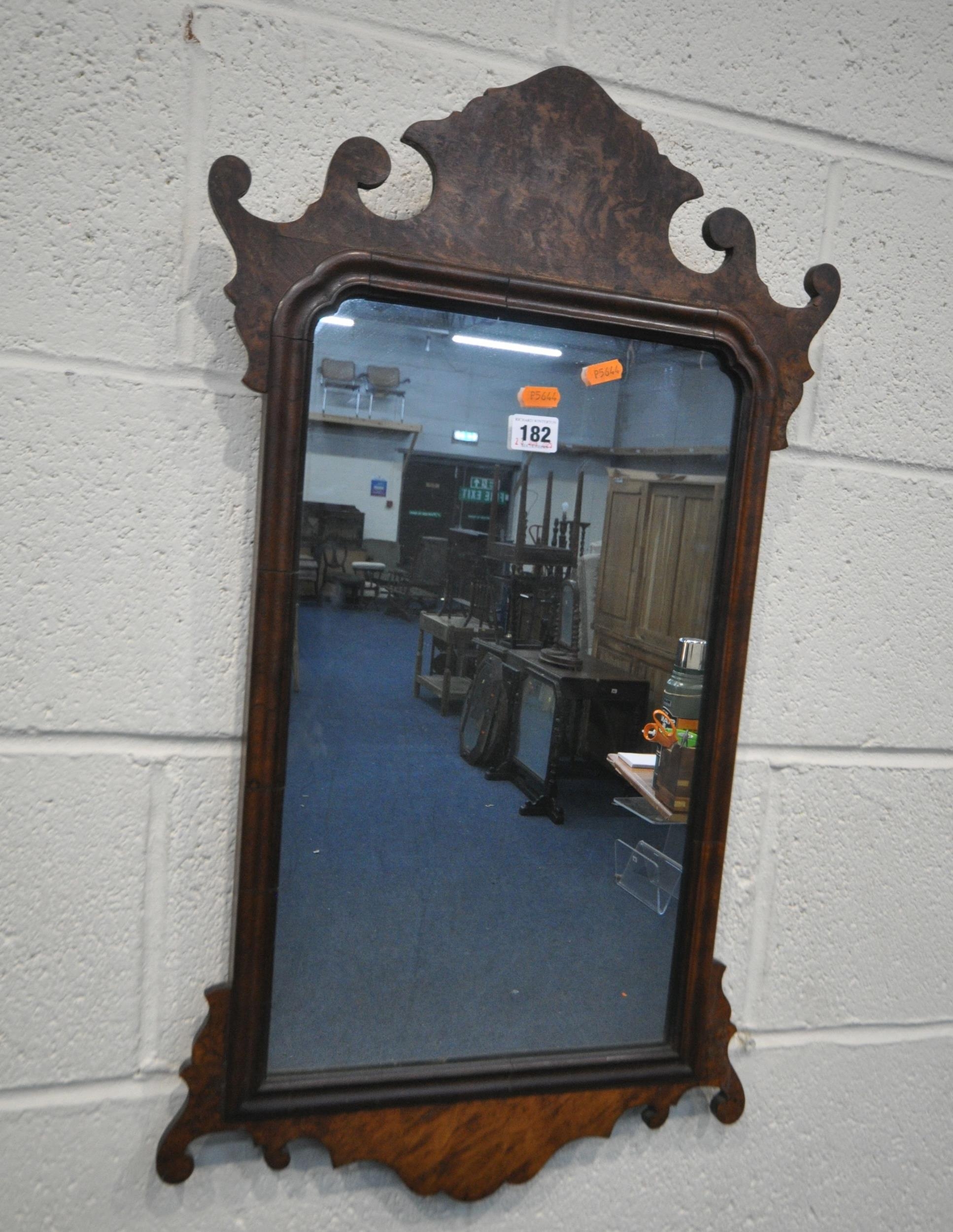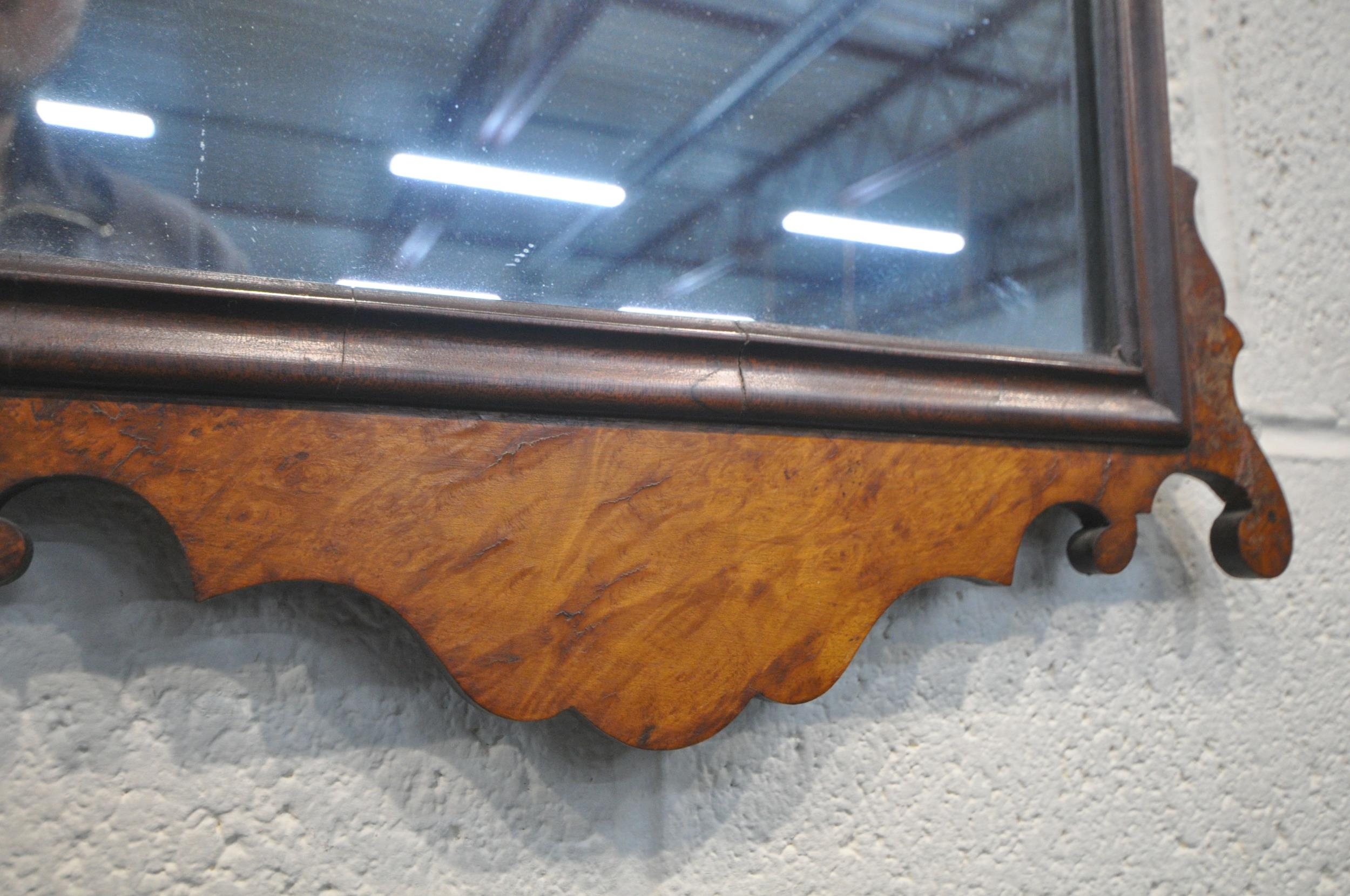 A 19TH CENTURY MAHOGANY AND BURR WALNUT FRETWORK WALL MIRROR, with scrolled designs, width 43cm x depth 75cm, condition report: overall good condition