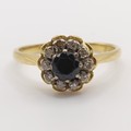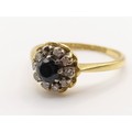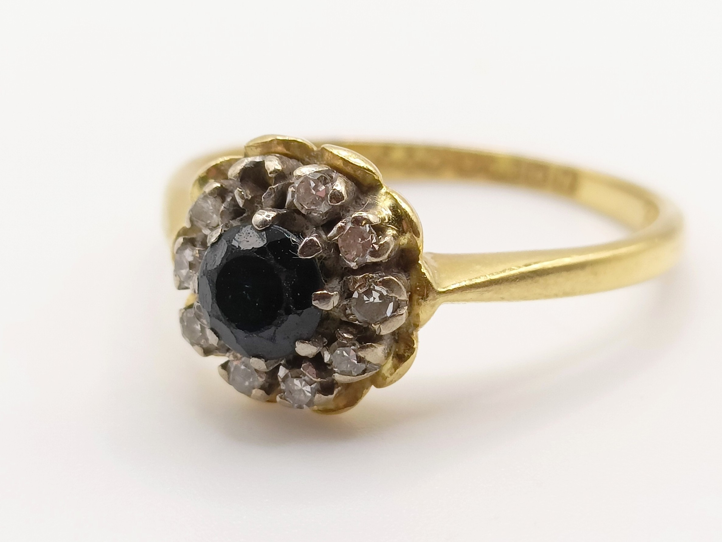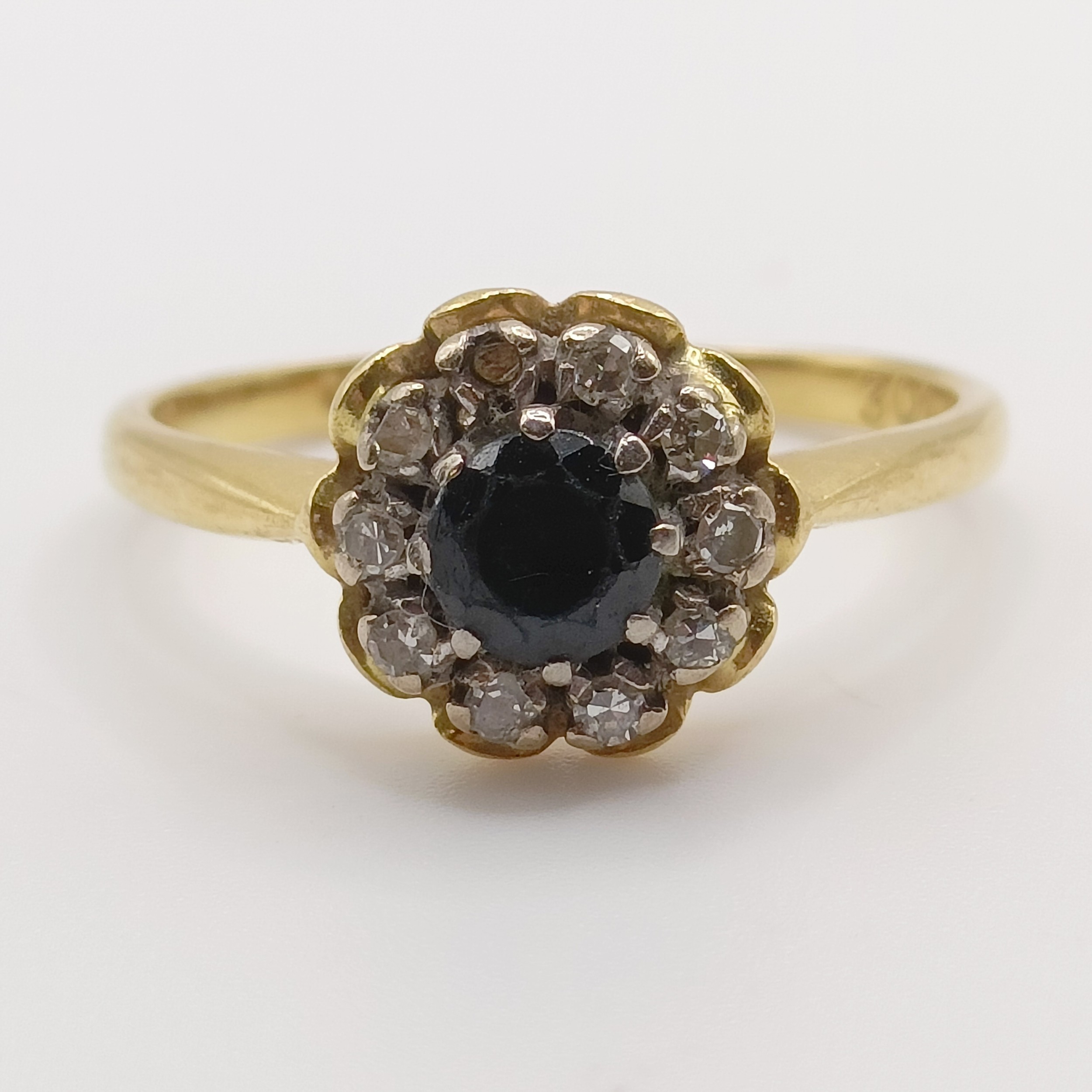 An 18ct gold, diamond and sapphire cluster ring, ring size L1/2