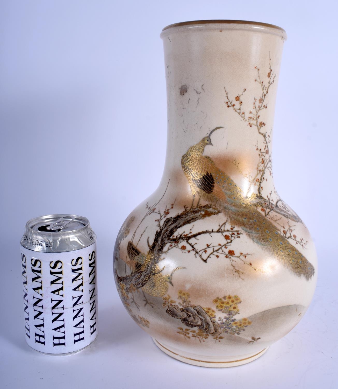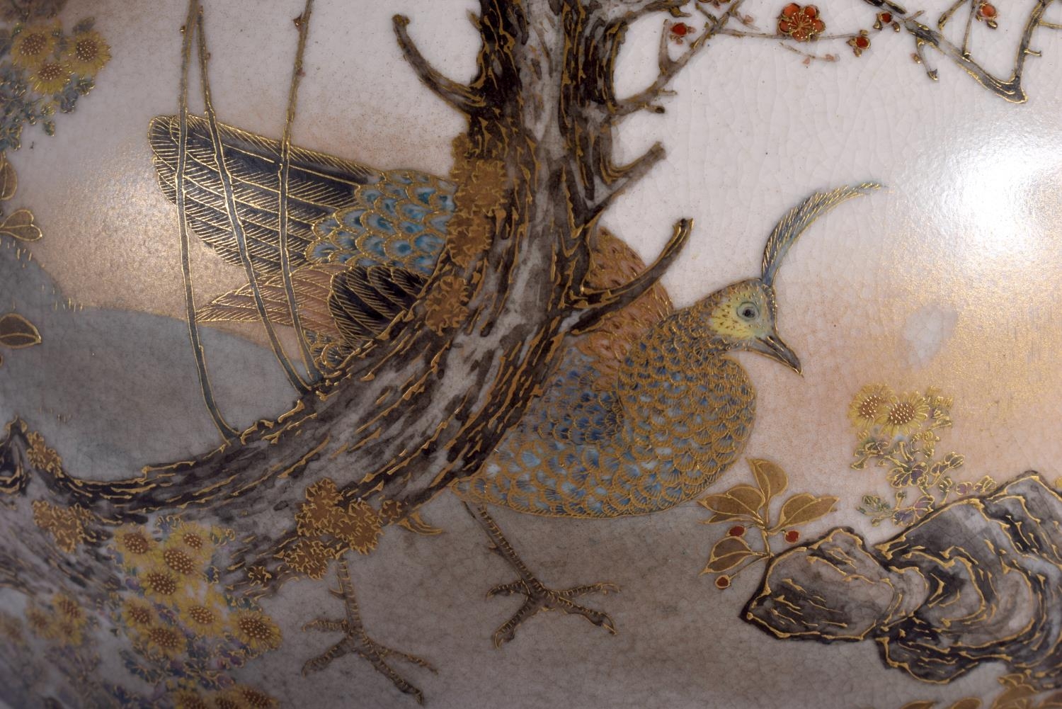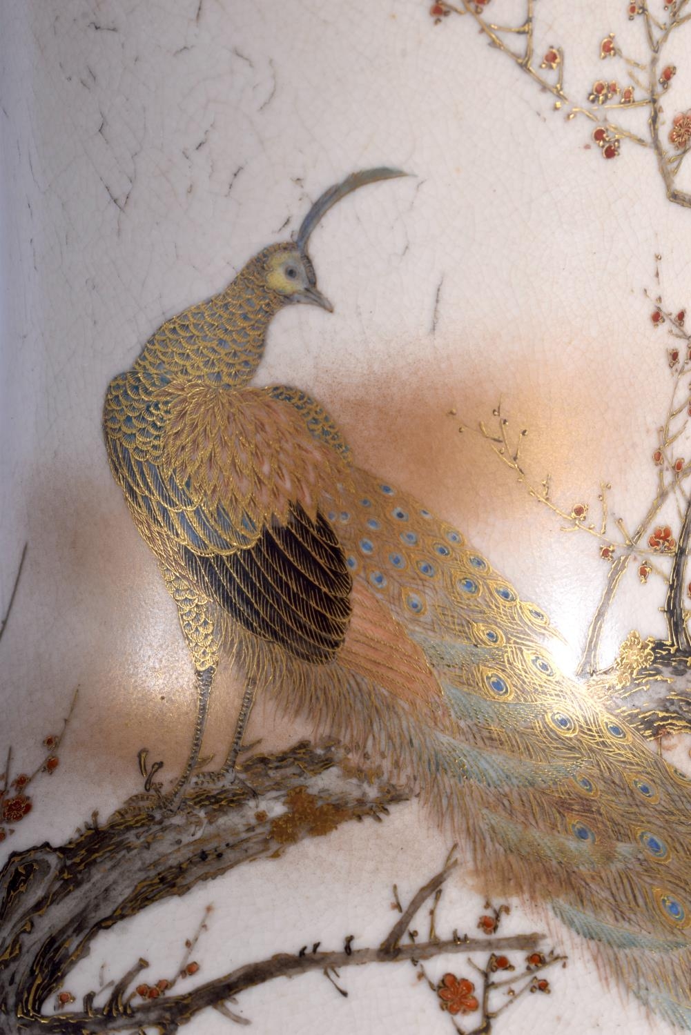 A FINE LARGE 19TH CENTURY JAPANESE MEIJI PERIOD SATSUMA VASE by Yabu Meizan, painted with peacocks and landscapes. 30 cm high.