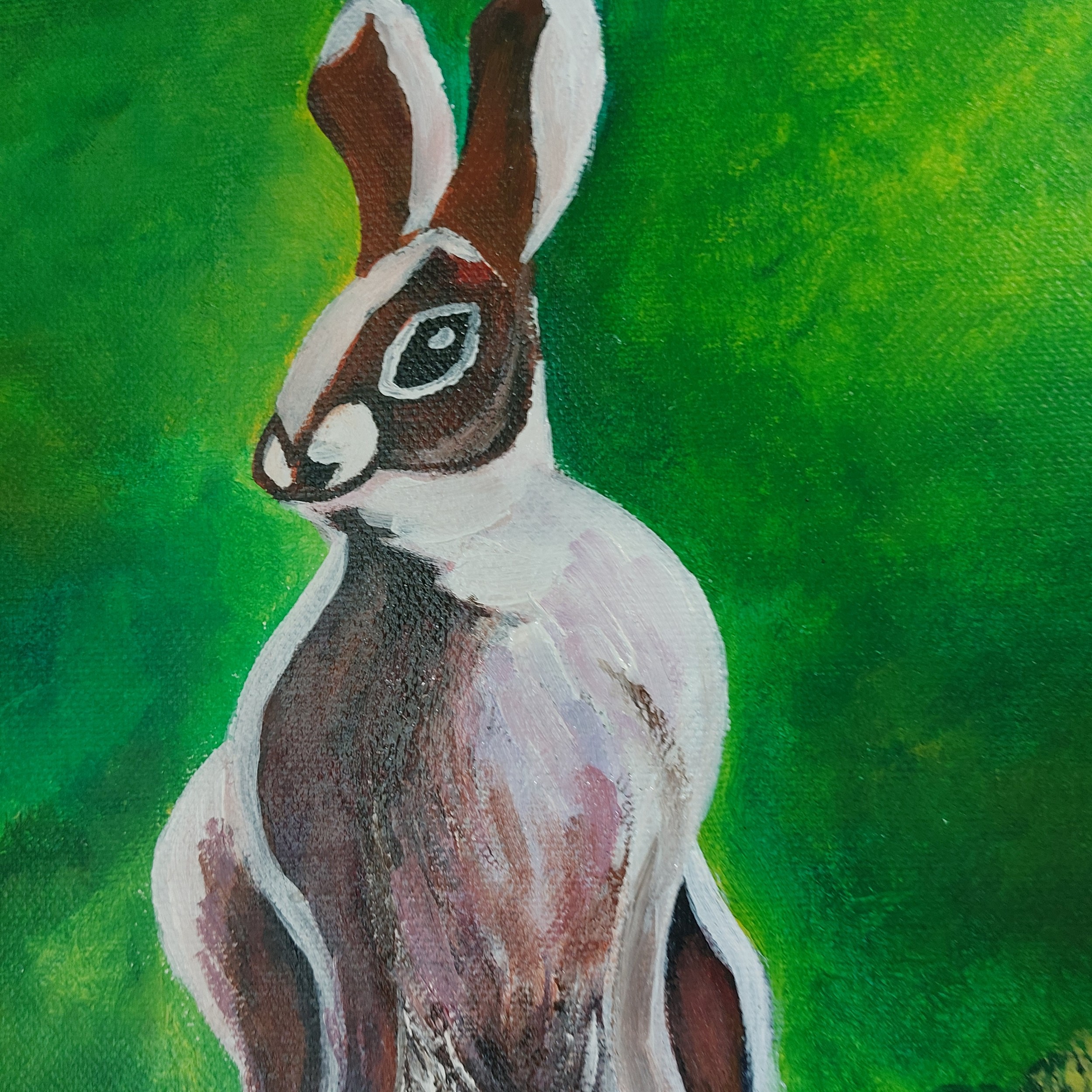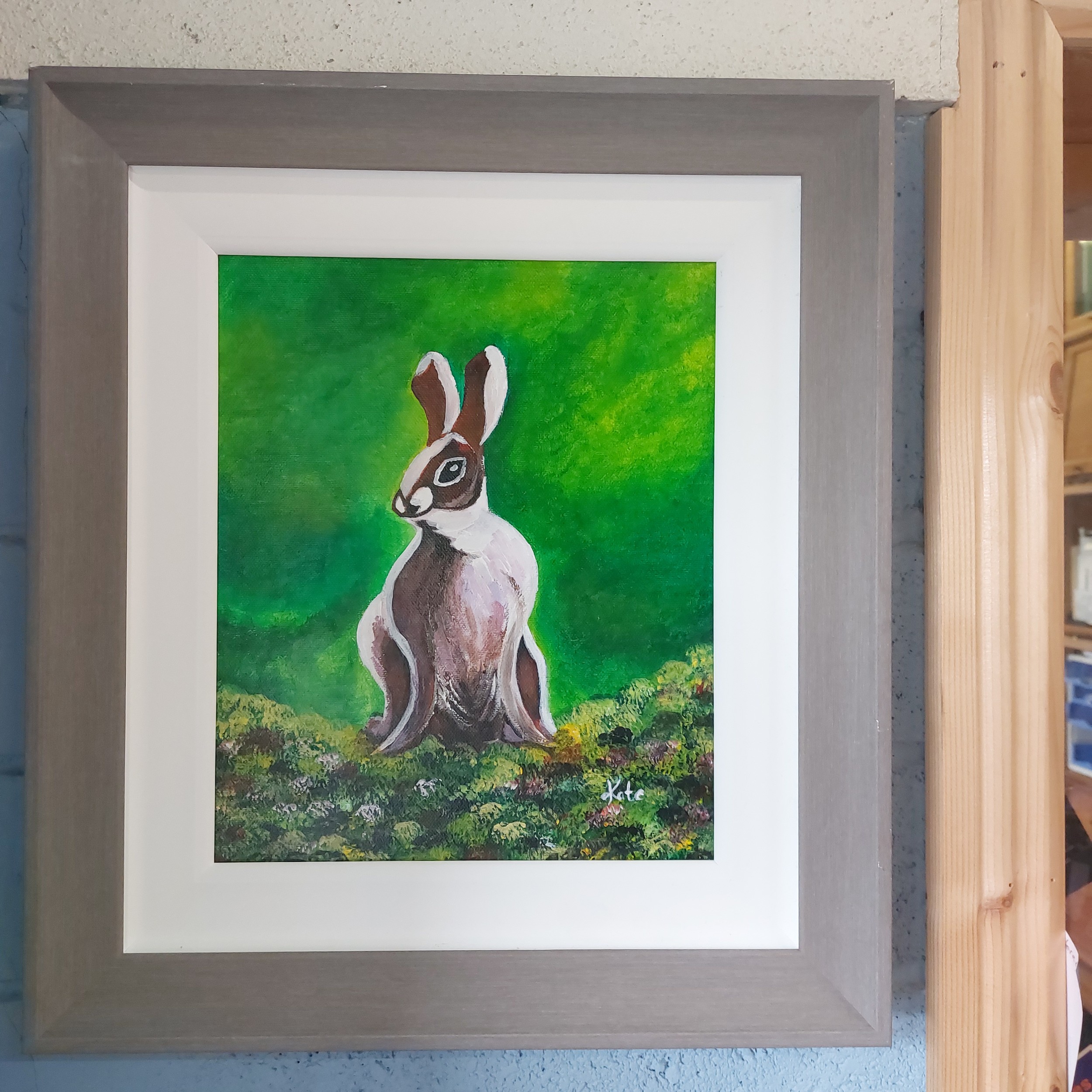 Framed acrylic on board - A Rabbit, signed Kate. {45 cm H x 40 cm W}.