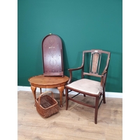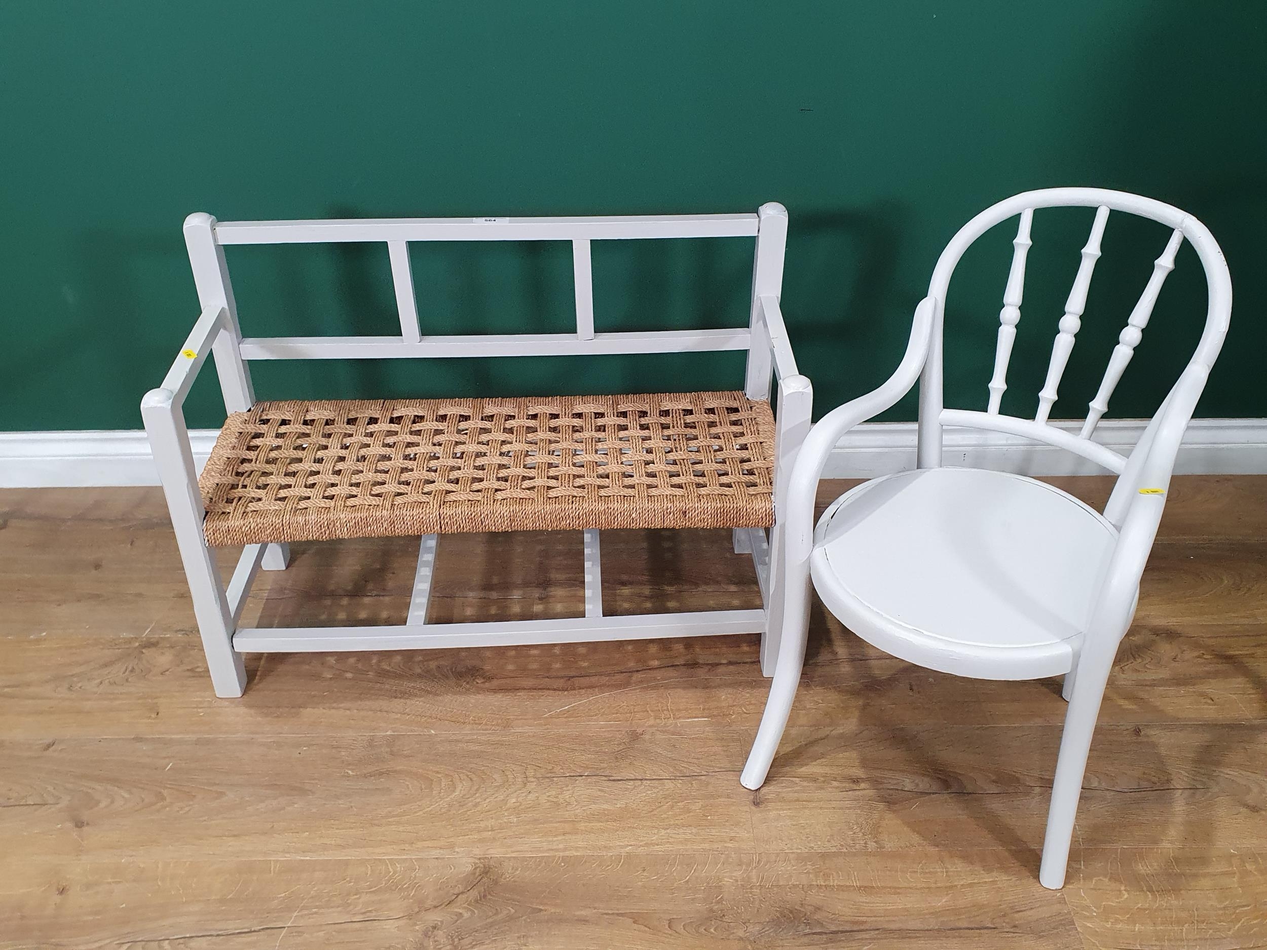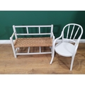 A grey painted Childs Chair and a string seated painted Childs Bench.