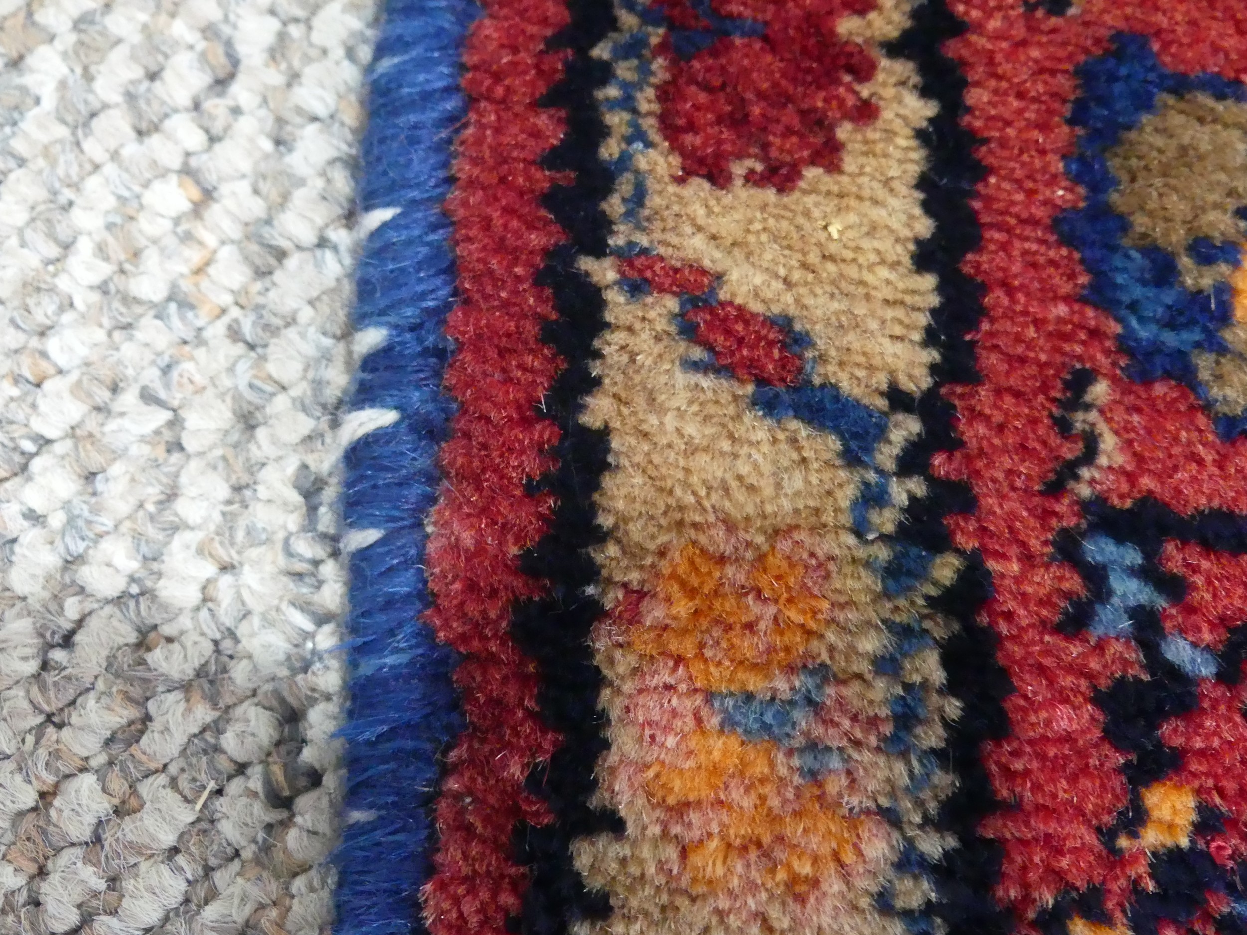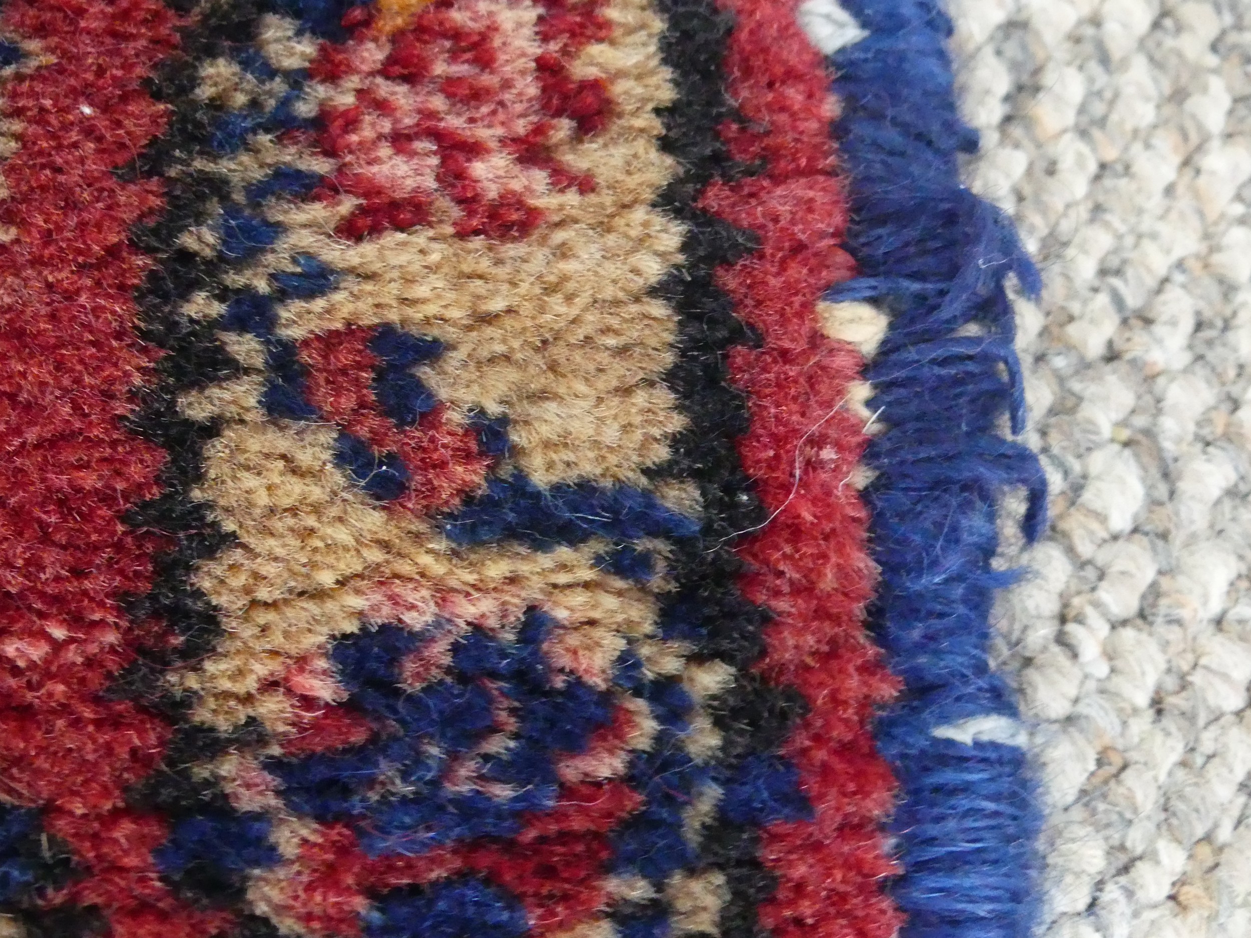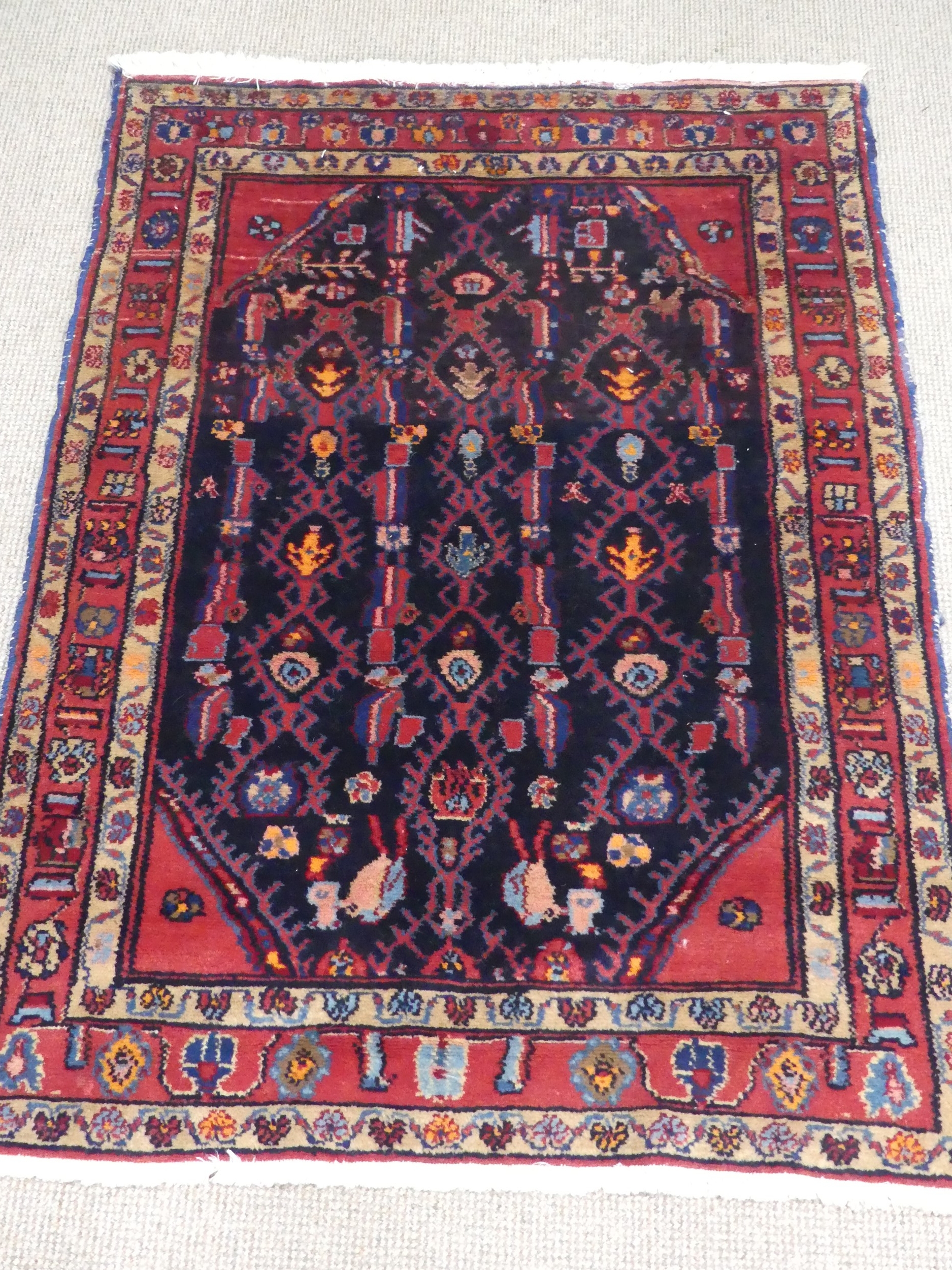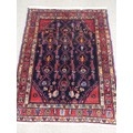 Tribal Rugs; a Hamadan dark-blue and red ground Rug, wool pile on cotton base, 164cm x 111cm, pile in good condition whipping along edges is frayed in places.