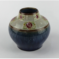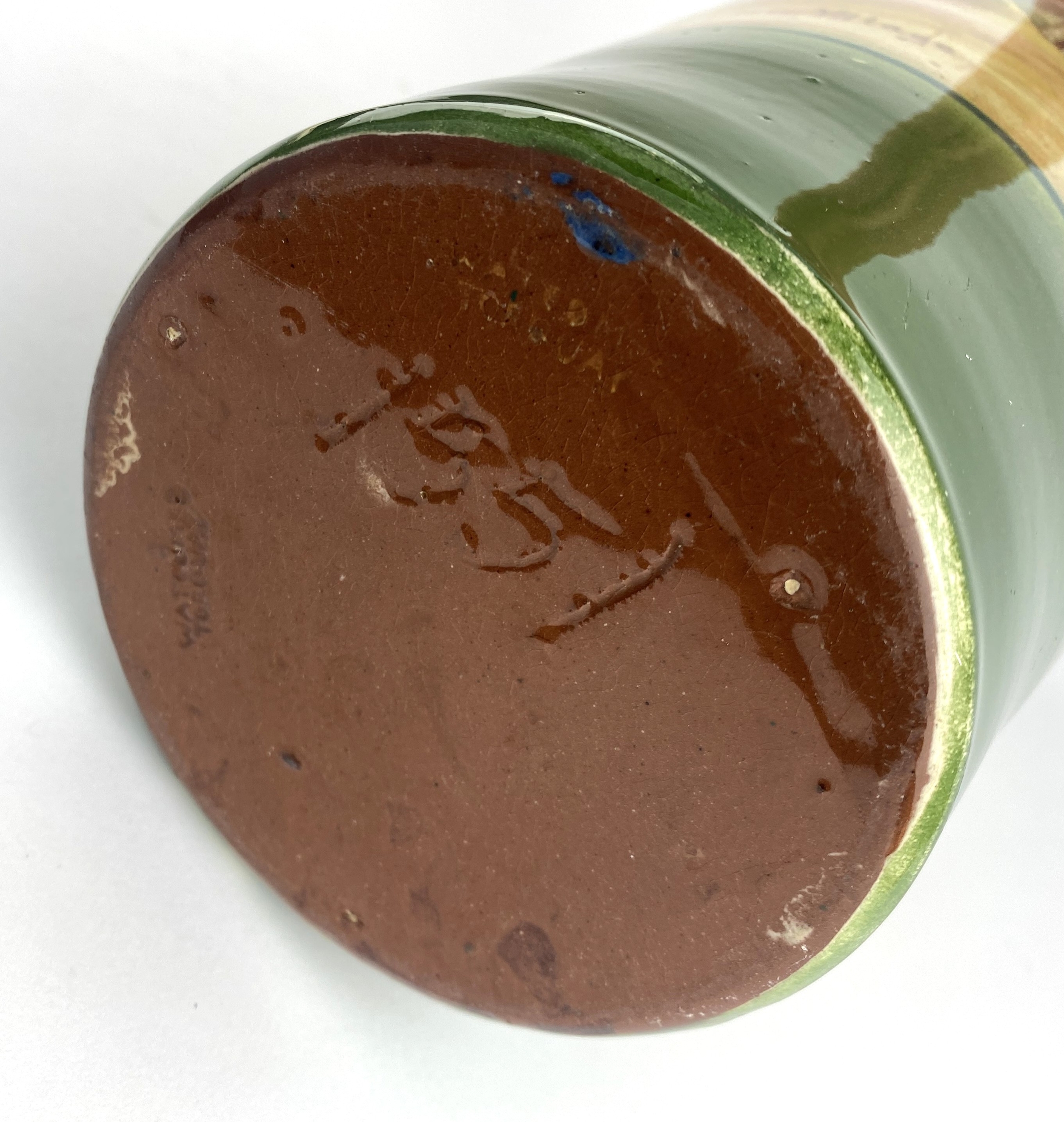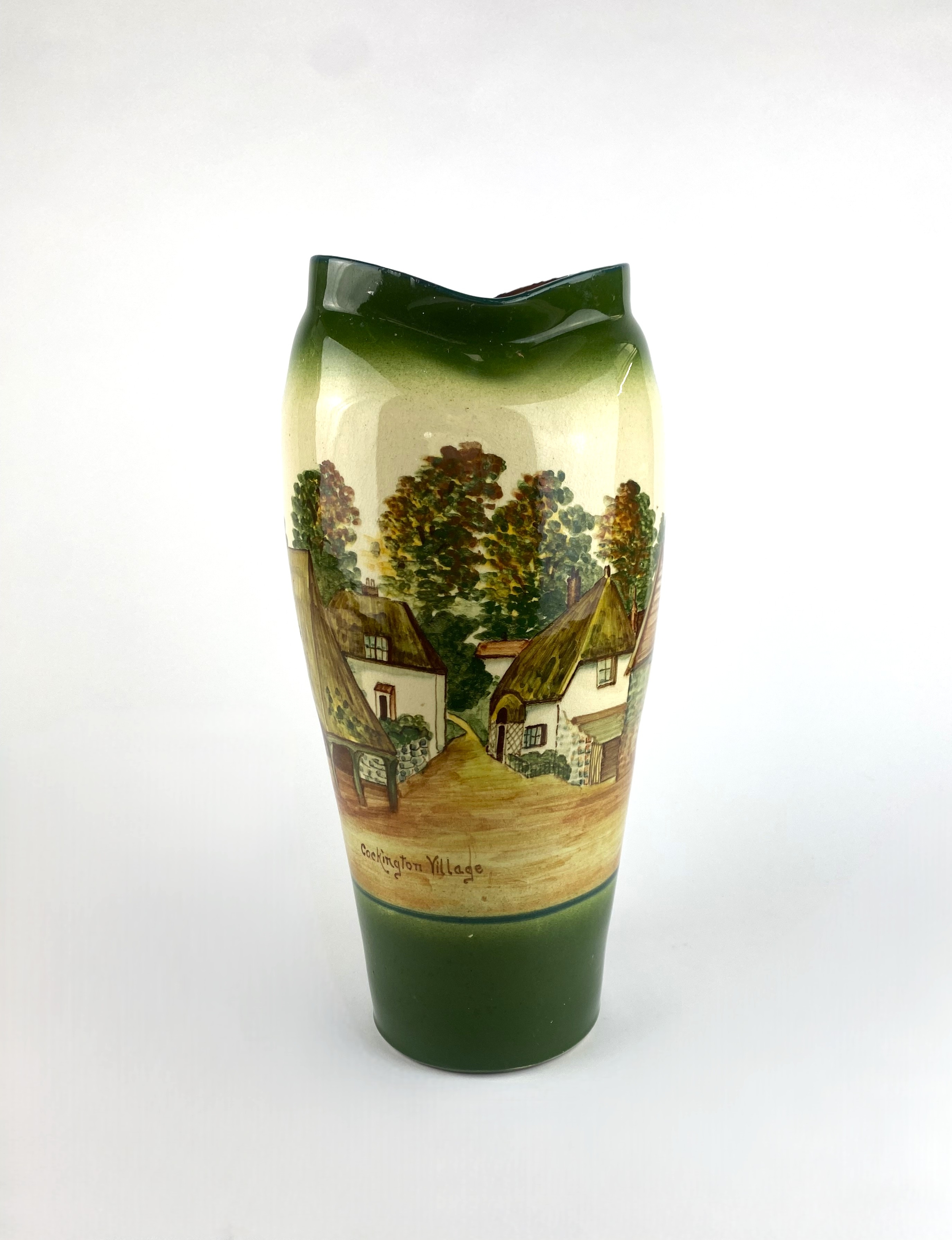 A Torquay pottery vase decorated with a scenic view of Cockington Village 36cm high