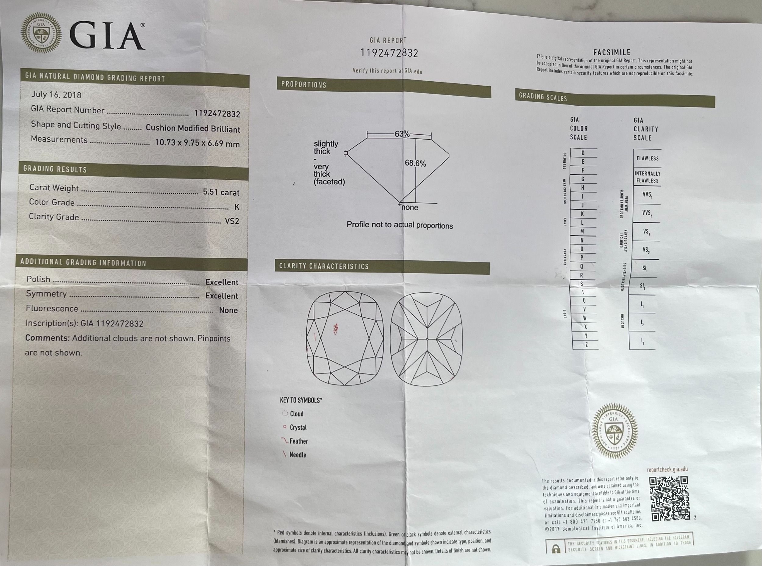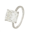 An impressive platinum cushion-shape diamond single-stone ring, with brilliant-cut diamond line shoulders, with photocopy of report from the GIA, stating diamond weight 5.51ct, K colour, VS2 clarity, band stamped PT950, apprximate ring size K, 4.8g
