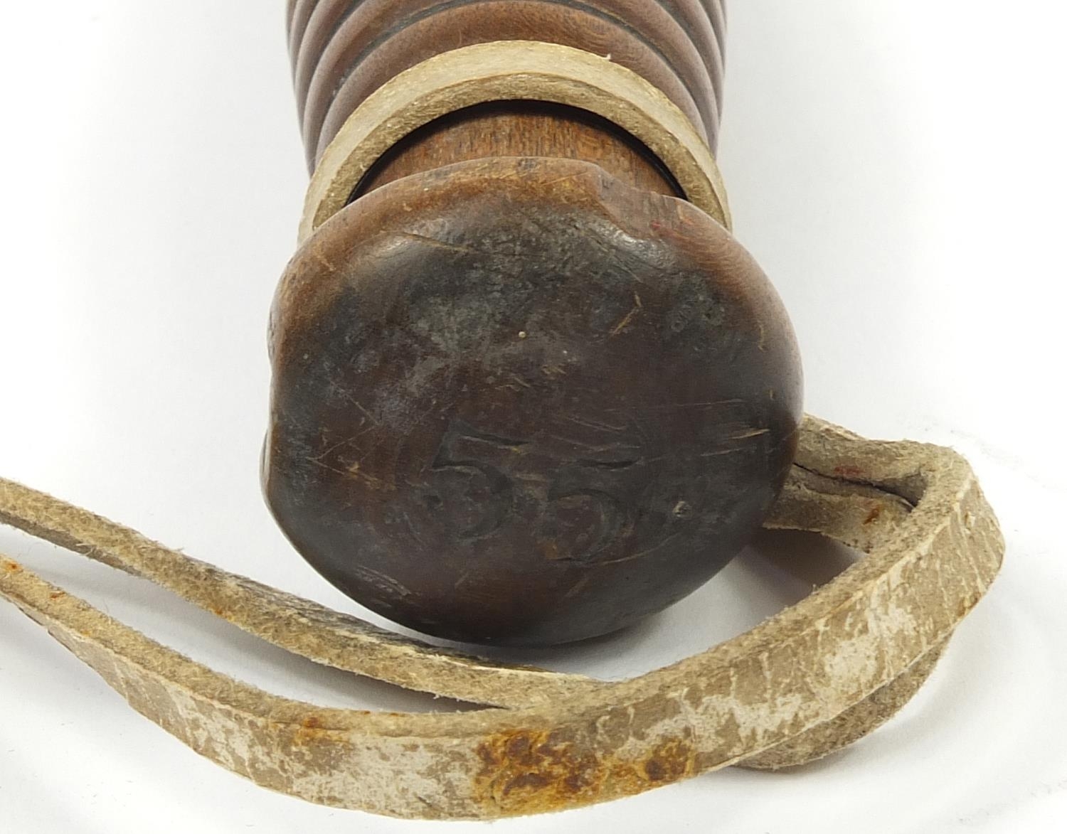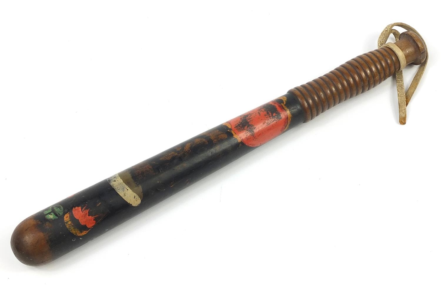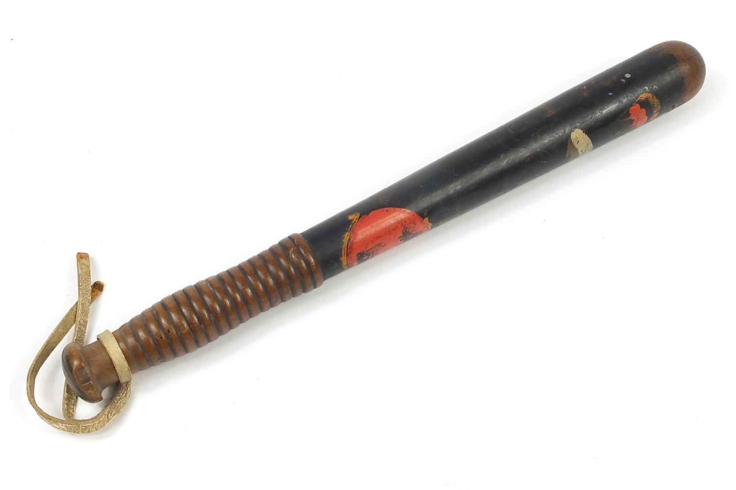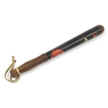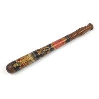 Victorian turned wood police truncheon with hand painted crest, 38.5cm in length