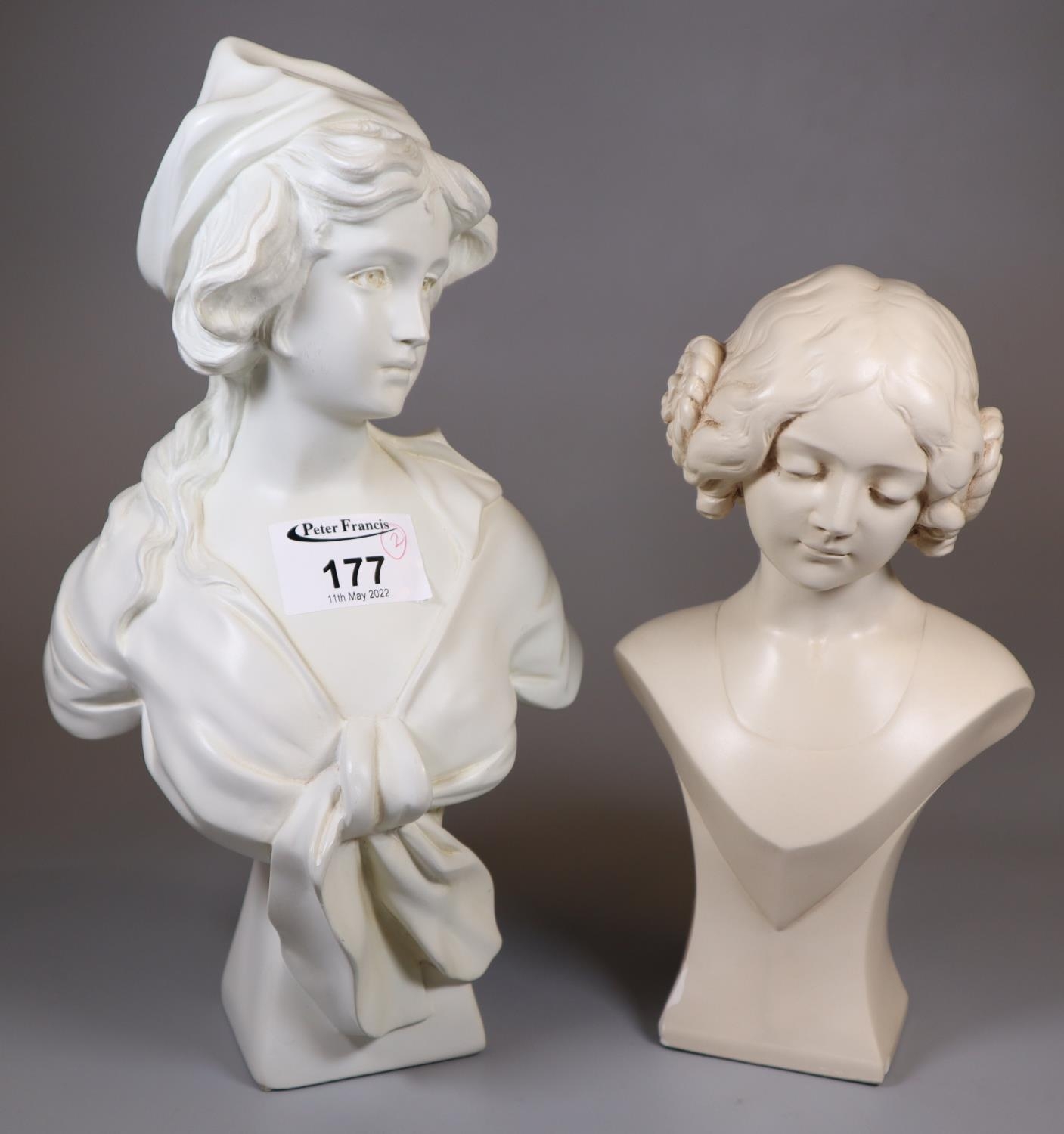 2 Modern marble finish busts - 1 after Raymond Pierre Dupont's original (2) (B.P. 21% + VAT)