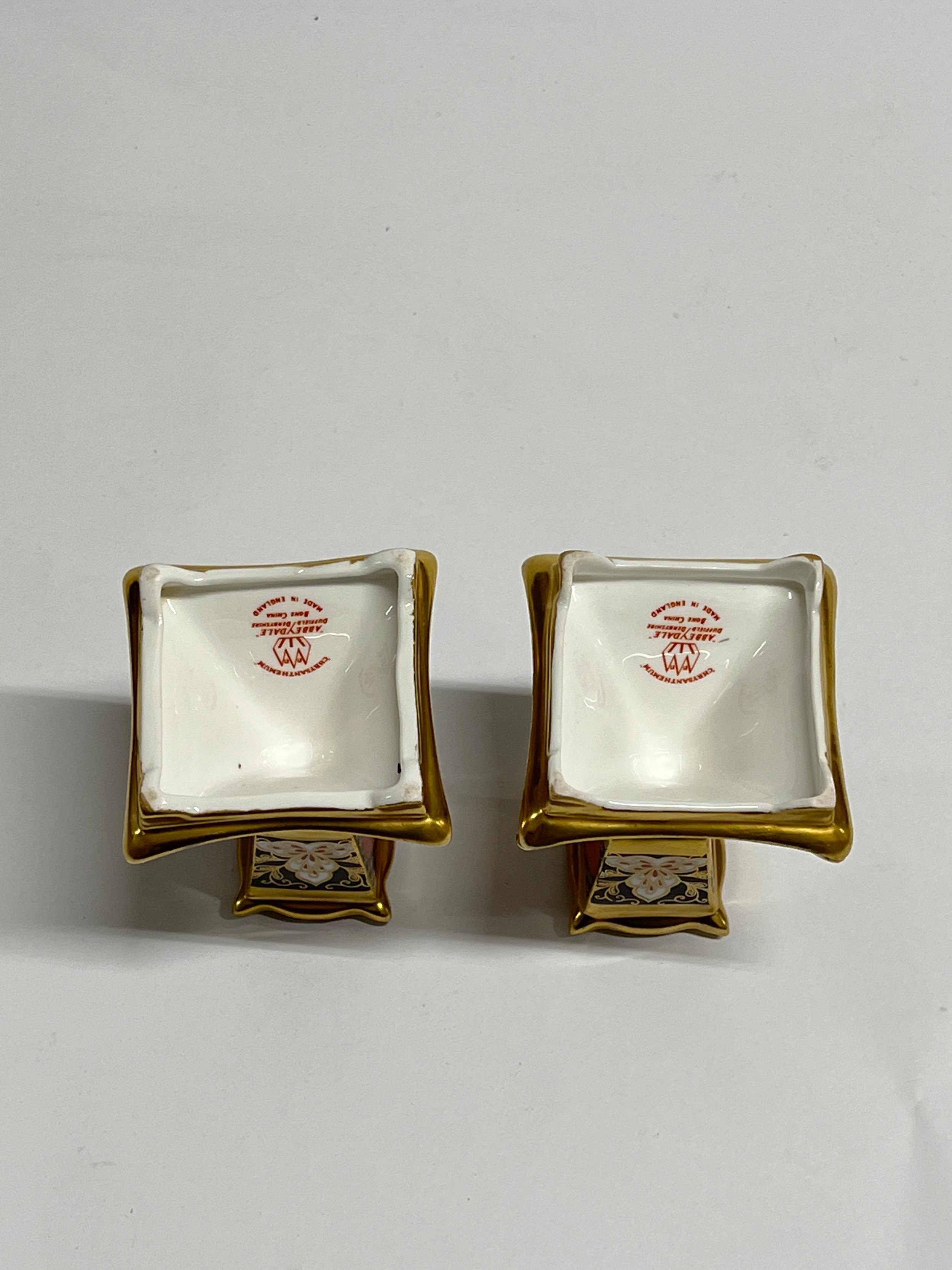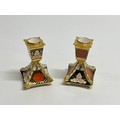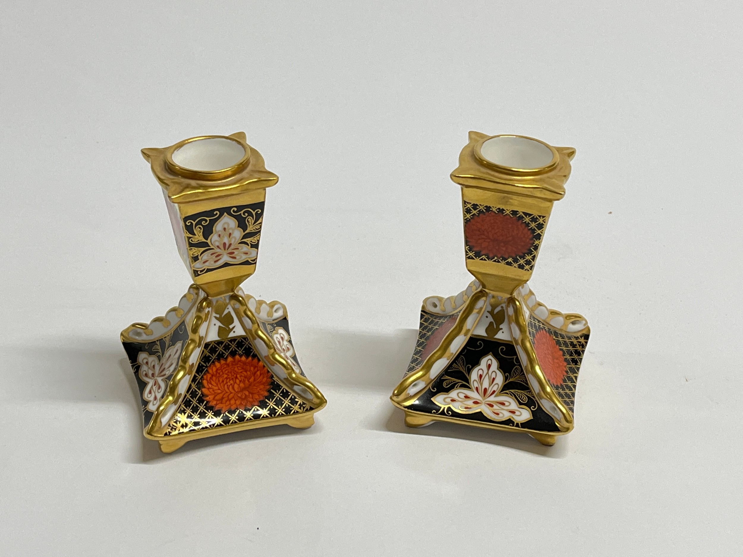 A pair of Royal Crown Derby Chrysanthemum "Abbeydale" candlesticks, 11cm tall (C)