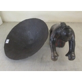 A studio pottery figure, kneeling beside a bowl 16"h