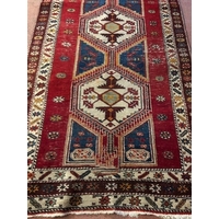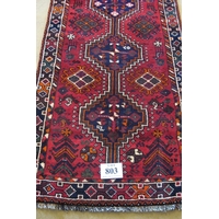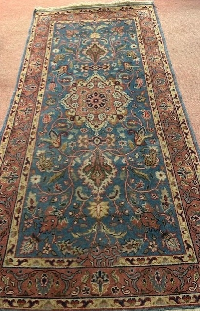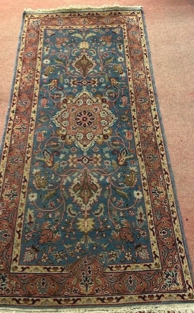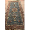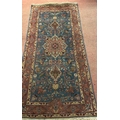 An early mid 20th century Persian rug, with a central floral field on blue ground. 185 x 89cms (approx).