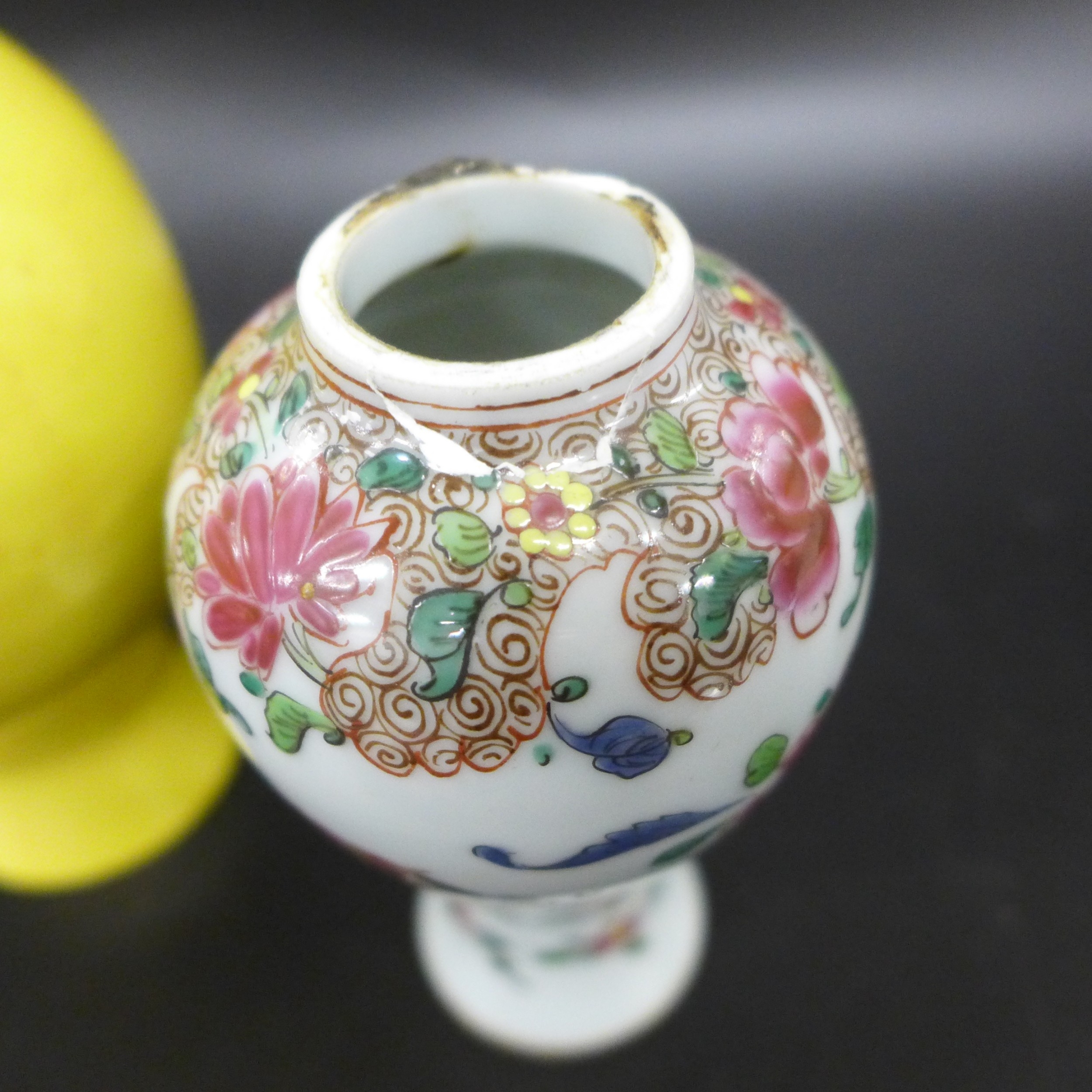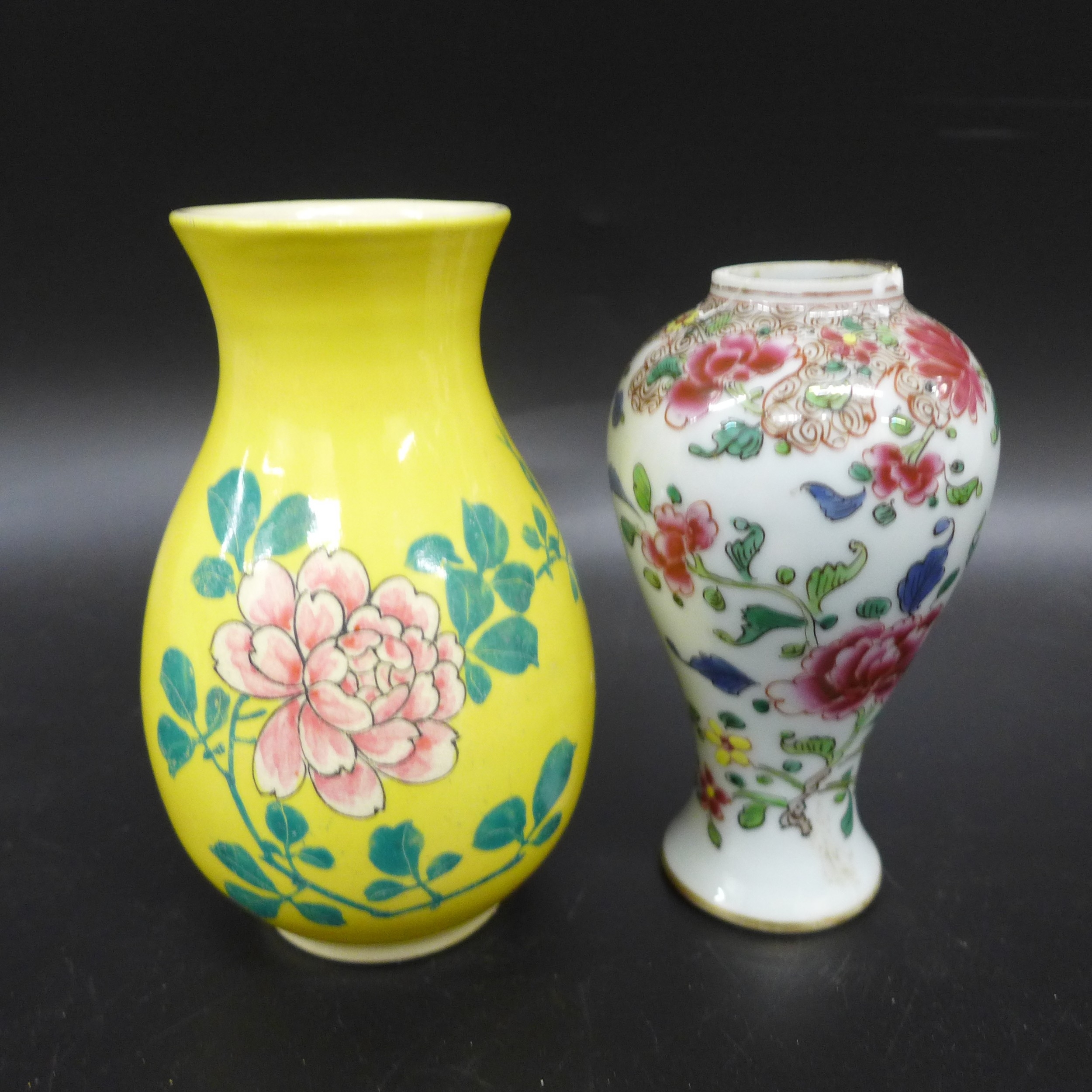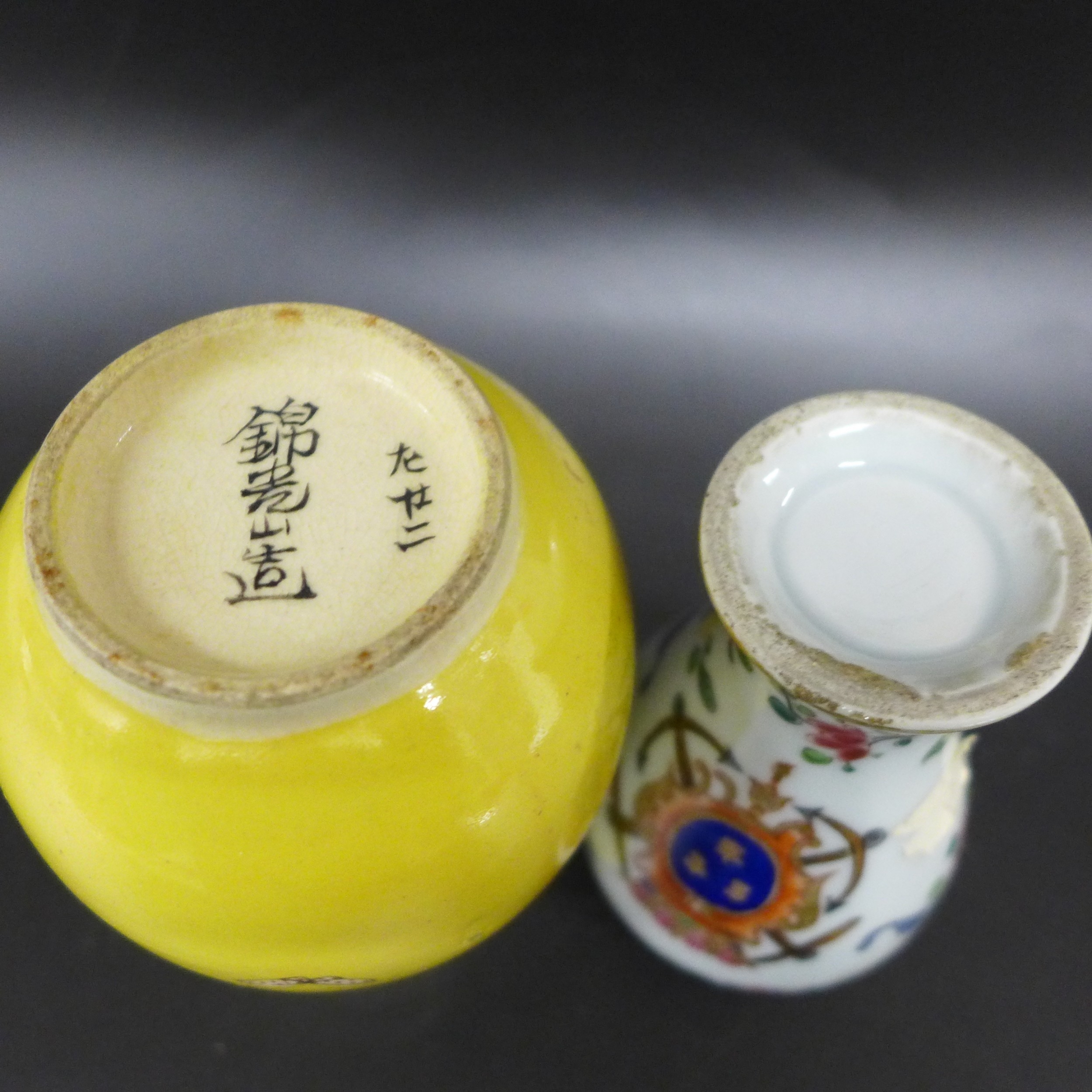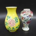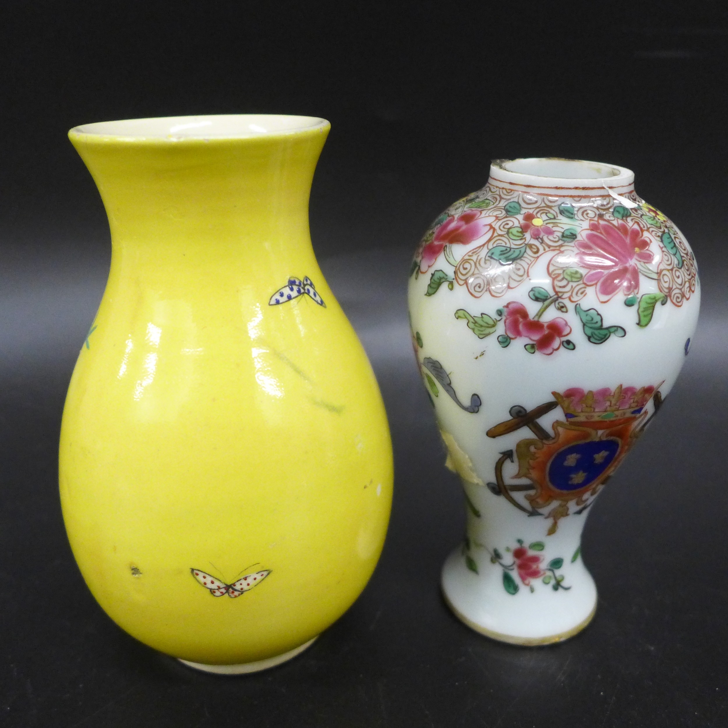 Two small vases, including one with heraldic coat of arms depicting anchors
