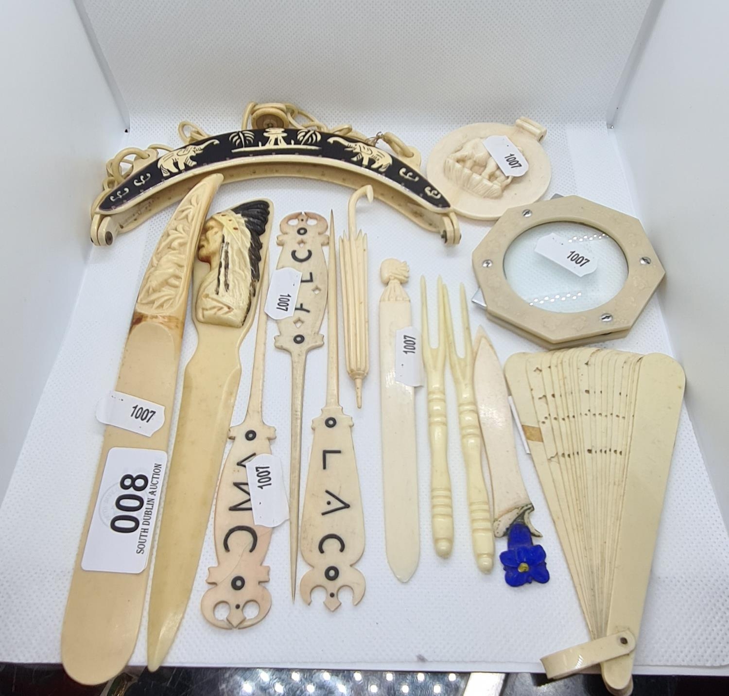 Quantity of worked 19th century Ivory items.