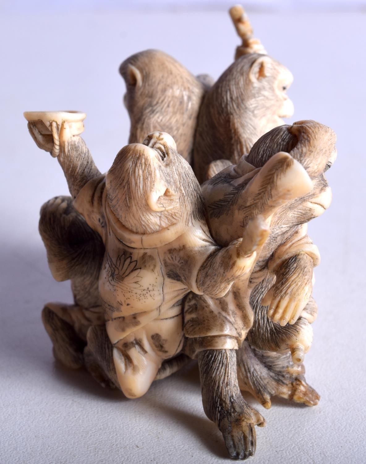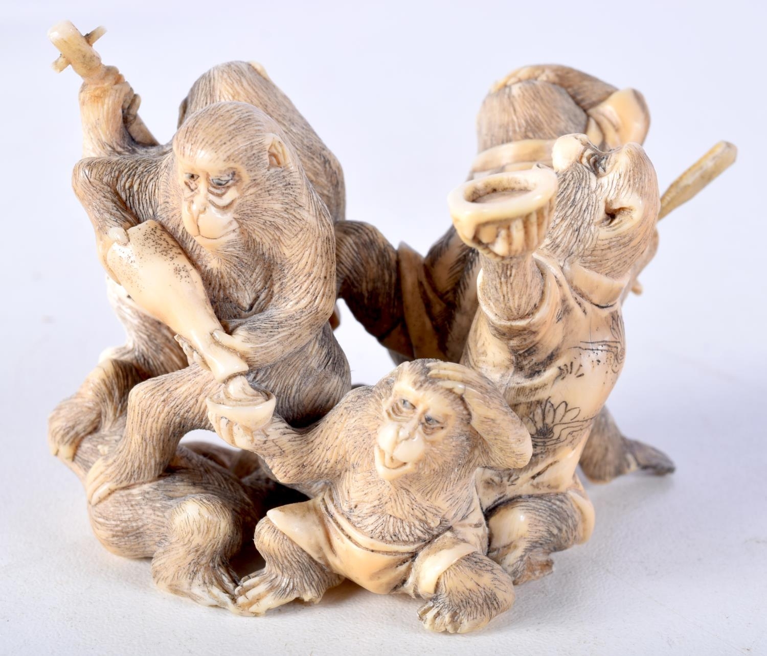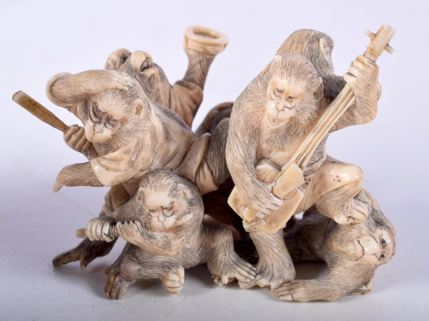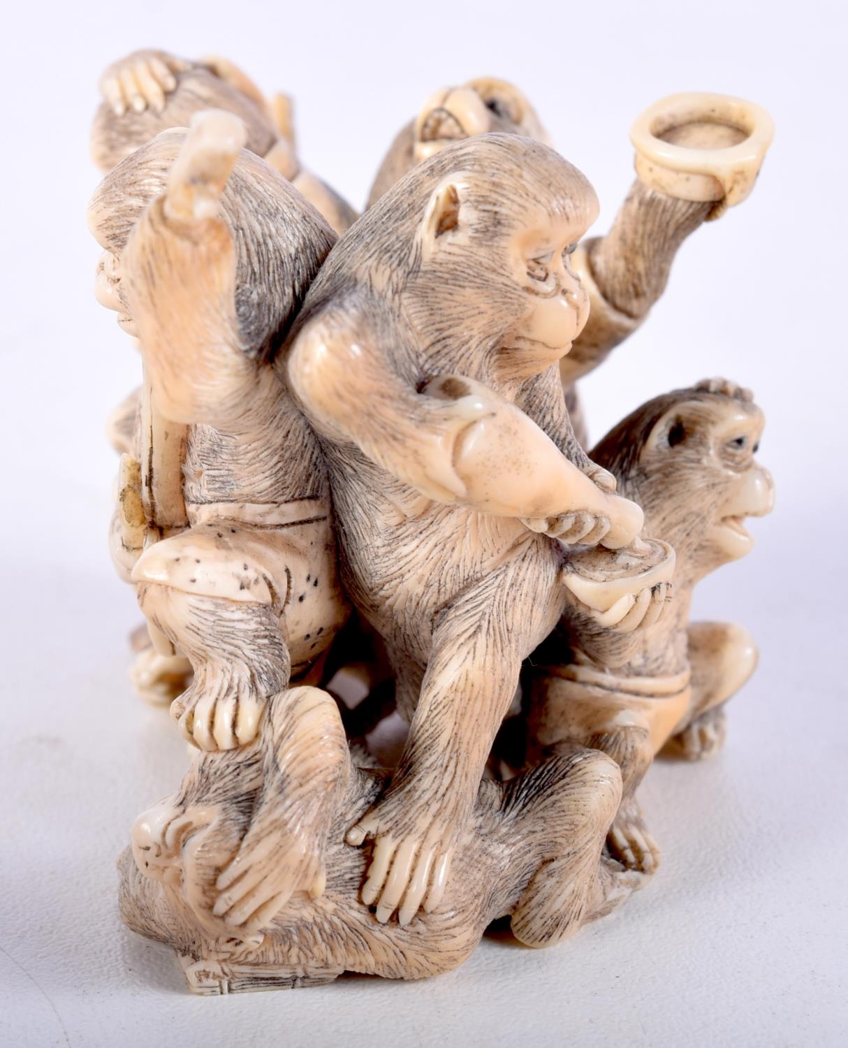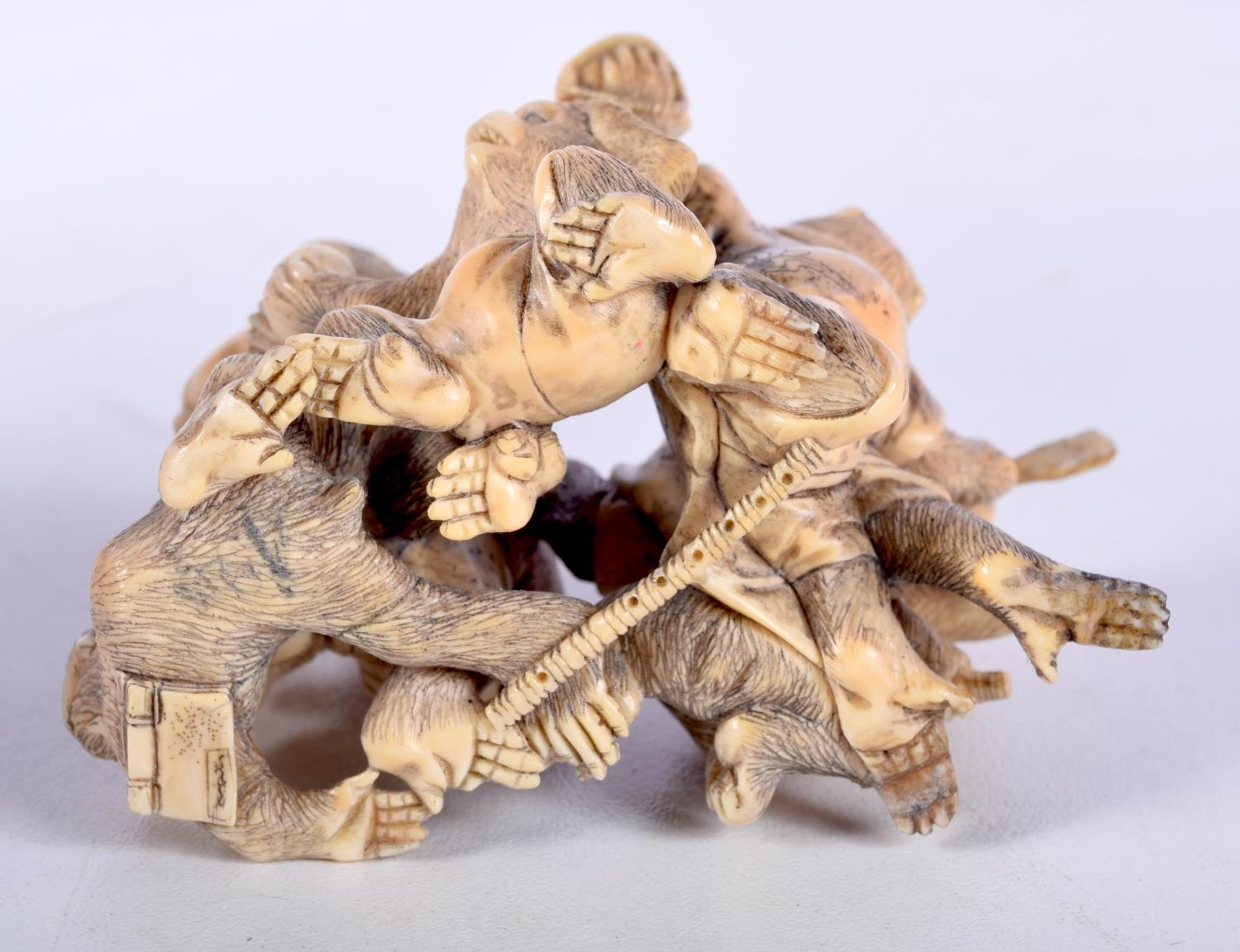 A 19TH CENTURY JAPANESE MEIJI PERIOD CARVED IVORY OKIMONO modelled as numerous monkeys. 7 cm x 5 cm.