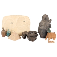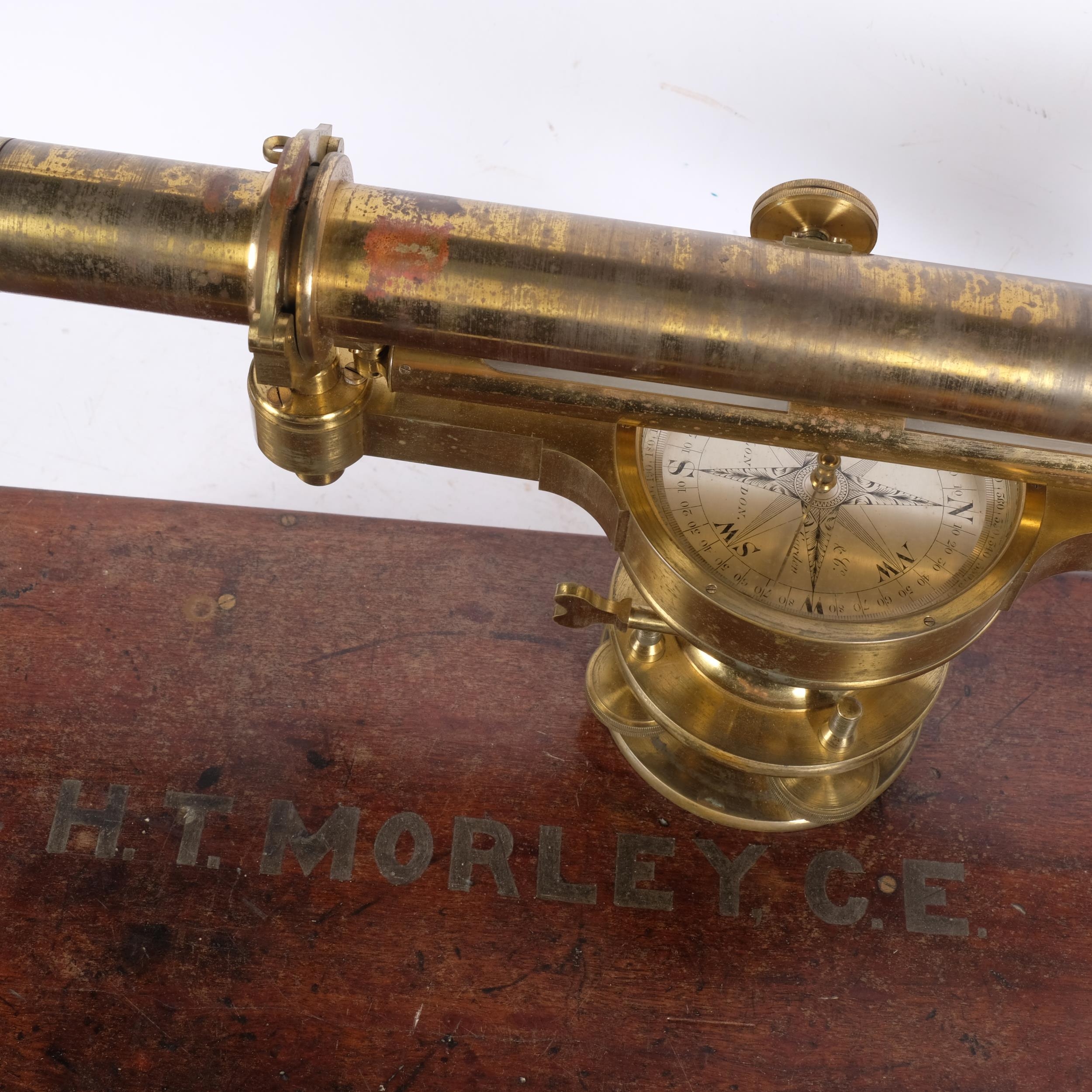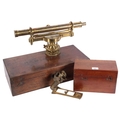 A mahogany-cased Antique brass theodolite with compass and accessories, L52cm, and a cased Thomson's Azimuth mirror
