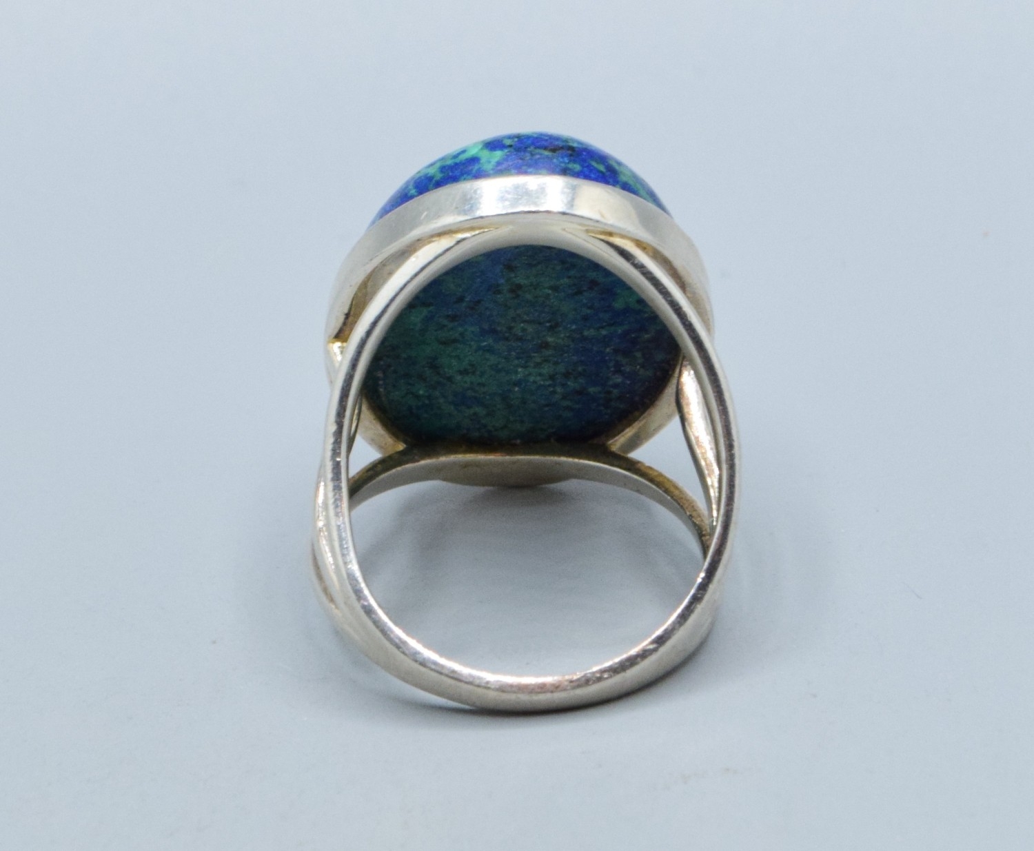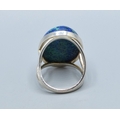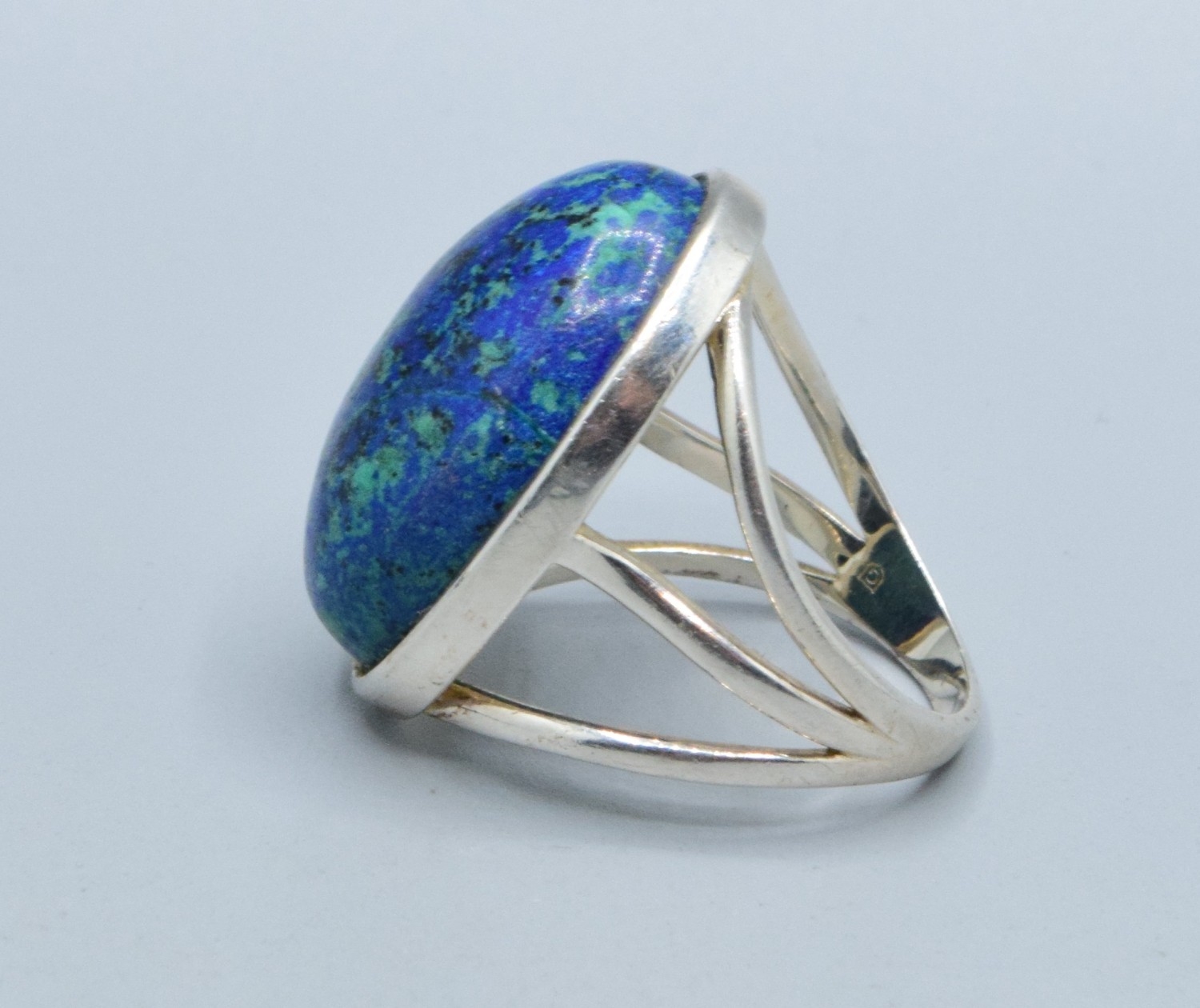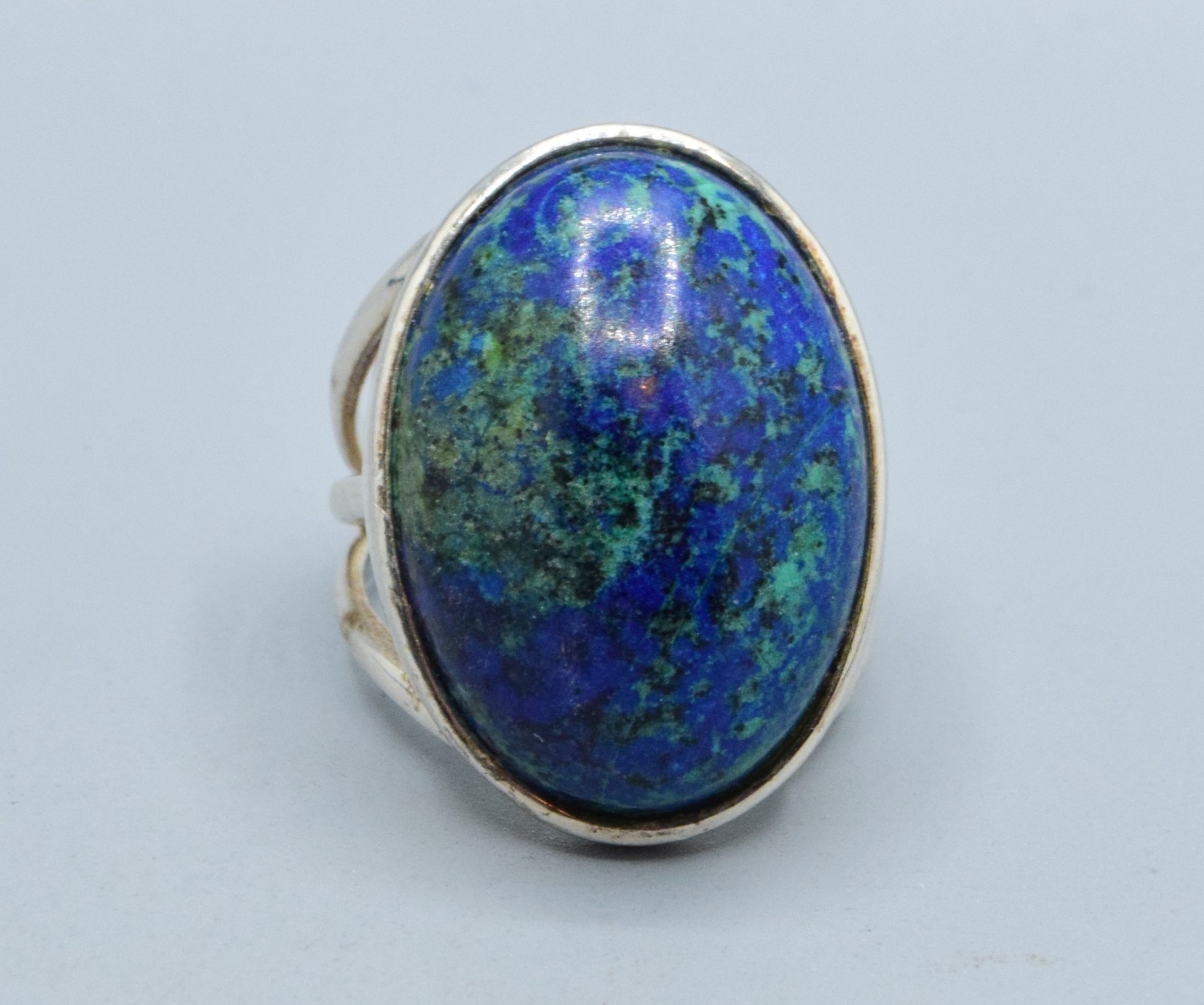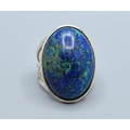 925 silver ladies oval design Azurite agate dress ring with a large polished central stone measuring 28x20mm size P