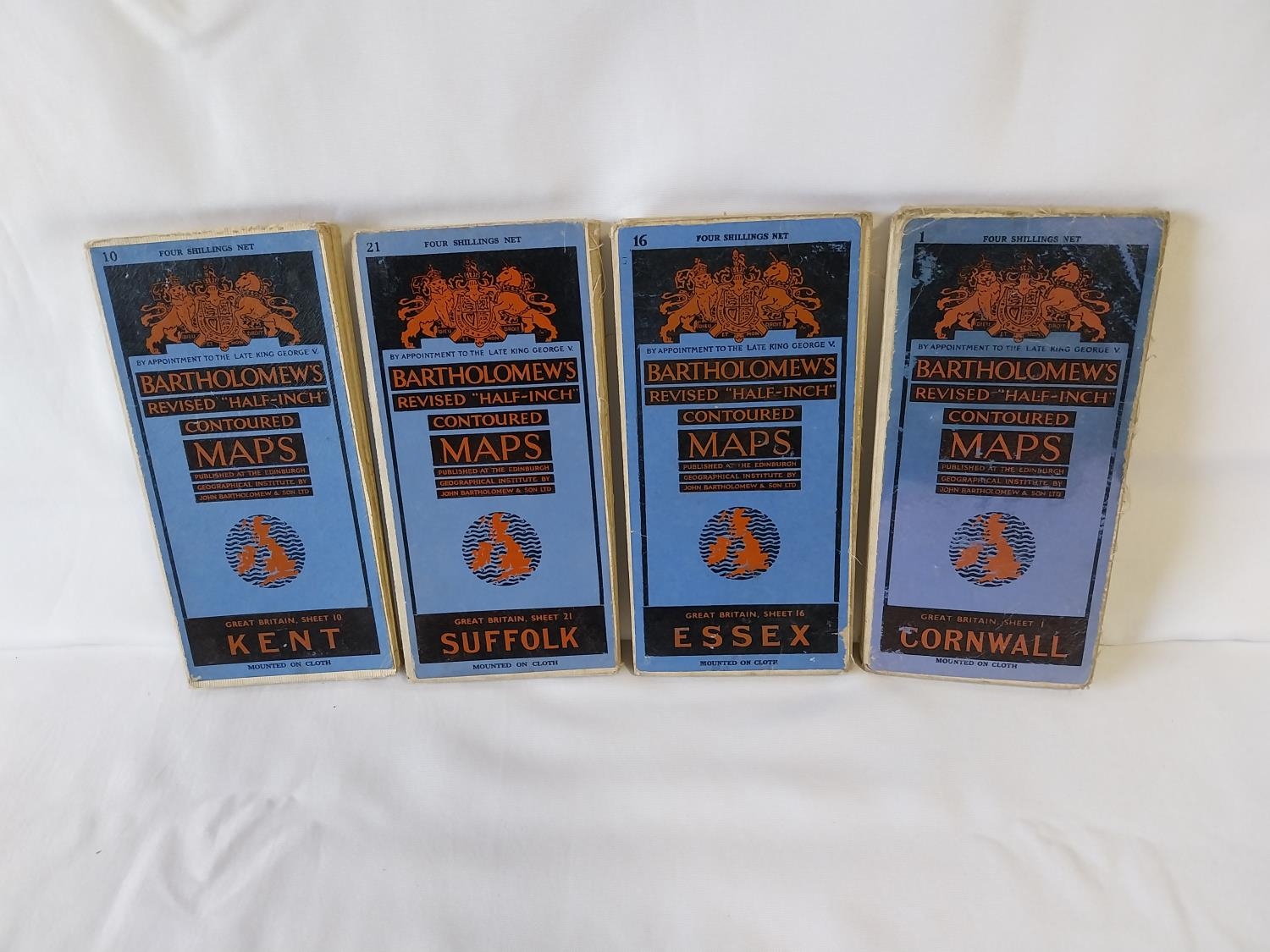 4 1940s cloth Bartholomews maps