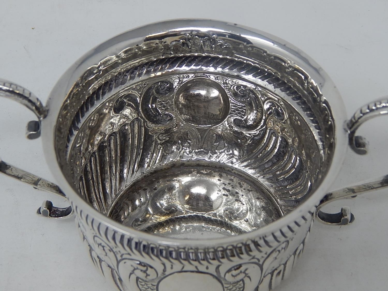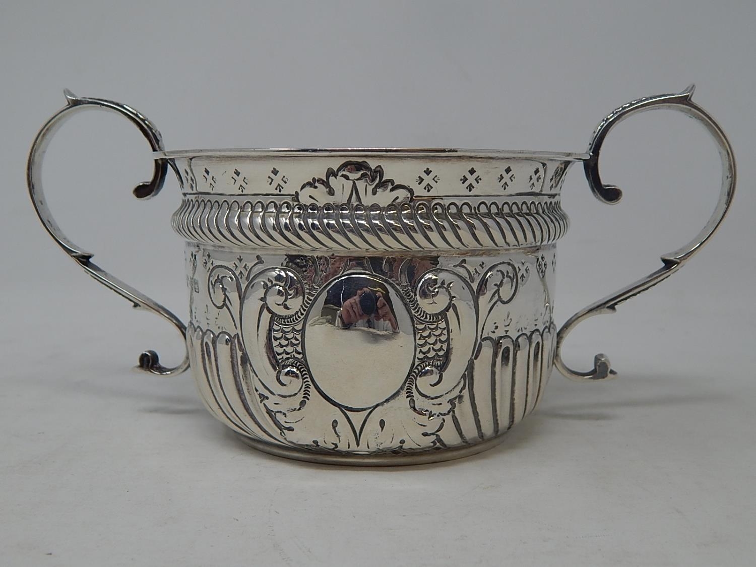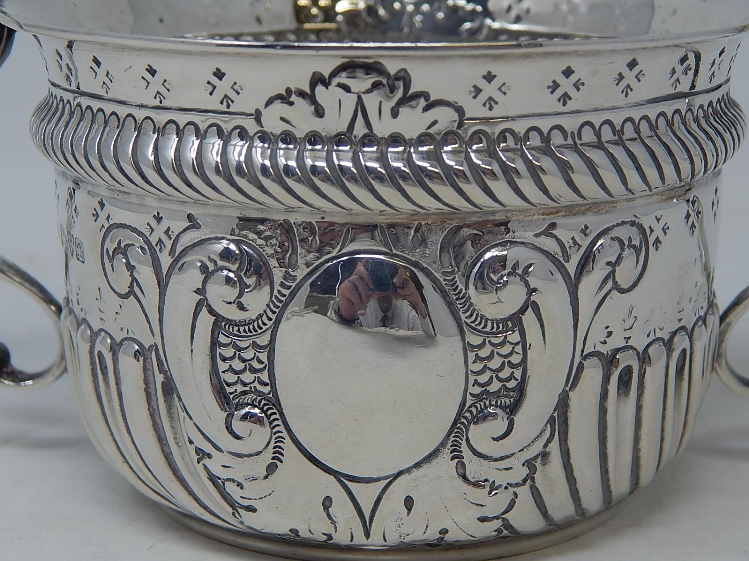 Edwardian Silver Porringer: Hallmarked Chester 1903 by Nathan & Hayes: 17.5cm across Handles: Weight 188g