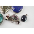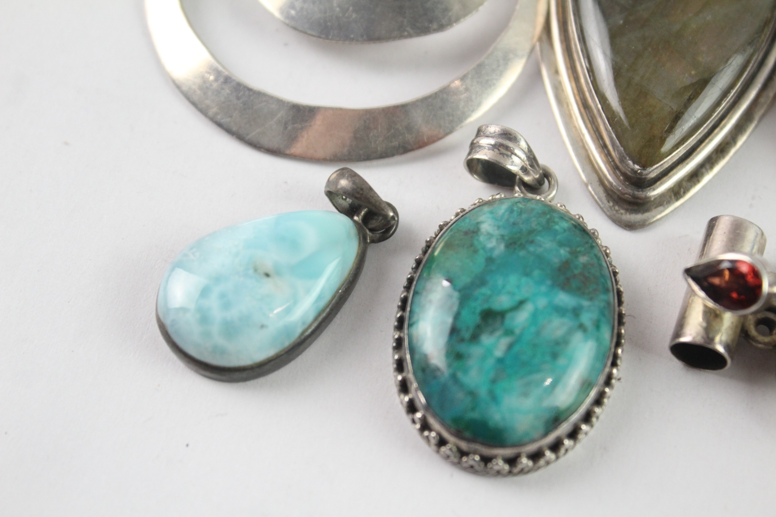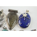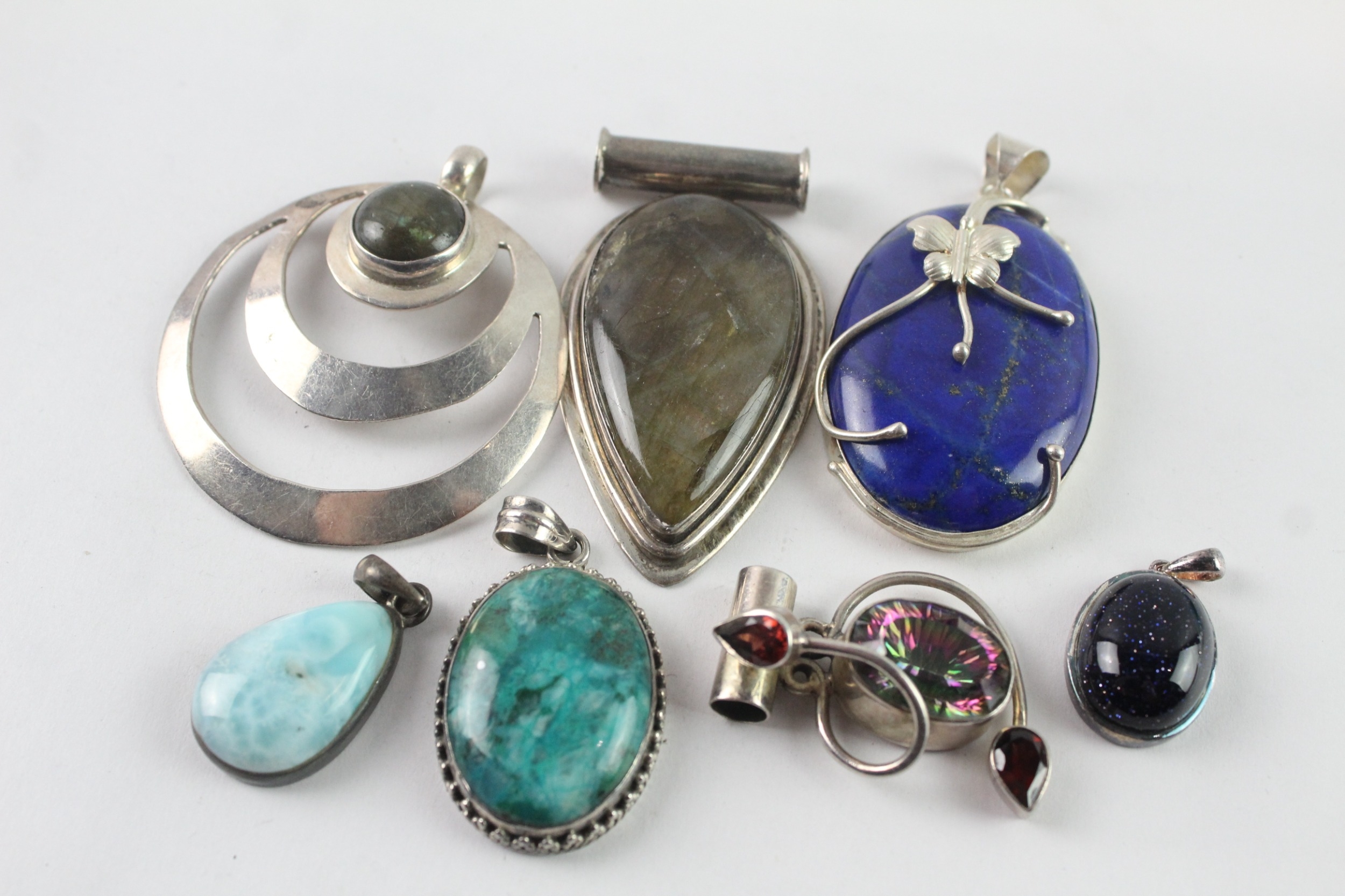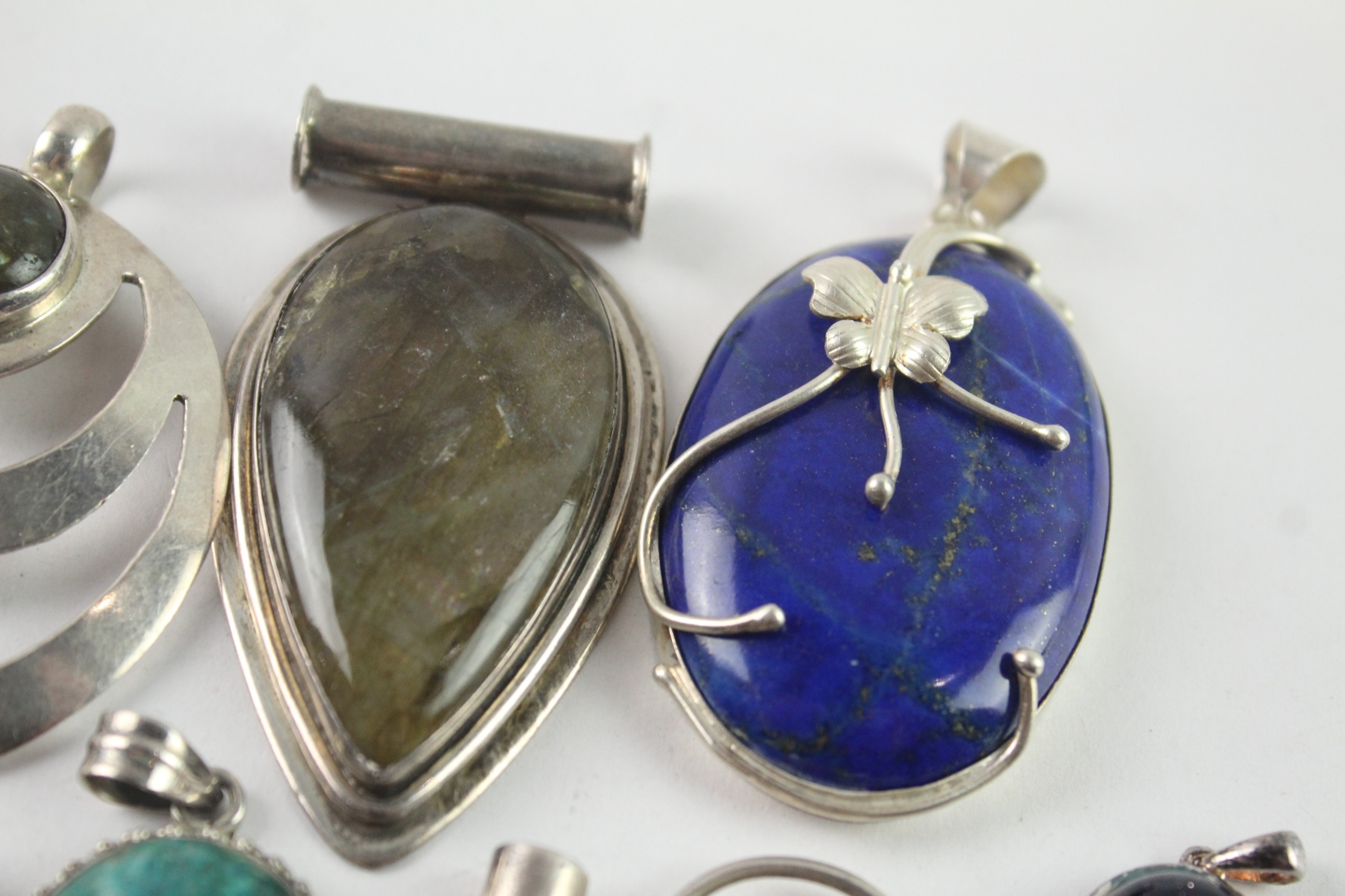 Collection of Sterling Silver Gemstone Pendants inc. Labradorite, Lapis x 7 121g