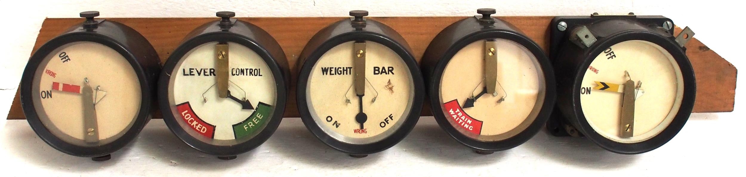 BR(LMR) Bakelite cased repeaters/indicators, mostly arms/needles are free moving, at least two jammed/broken, all mounted on board. (B3) (Dispatch by Mailboxes/Collect from Banbury Depot)