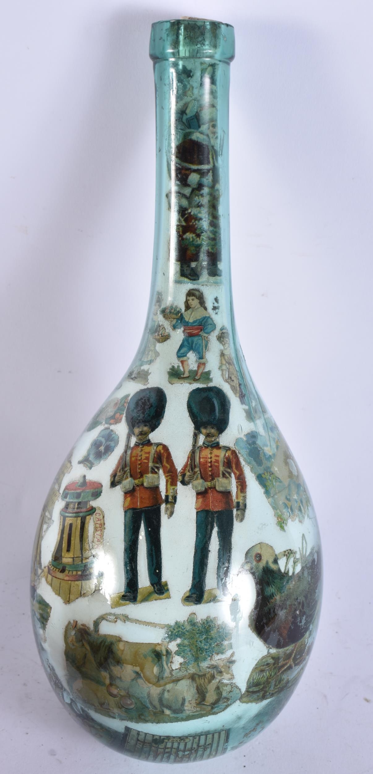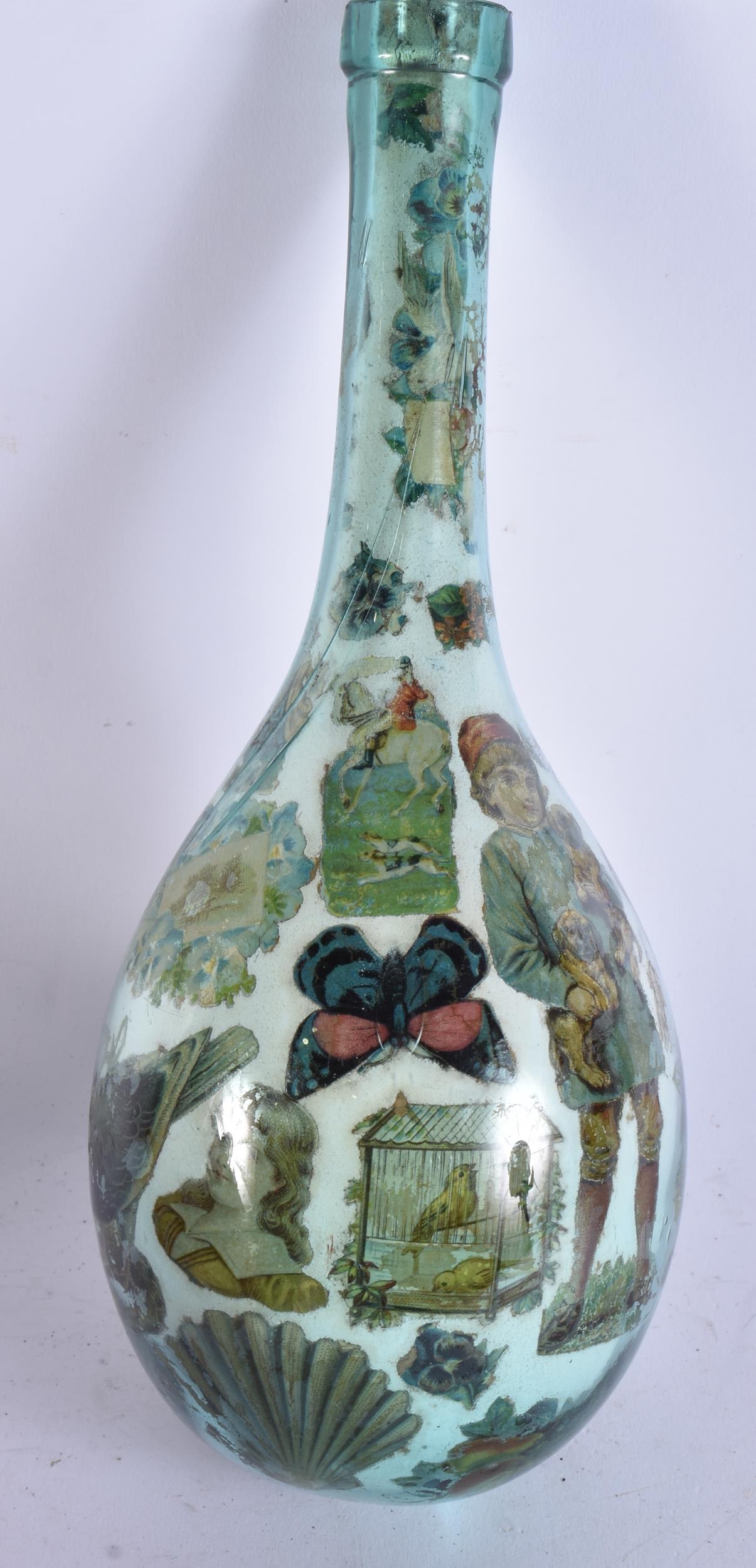 A DECLOMANIA GLASS BOTTLE. 26 cm long.