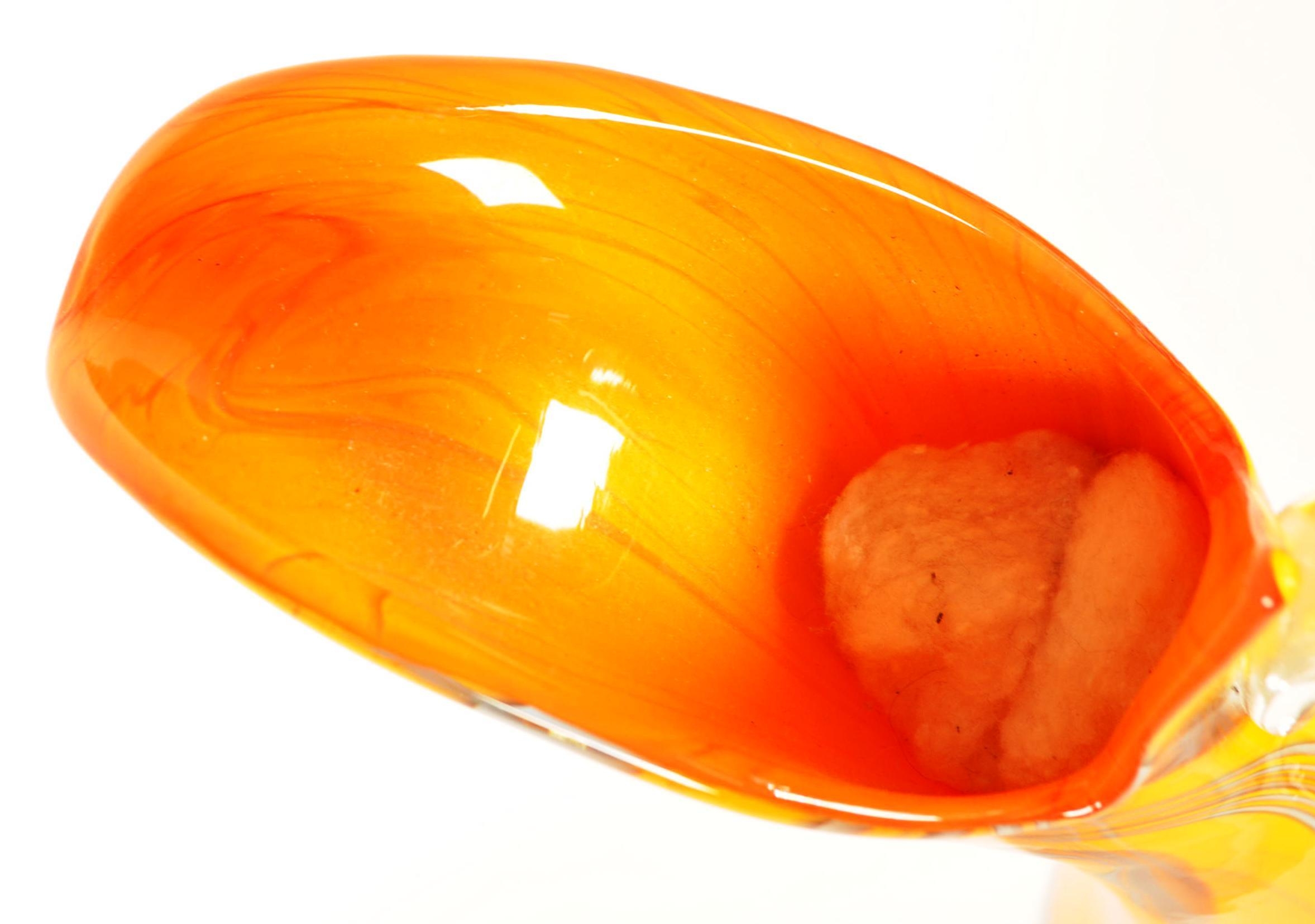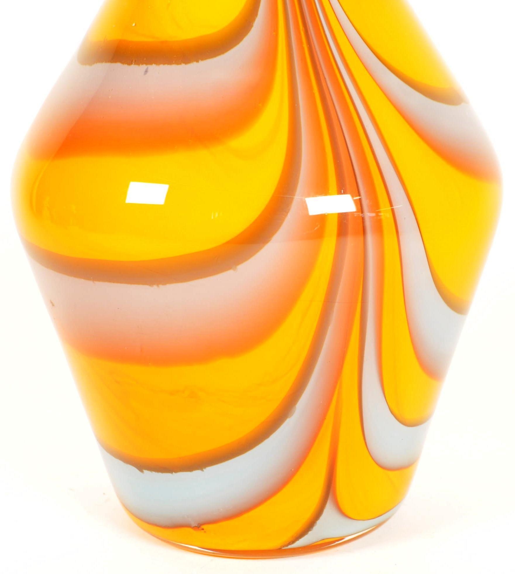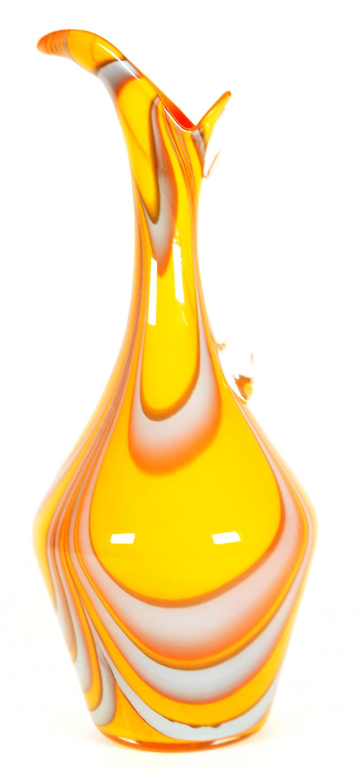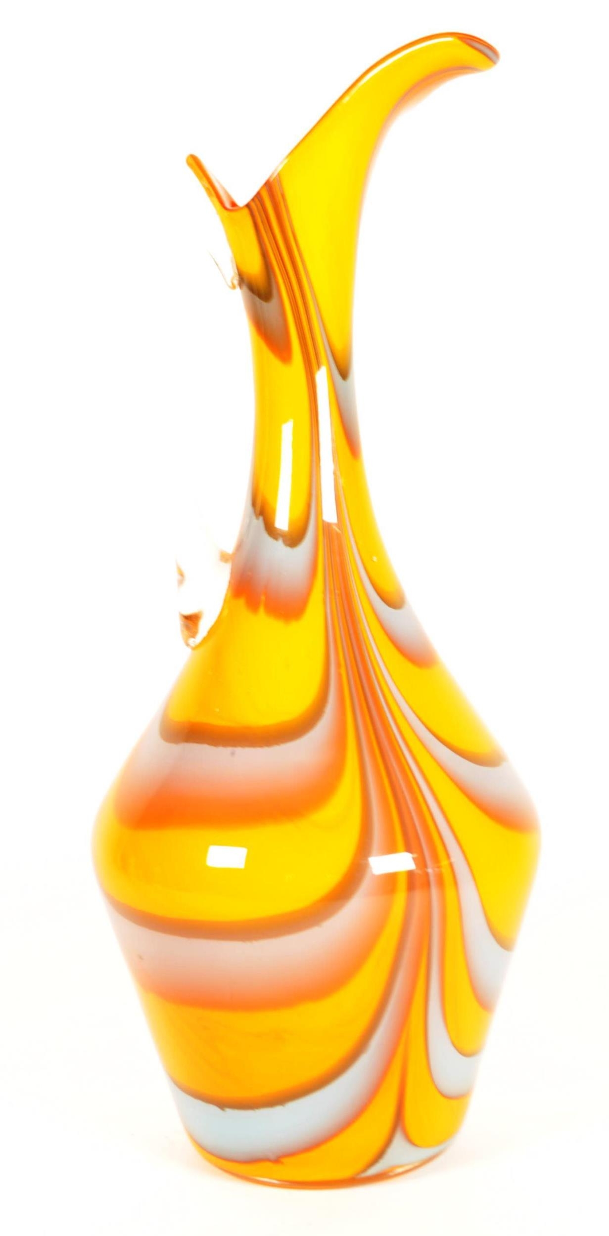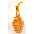 Manner of Carlo Moretti - Mid century vintage studio glass ewer vase. Featuring an orange and blue swirled design with a clear glass handle. Measuring approx. 37cm tall.