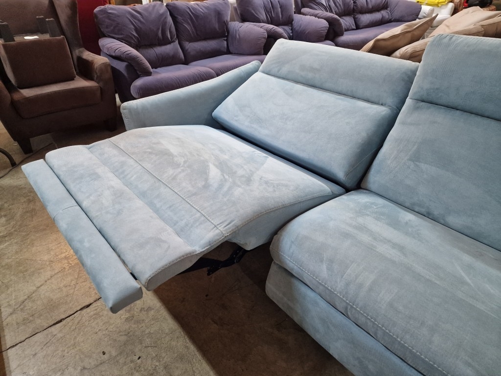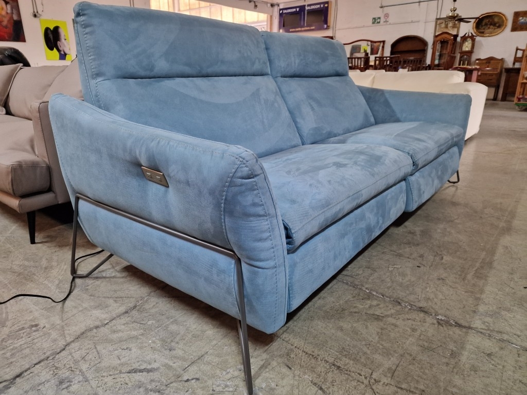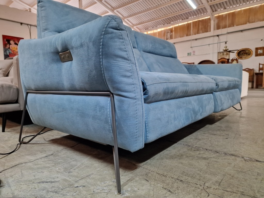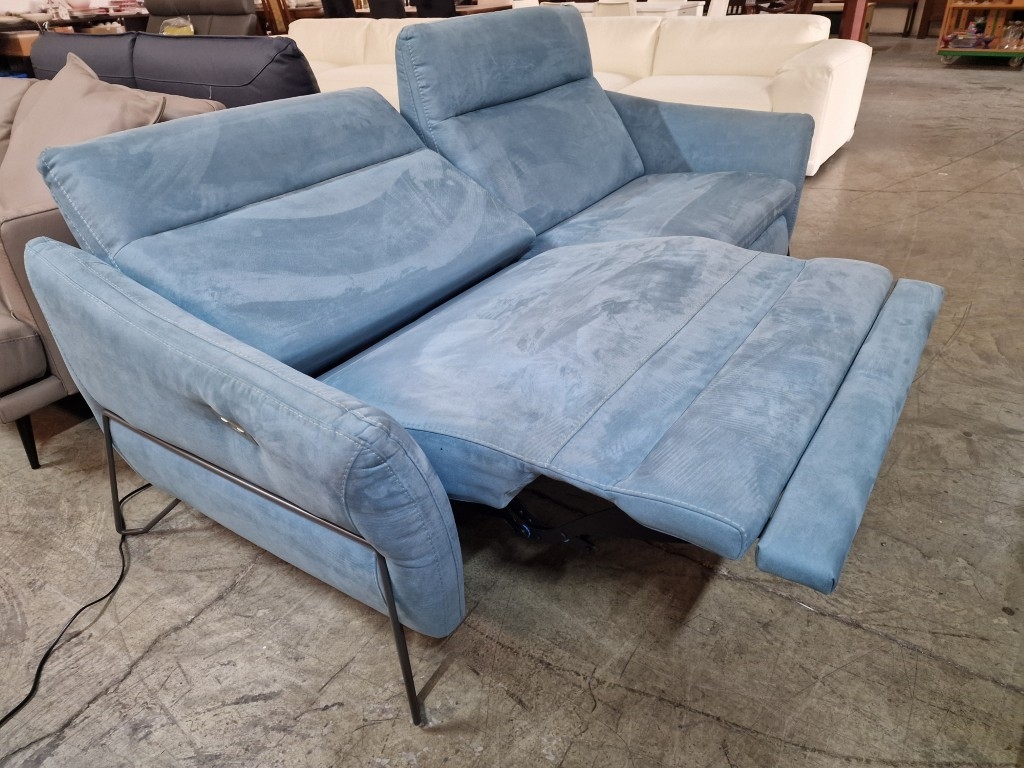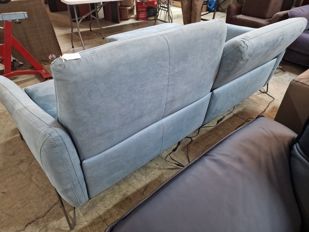 EGOITALIANO 'Gaia' Modern, Elegant & Designer 2-Seater Sofa with 2 x Electric Relaxation / Reclining Functions, Super Comfortable with High Back Rest, "First Class Seating" with Designer Base, in Pale Green Colour Luxury Microfiber with a Leather Look, (Approx. 220 x 91 x 94cm)