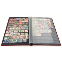 Brown stockbook containing Yugoslavia, Latvia, Luxembourg and other stamps.