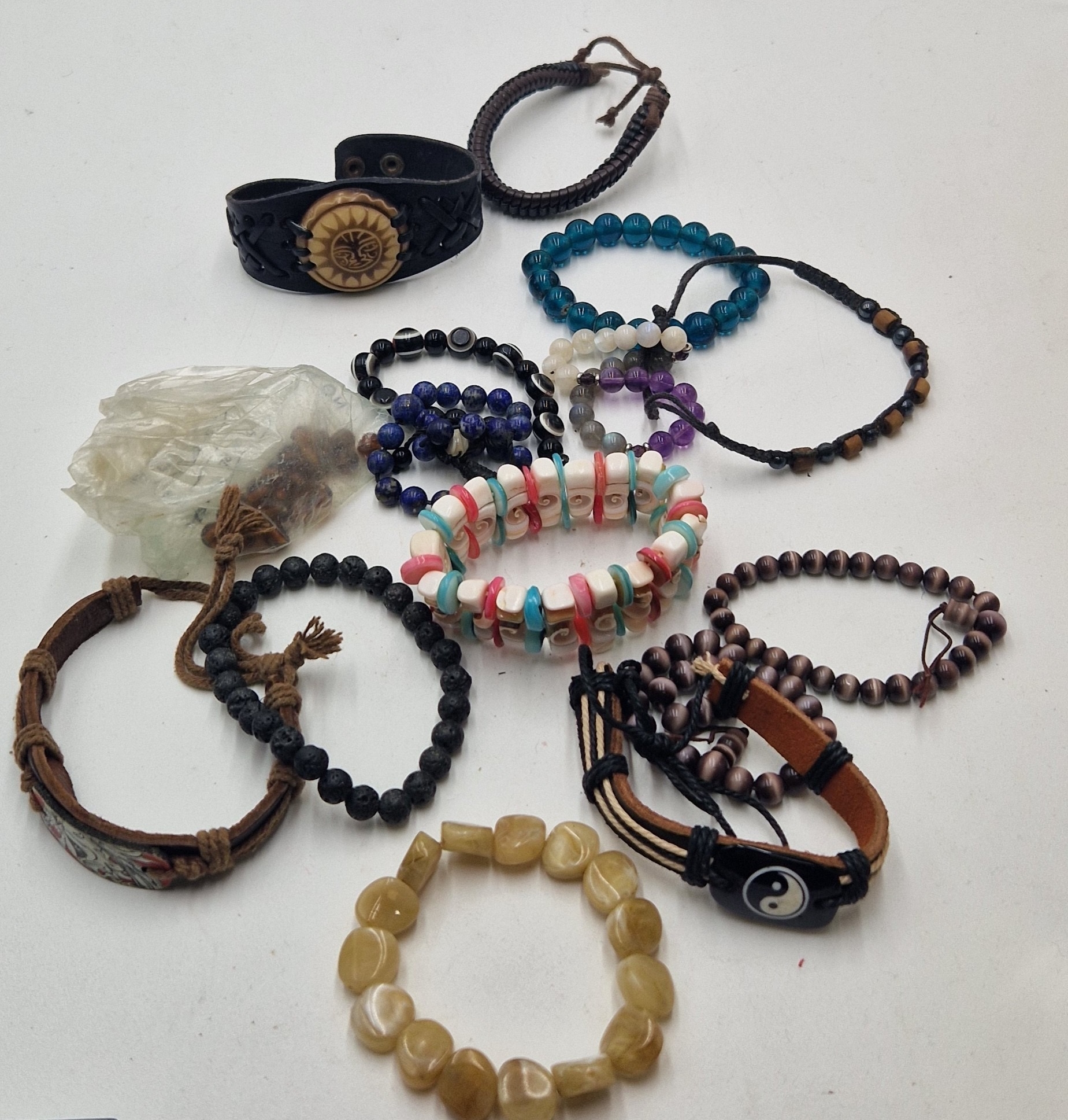 BANGLES & BRACELETS (Qty Of) To Include LAPIS LAZULI,EVIL EYE LEATHER ABALONE & AGATE