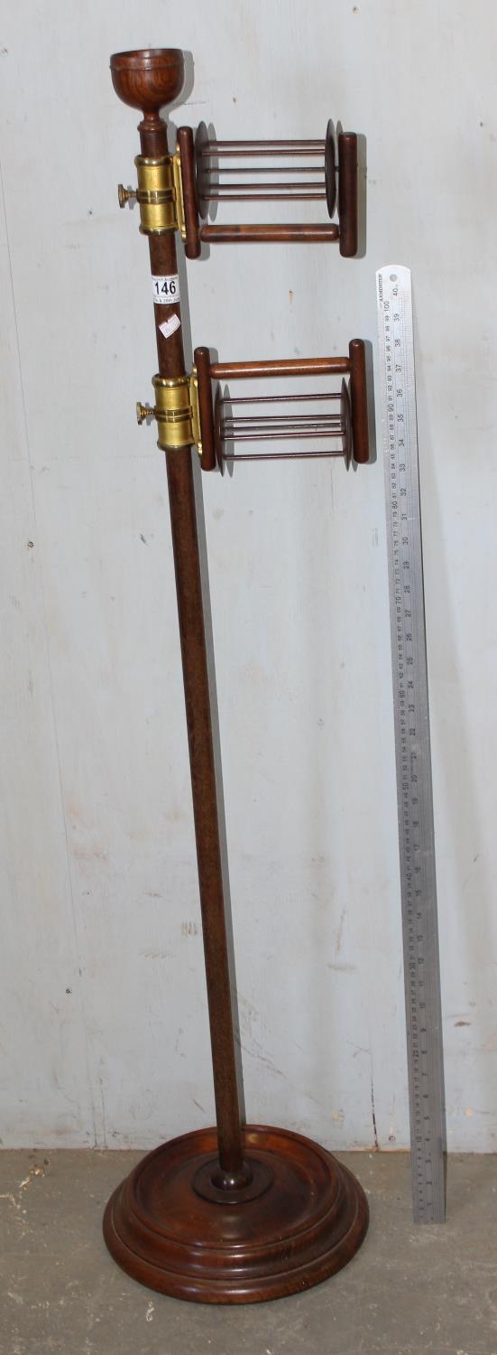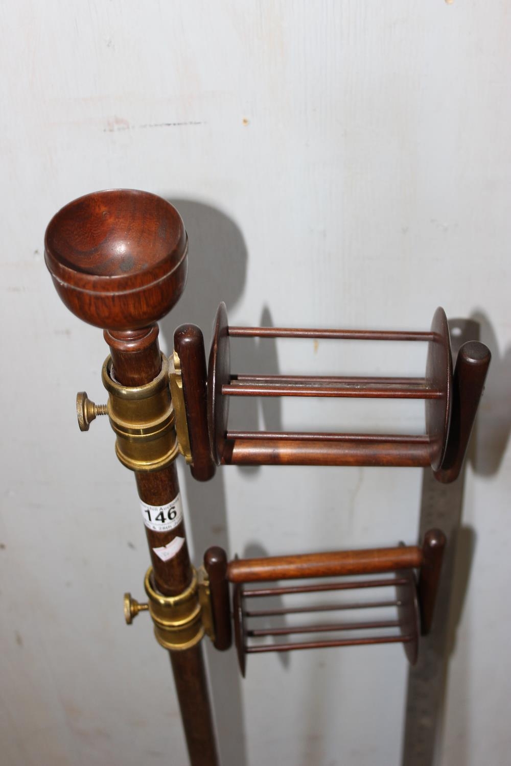 A Victorian mahogany wool winder on turned base, with brass fittings