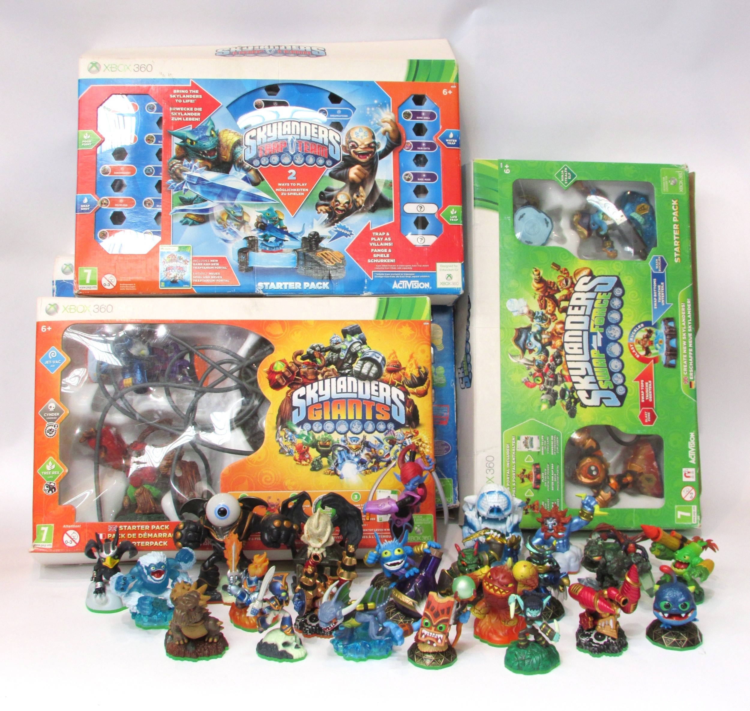 Activision Skylanders Xbox 360 boxed starter packs for Giants, Swap Force, Spyro's Adventure and Trap Team, with portals and figures, together with various other figures including Eye Brawl, Super Gulp Pop Fizz, Sonic Boom, Slam Bam, etc. (some a/f)